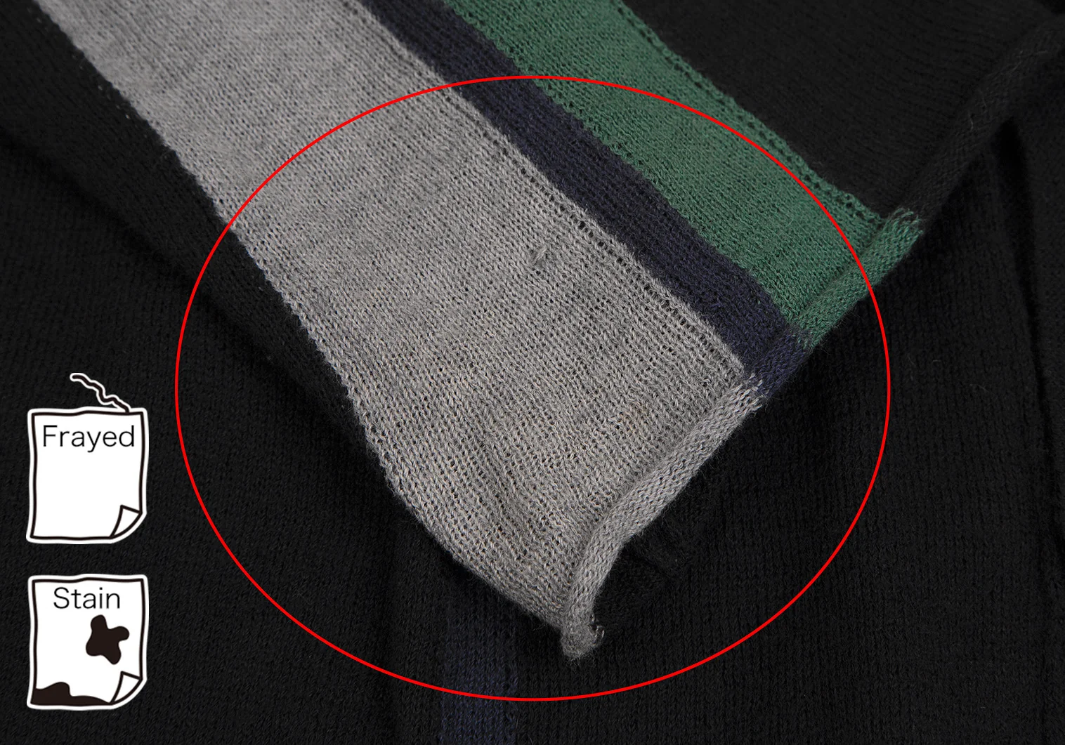 右袖先に汚れ・引っかけがあります(写真参照)。その他目立ったシミ、汚れ、ほつれ等なくいい状態です。クリーニング済み