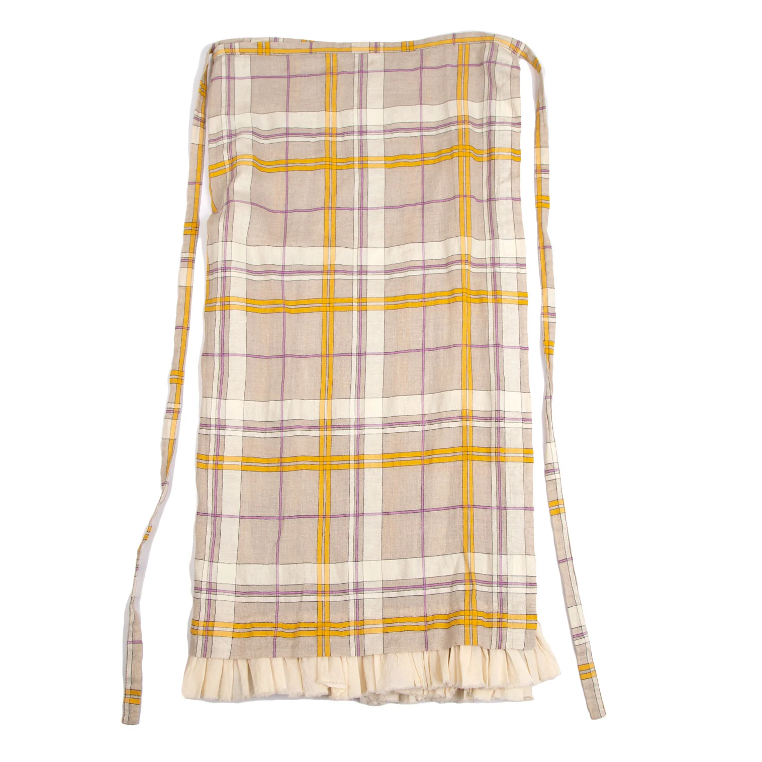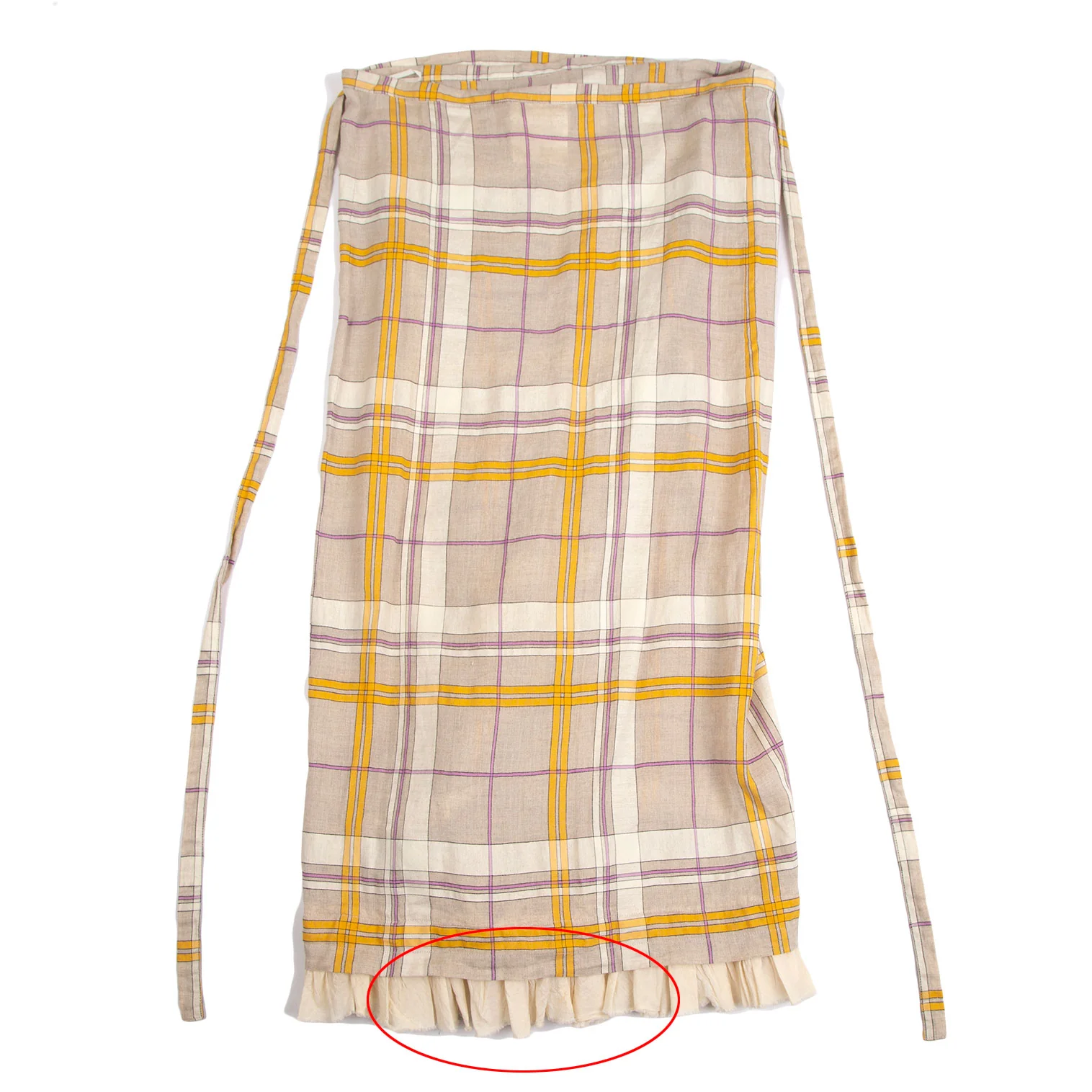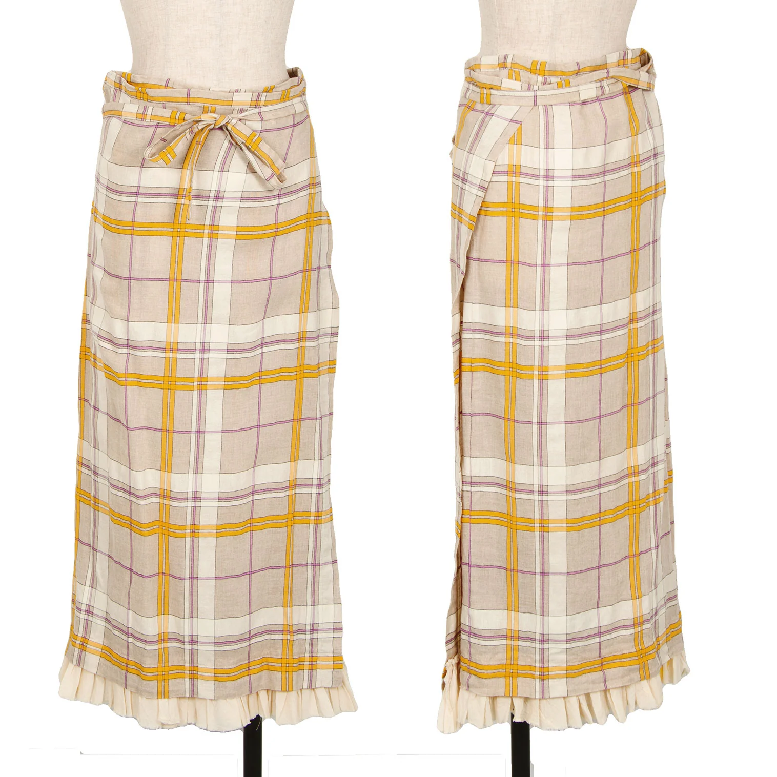 ローブドシャンブル コムデギャルソンrobe de chambre COMME des GARCONS リネン裾フリル切替チェックラップスカート ベージュF