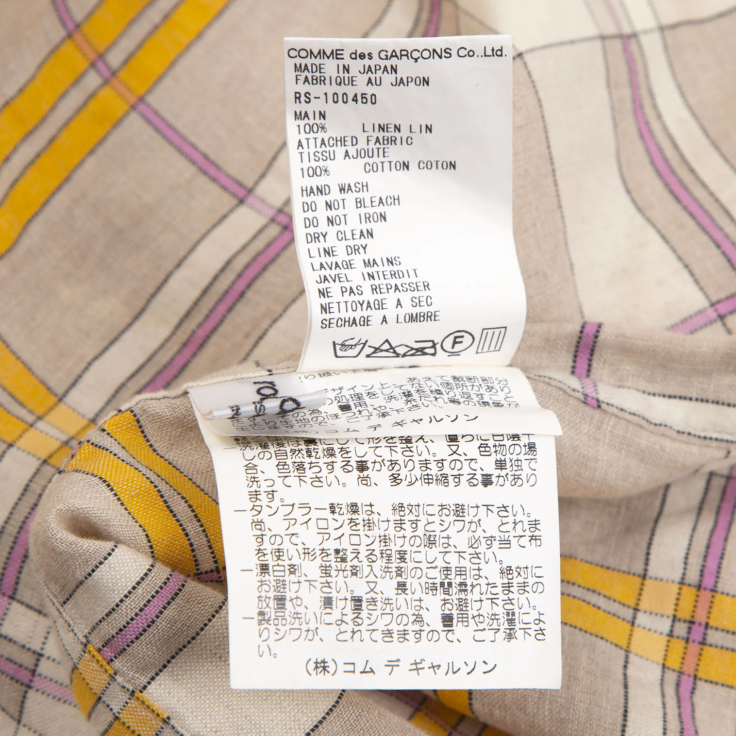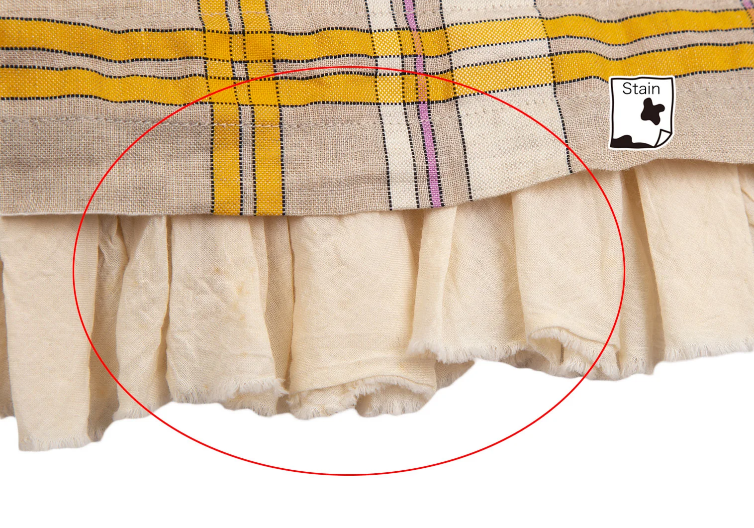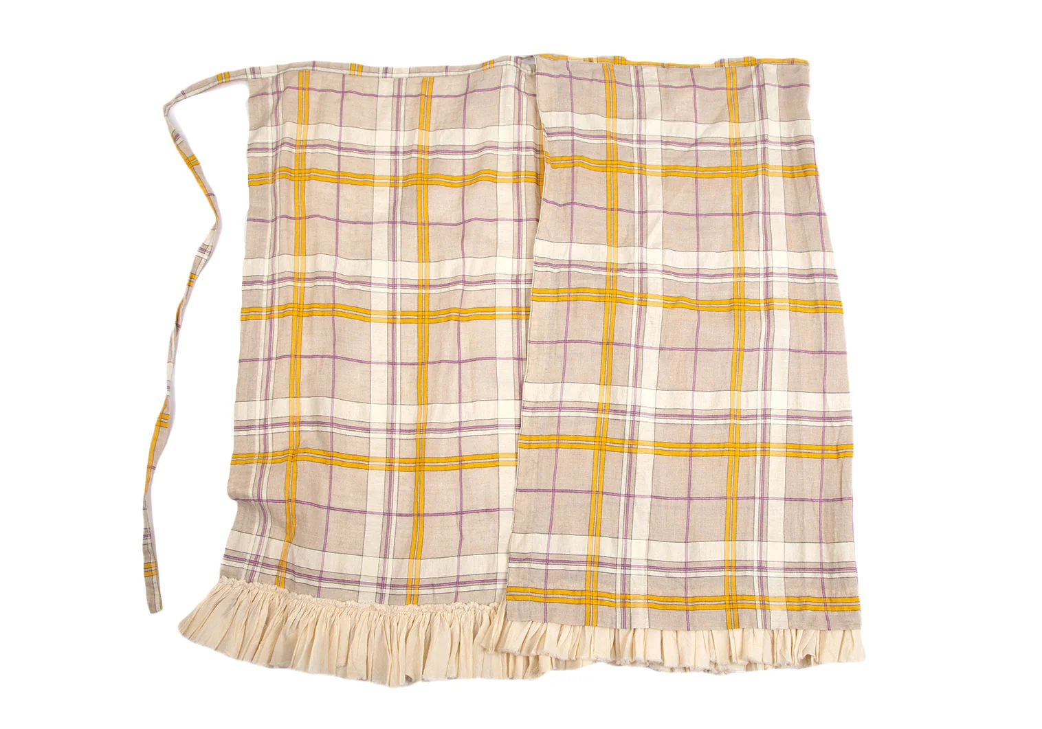 ローブドシャンブル コムデギャルソンrobe de chambre COMME des GARCONS リネン裾フリル切替チェックラップスカート ベージュF