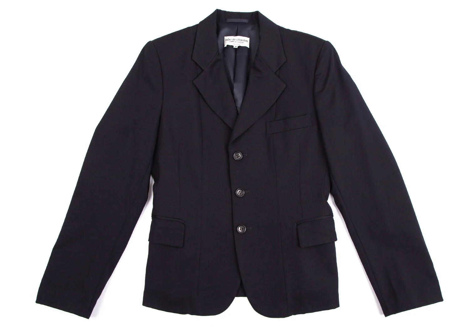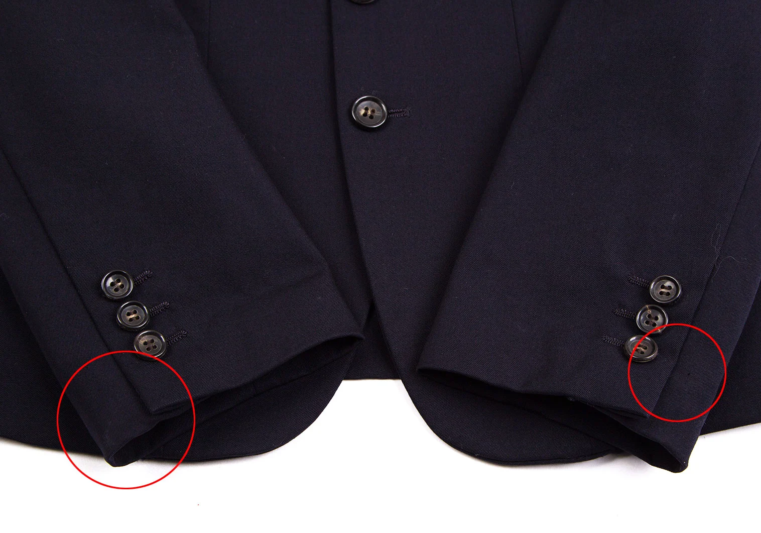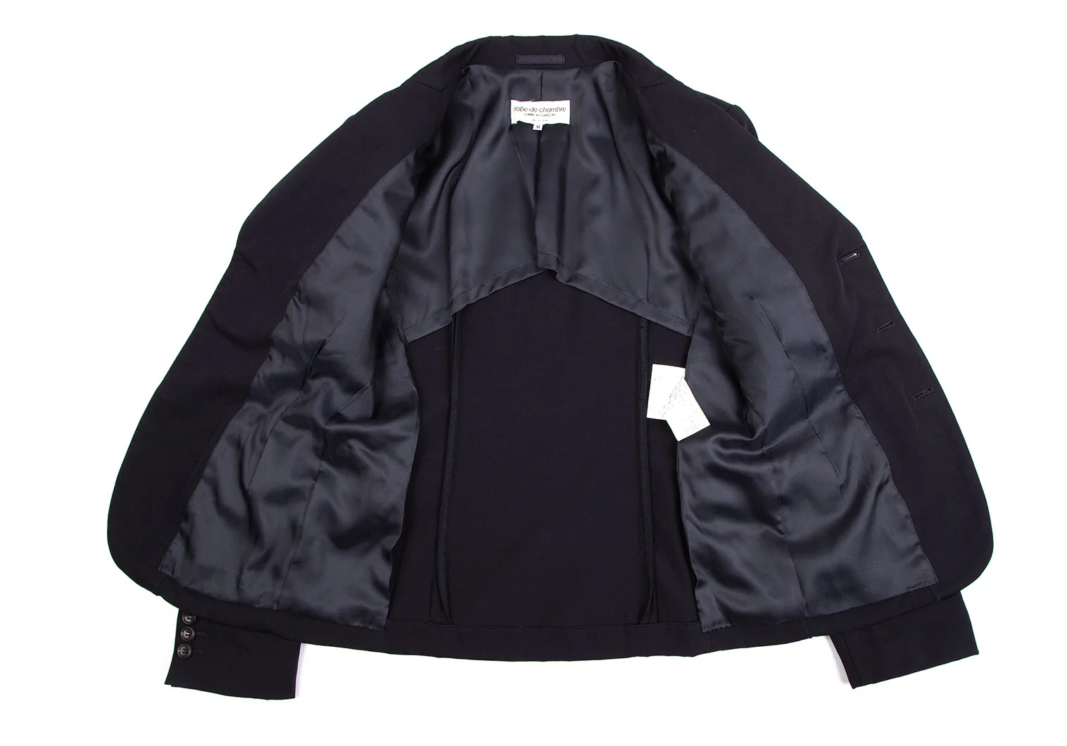 ローブドシャンブル コムデギャルソンrobe de chambre COMME des GARCONSウールギャバ3Bテーラードジャケット 紺M