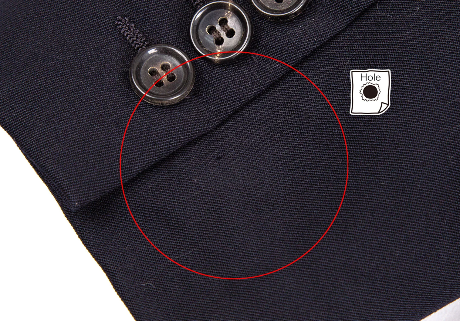 袖先に小穴・汚れ、袖裏に薄汚れ、前裾に虫喰い・小穴があります(写真参照)。その他目立ったシミ、汚れ等はありません。クリーニング済み