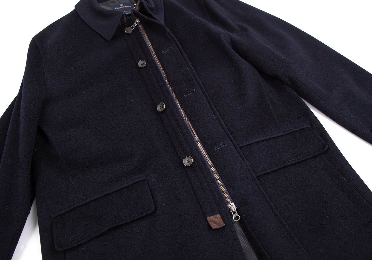 ブルックスブラザーズBrooks Brothers Loro Piana Storm System ロロピアーナストームシステムウールハーフコート 紺L