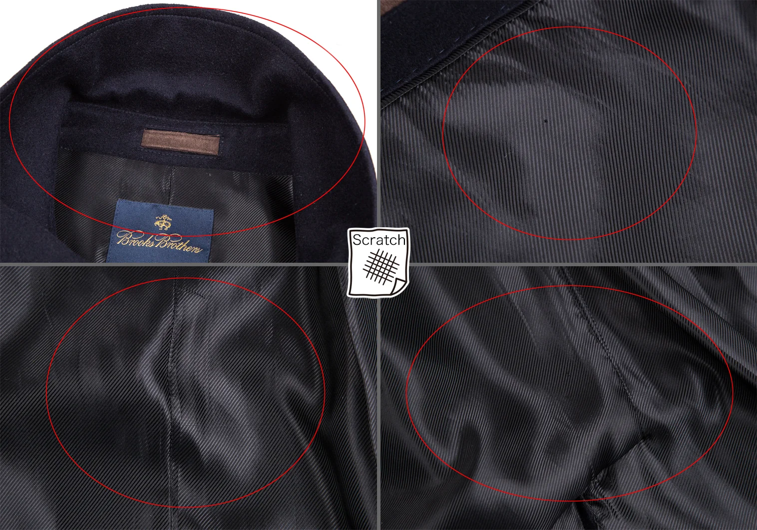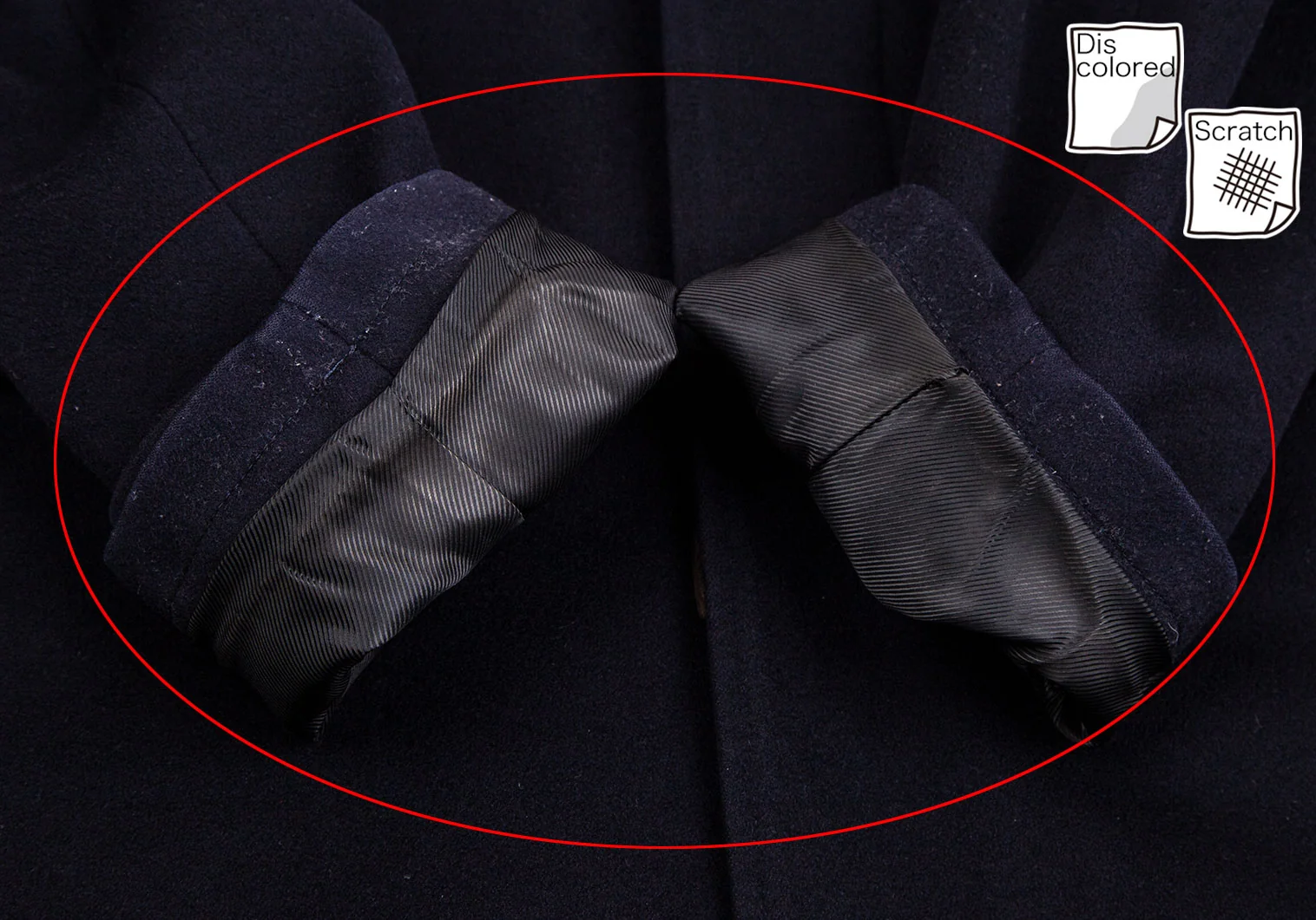 脇下・襟裏・裏地・袖裏に擦れ、袖裏に変色、ジップ根元テープに若干のダメージがあります(写真参照)。その他目立ったシミ、汚れ、ほつれ等はありません。クリーニング済み