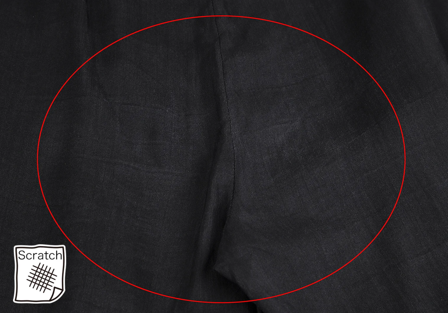 ベルト・前身頃・ヒップ周りにスレがあります(写真参照)。その他目立ったシミ、汚れ、ほつれ等なくいい状態です。クリーニング済み