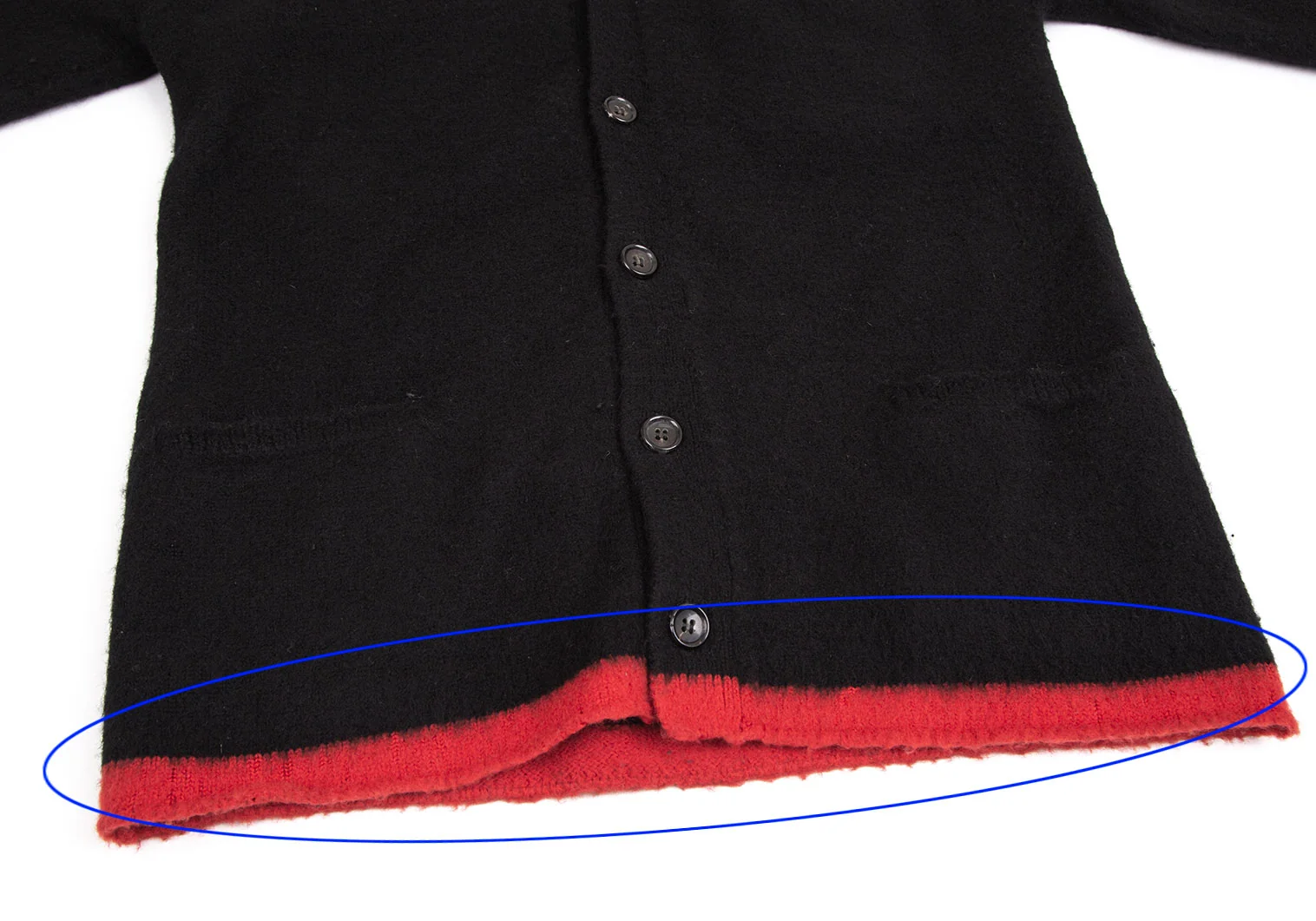 コムデギャルソン オムCOMME des GARCONS HOMME 裾配色縮絨ニットカーディガン 黒M位