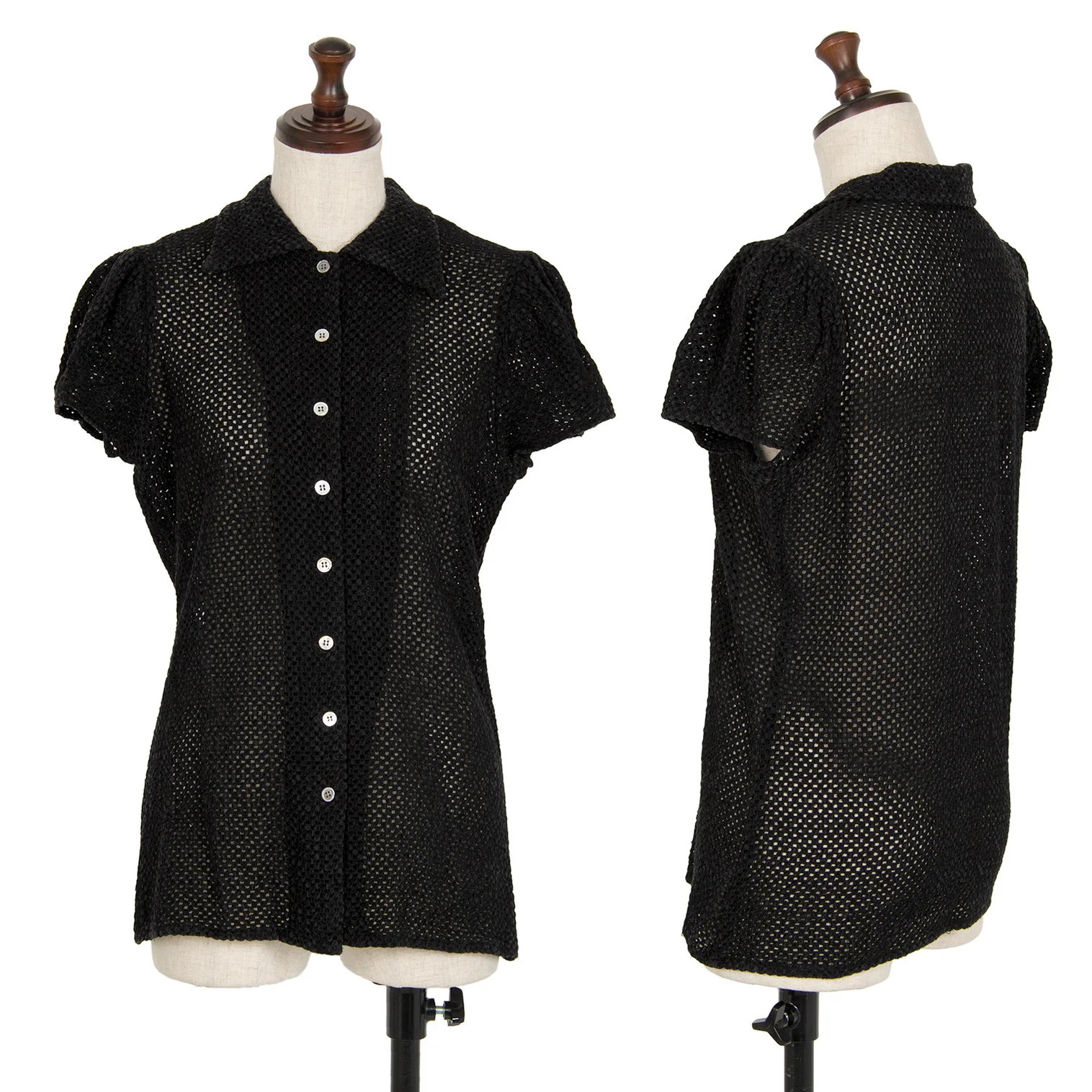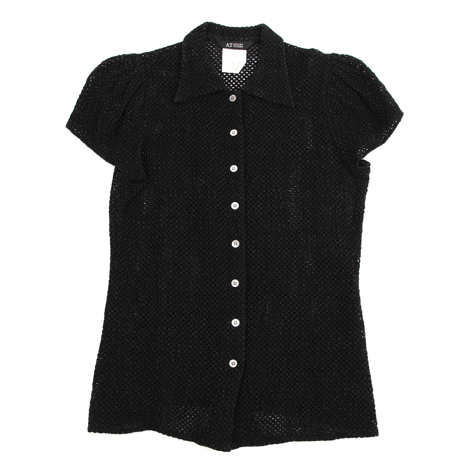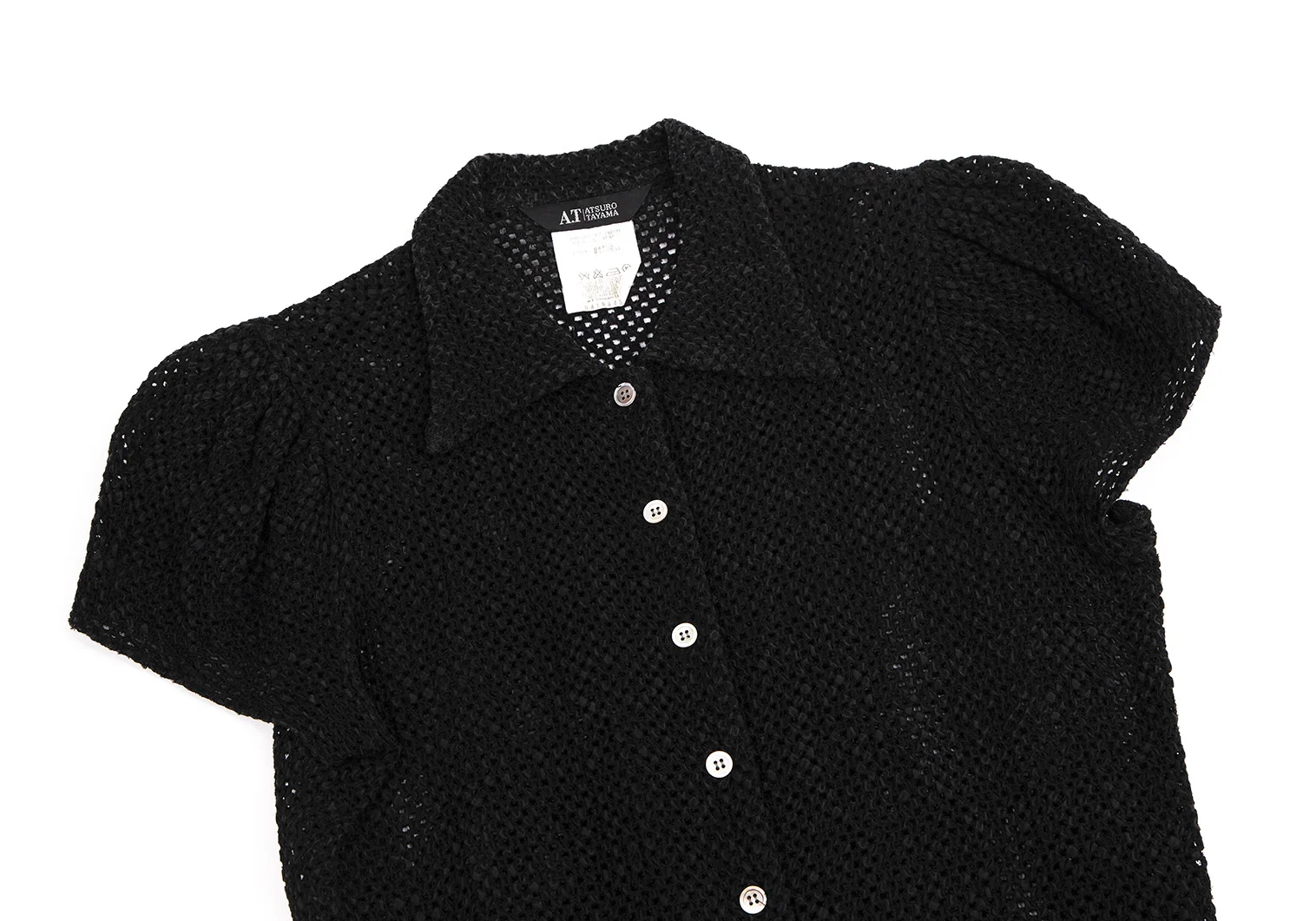 アツロウタヤマA.T ATSURO TAYAMA メッシュ編みギャザースリーブ半袖シャツ 黒M位