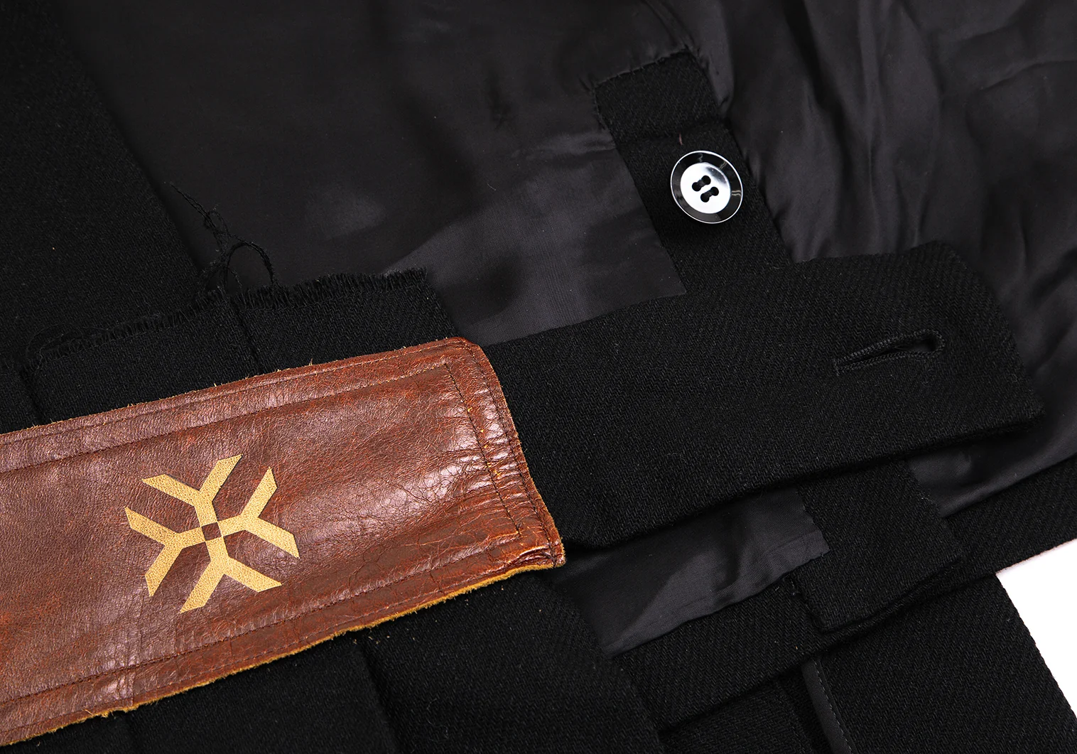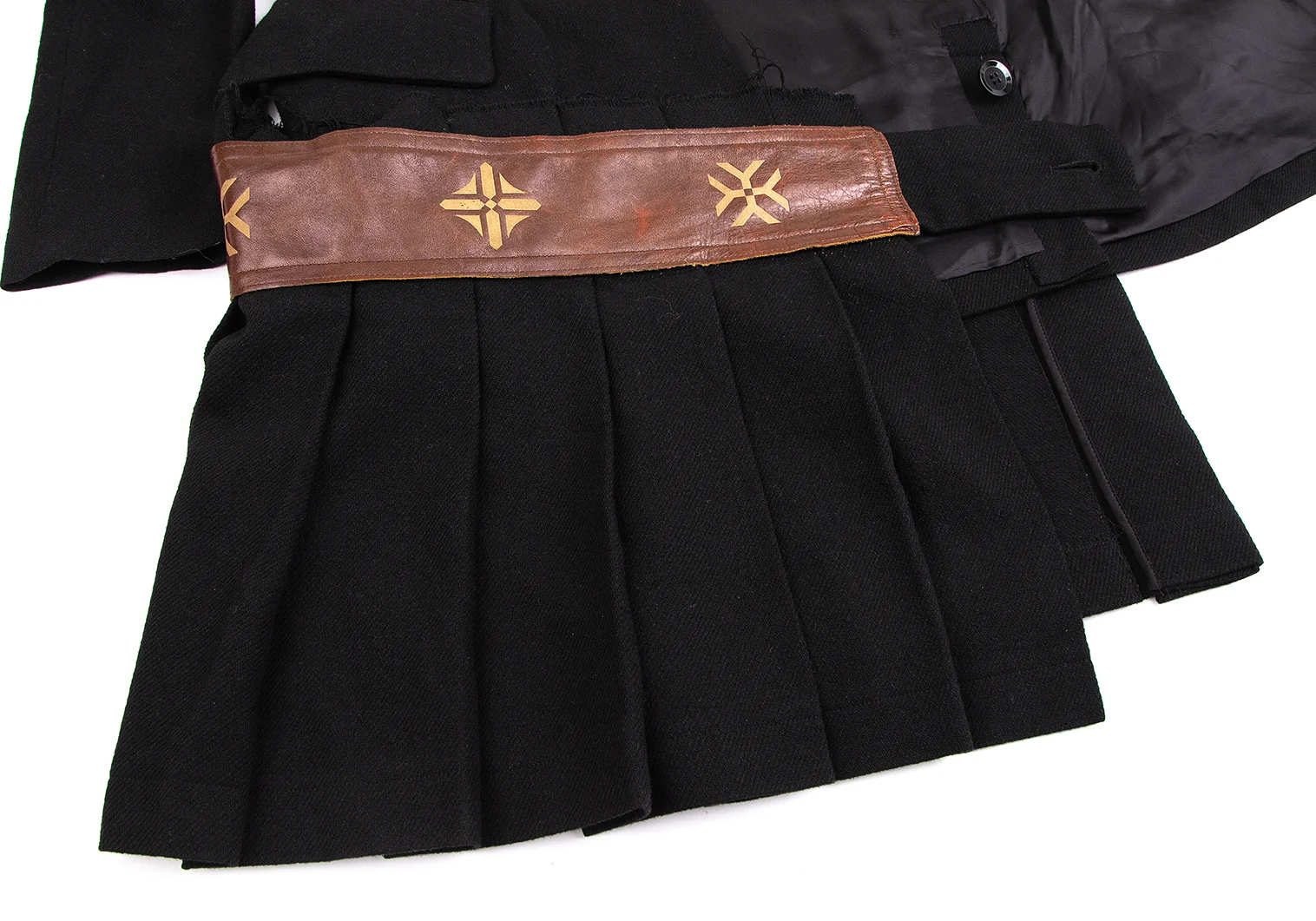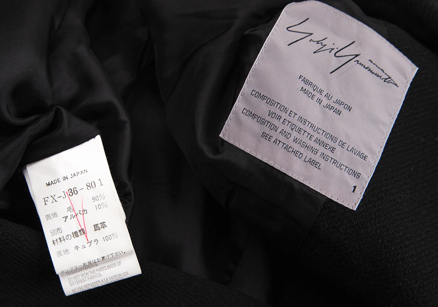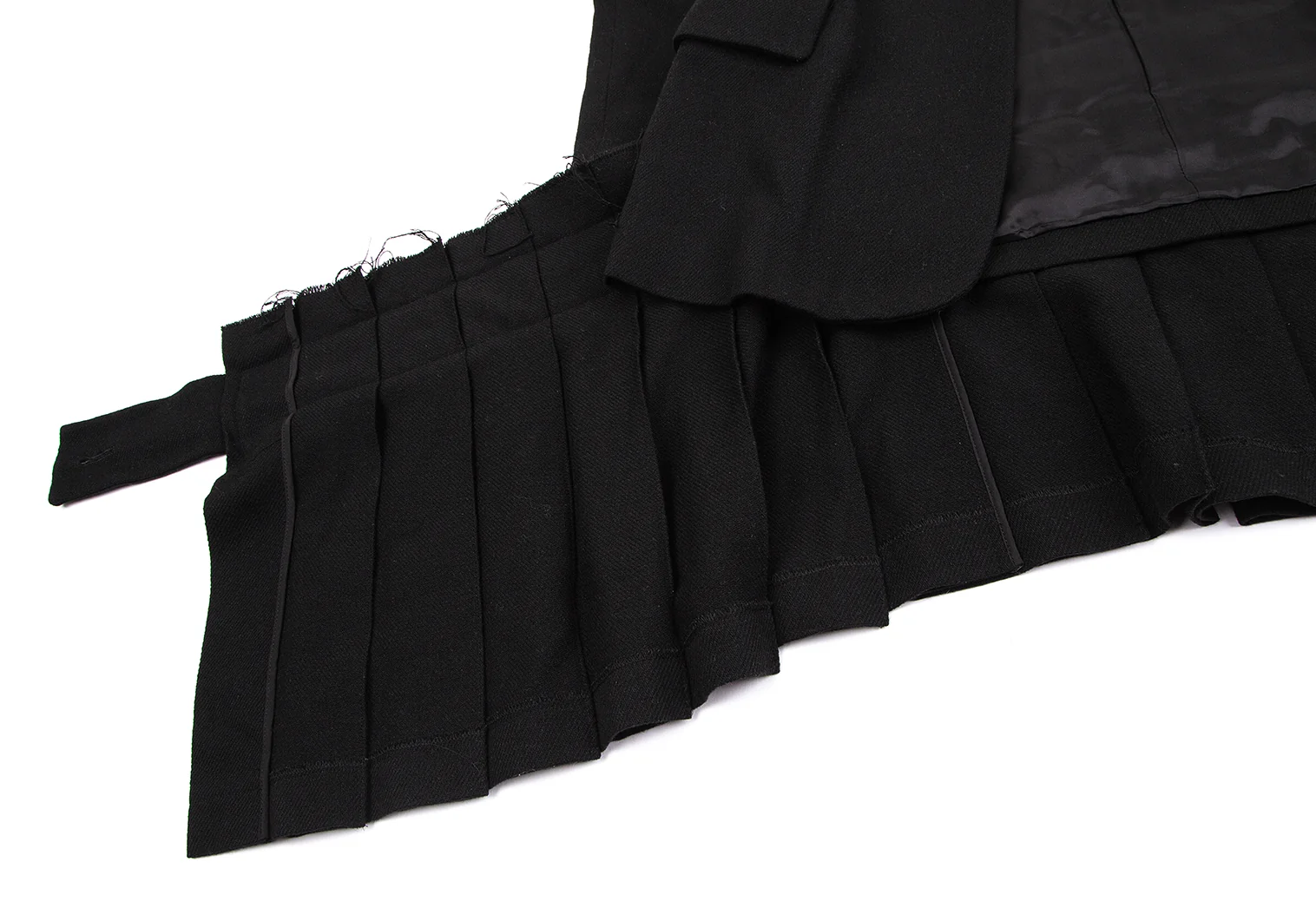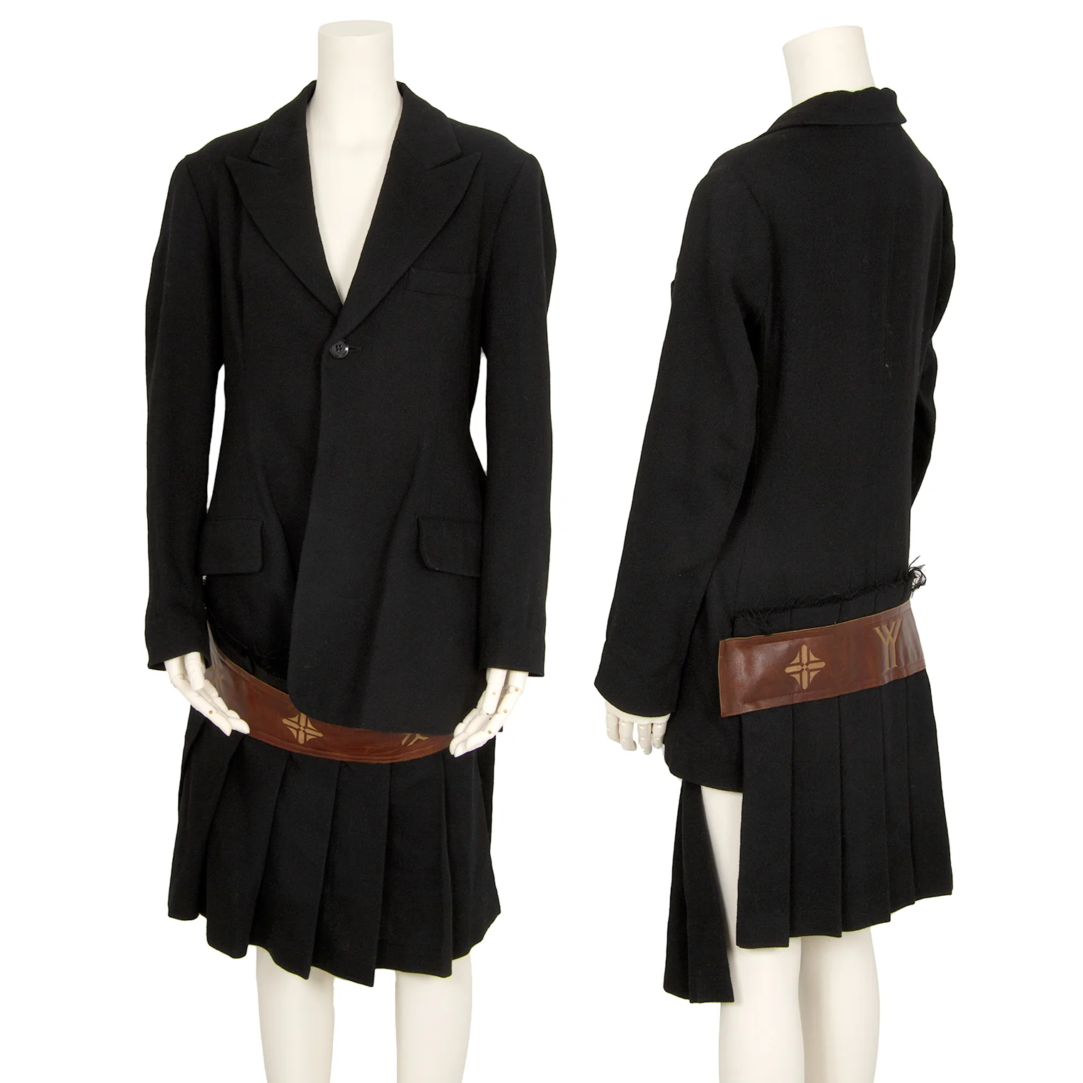 ヨウジヤマモト ファムYohji Yamamoto FEMME モノグラムレザー切替プリーツスカートドッキングジャケット 黒1
