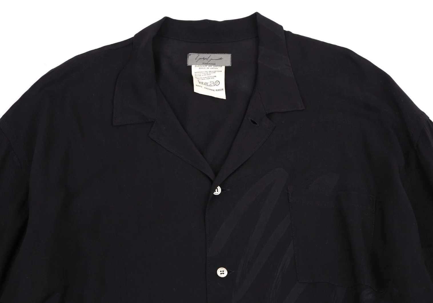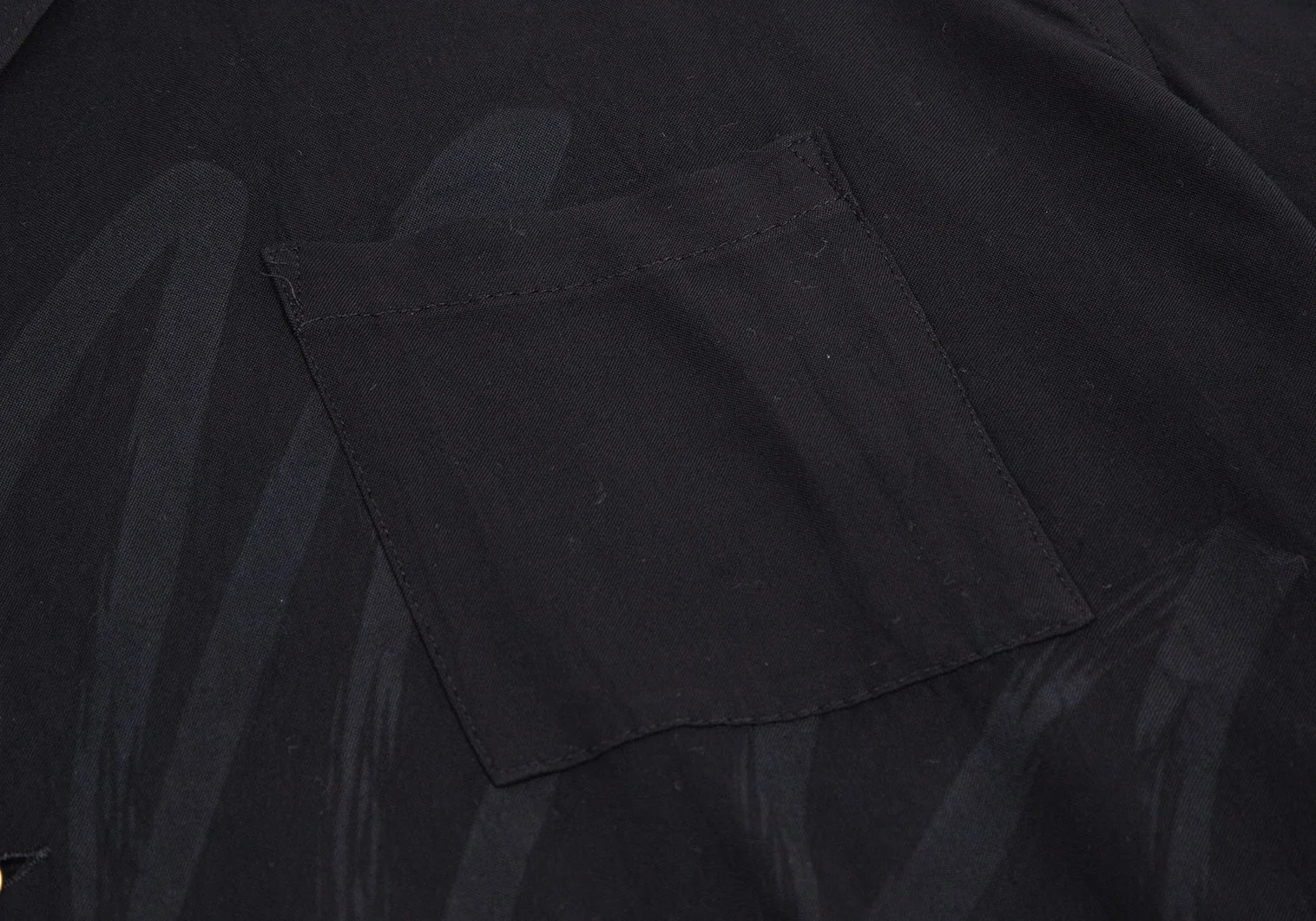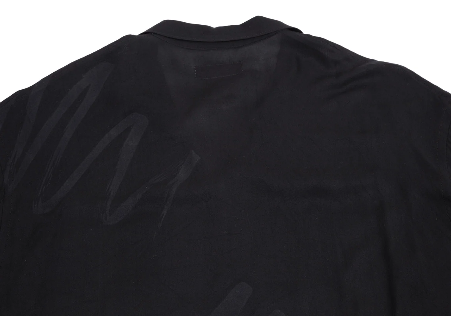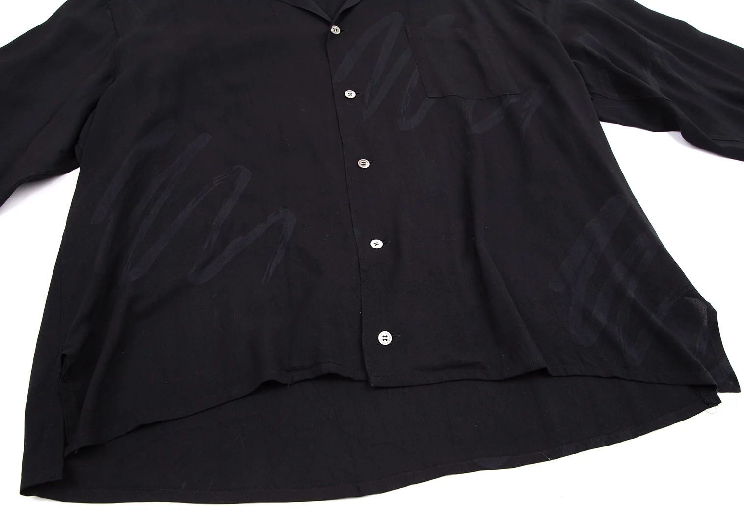 ヨウジヤマモト プールオムYohji Yamamoto POUR HOMME ハンドドローイングラインプリントレーヨンオープンカラーシャツ 黒M位