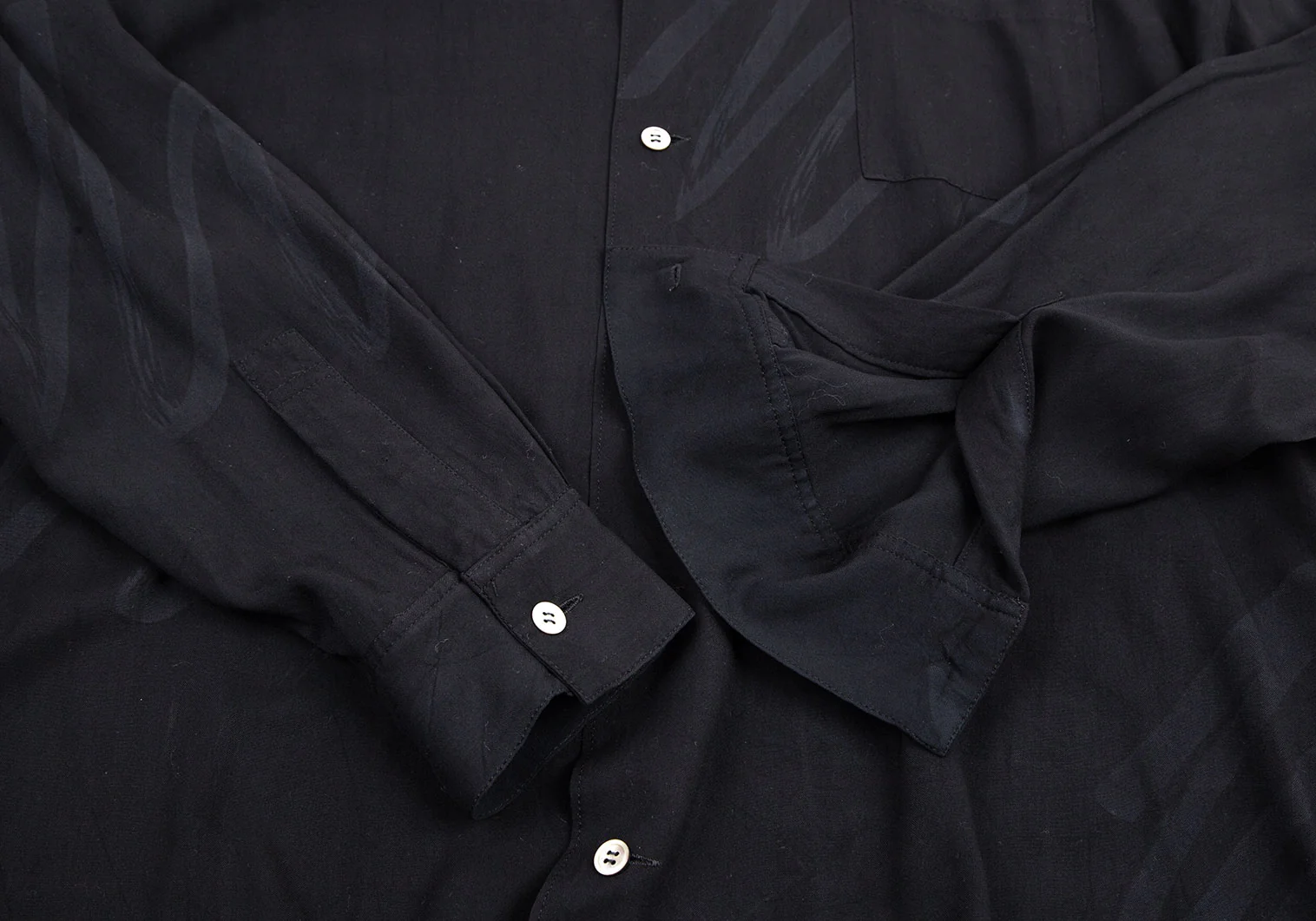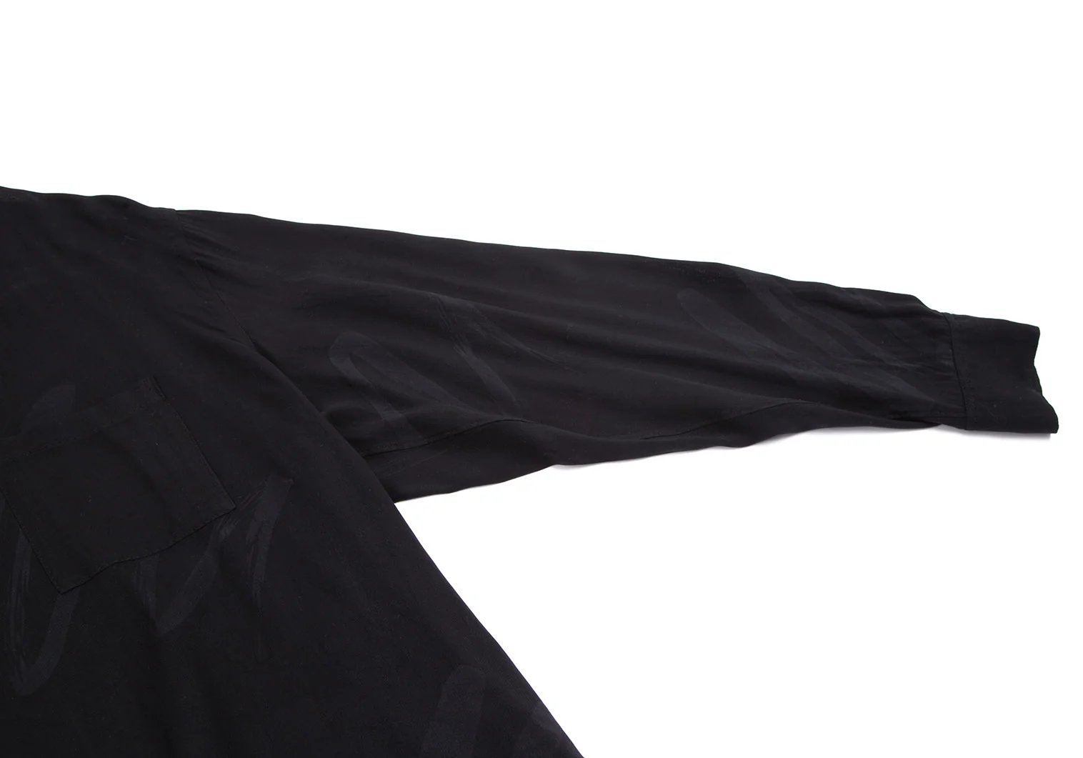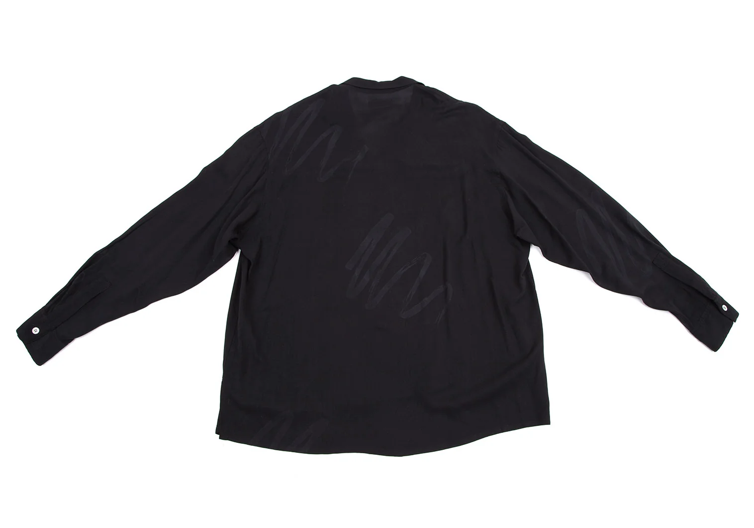 ヨウジヤマモト プールオムYohji Yamamoto POUR HOMME ハンドドローイングラインプリントレーヨンオープンカラーシャツ 黒M位