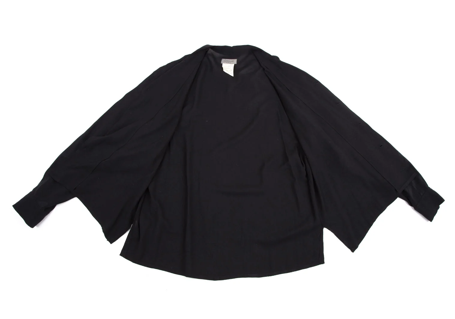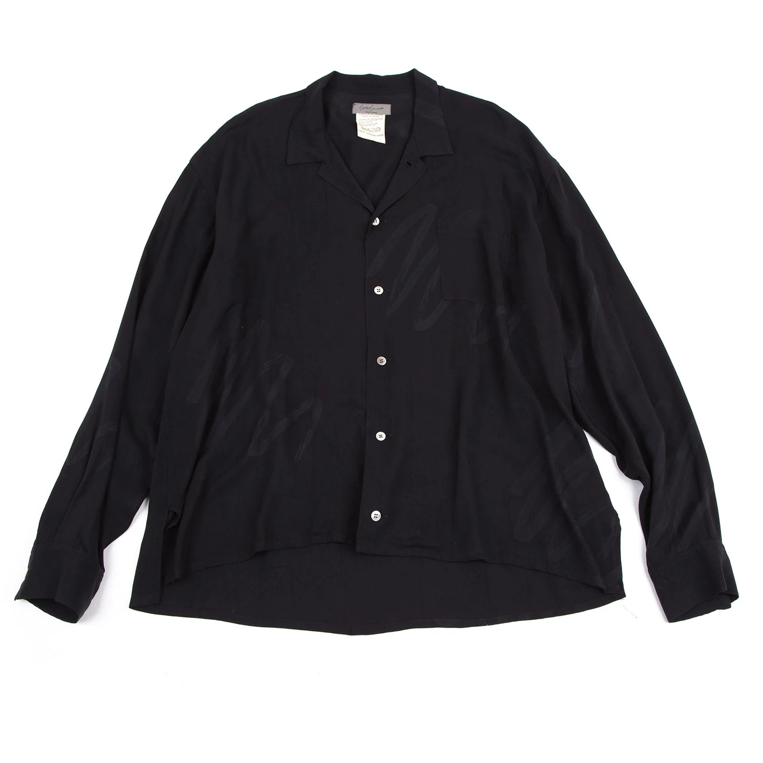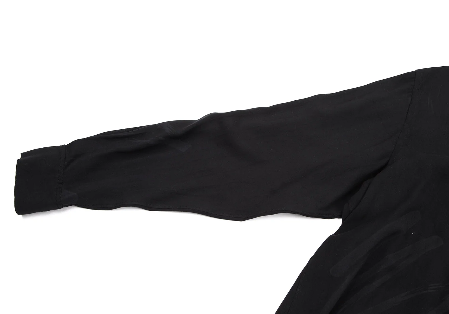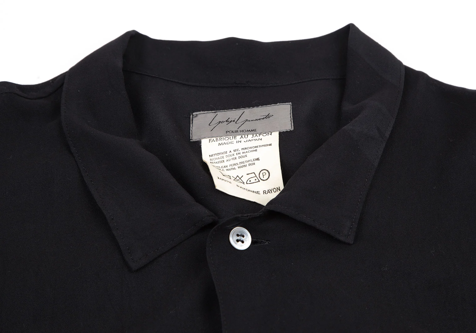 ヨウジヤマモト プールオムYohji Yamamoto POUR HOMME ハンドドローイングラインプリントレーヨンオープンカラーシャツ 黒M位