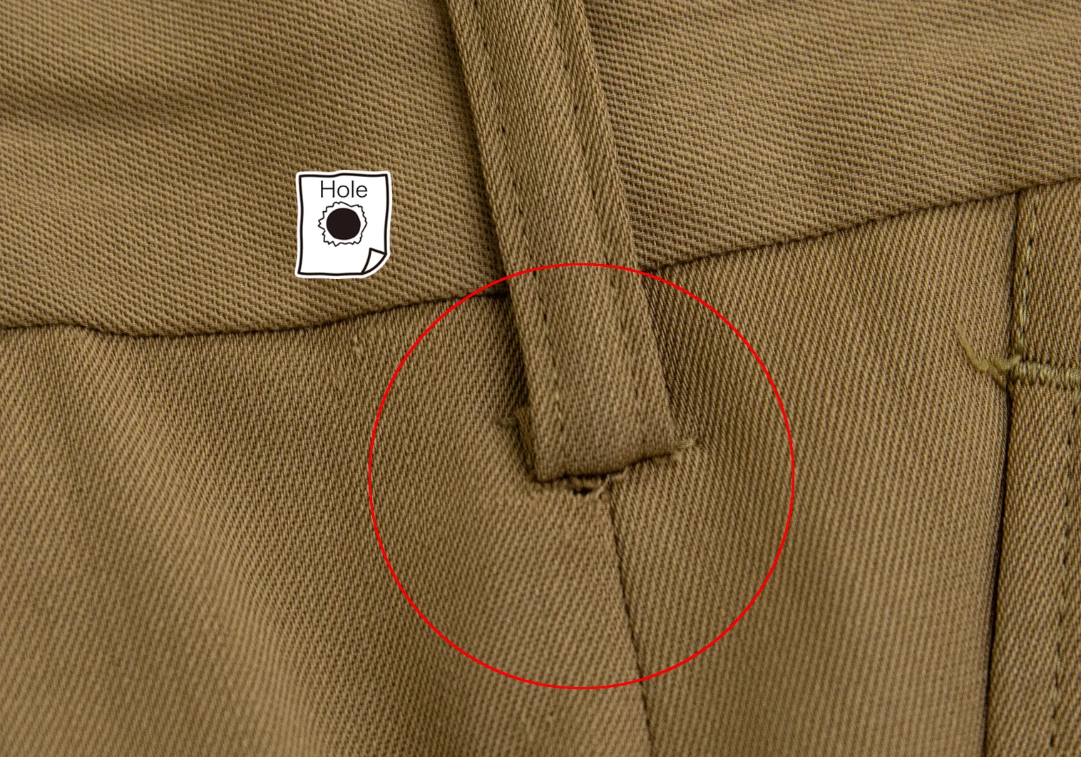 前身頃に色抜け、股下にダメージ、右サイドに穴があります(写真参照)。クリーニング済み