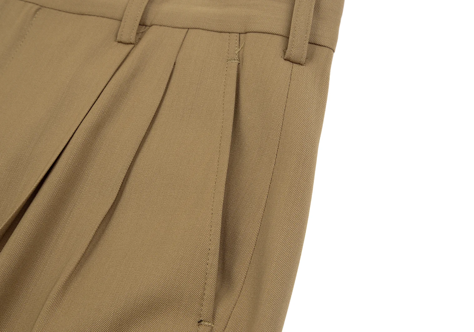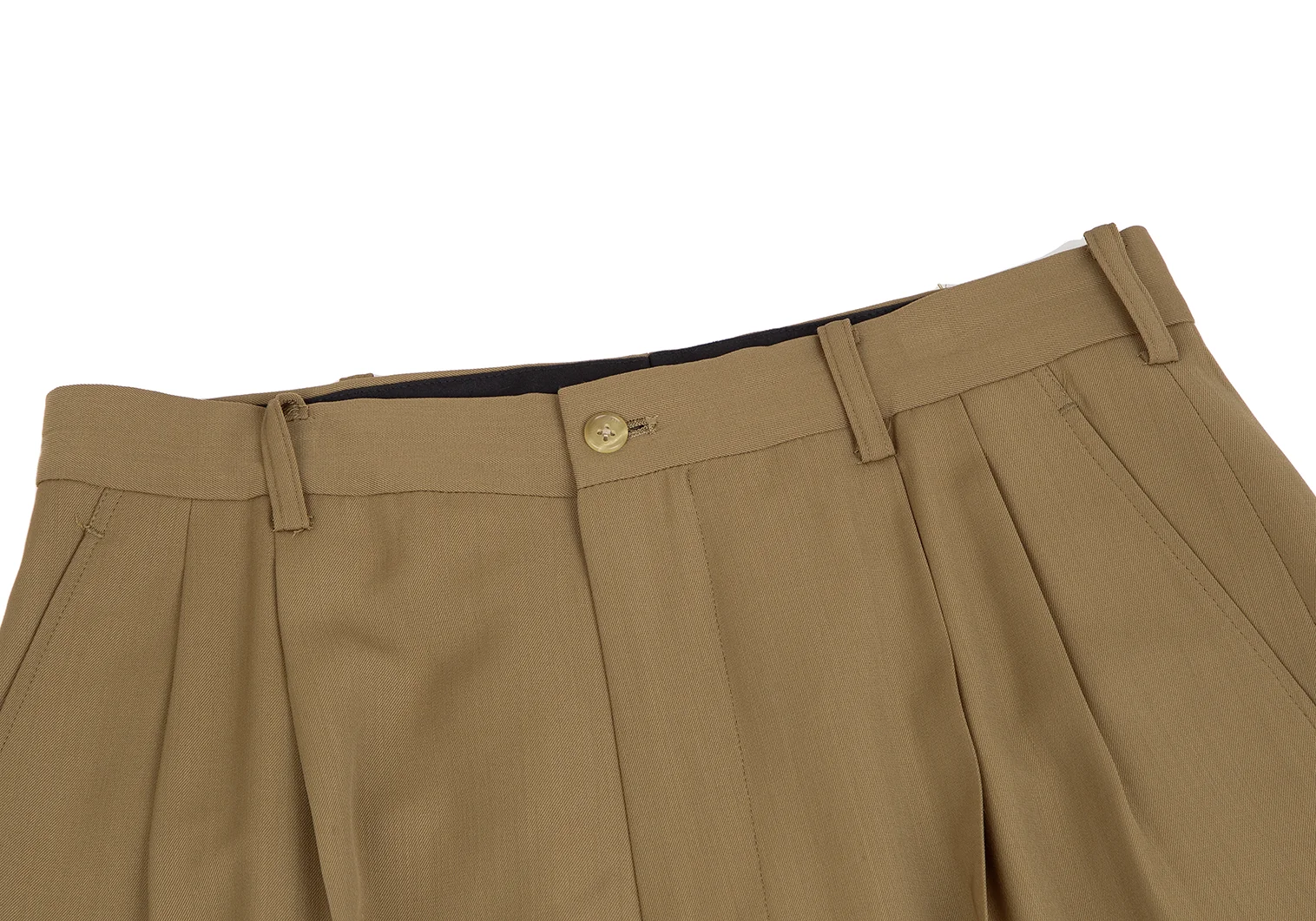 ヨウジヤマモト プールオムYohji Yamamoto POUR HOMMEウールギャバツータックパンツ ブラウンM