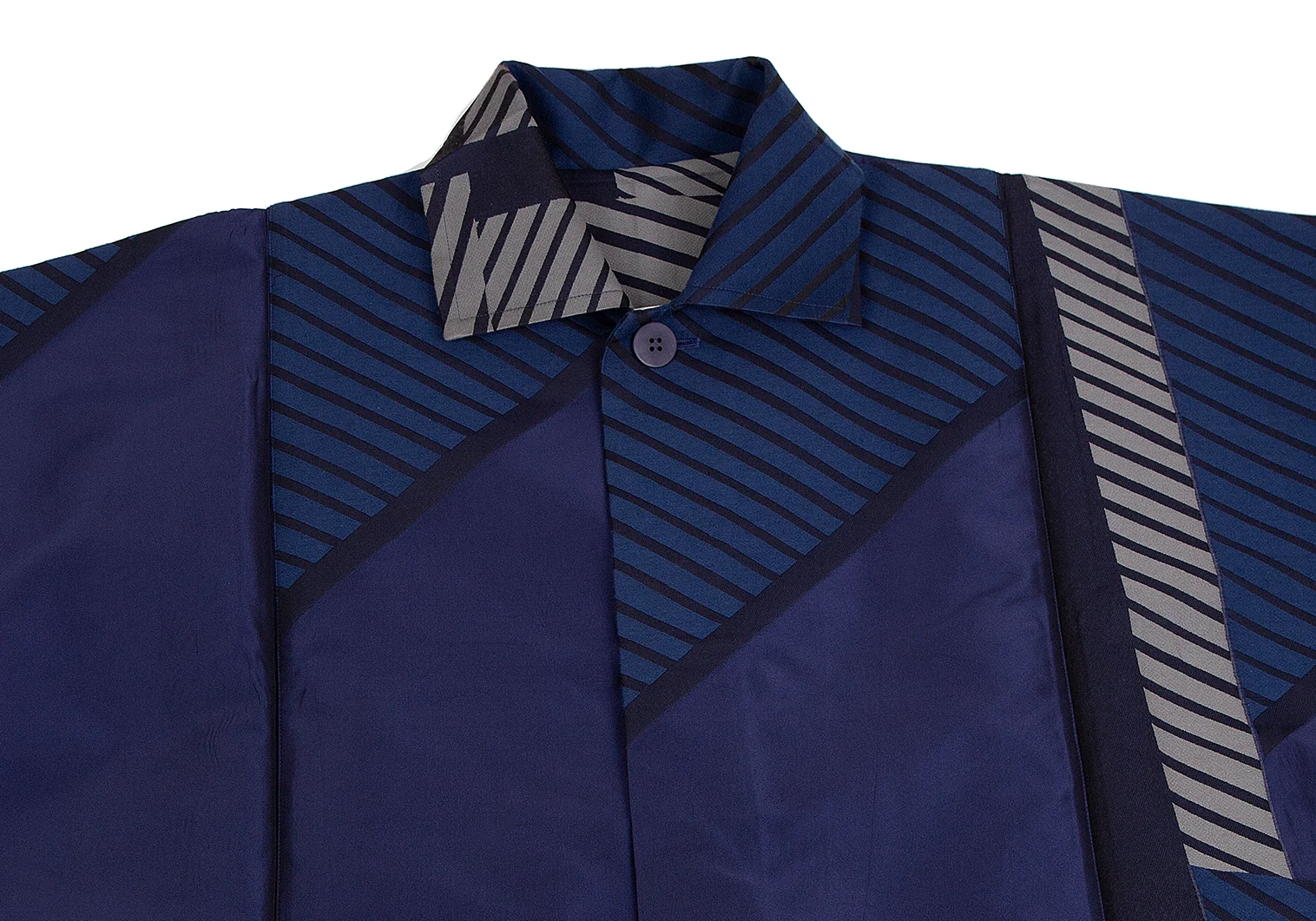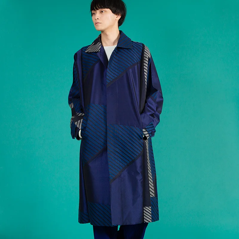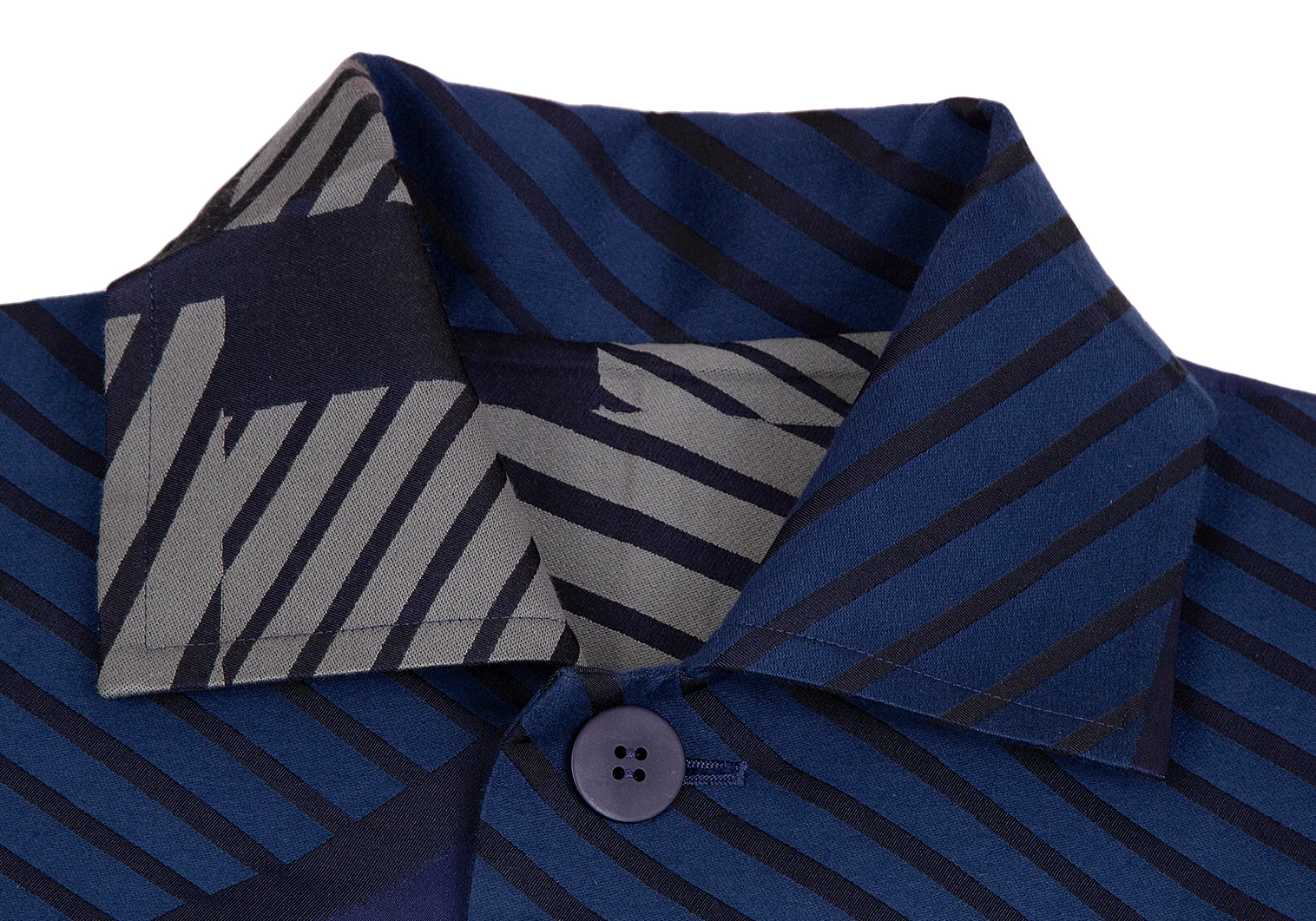 イッセイミヤケ アイム メンISSEY MIYAKE IM MEN STEP バイアスストライプカットジャガードパッカブルコート 青M位