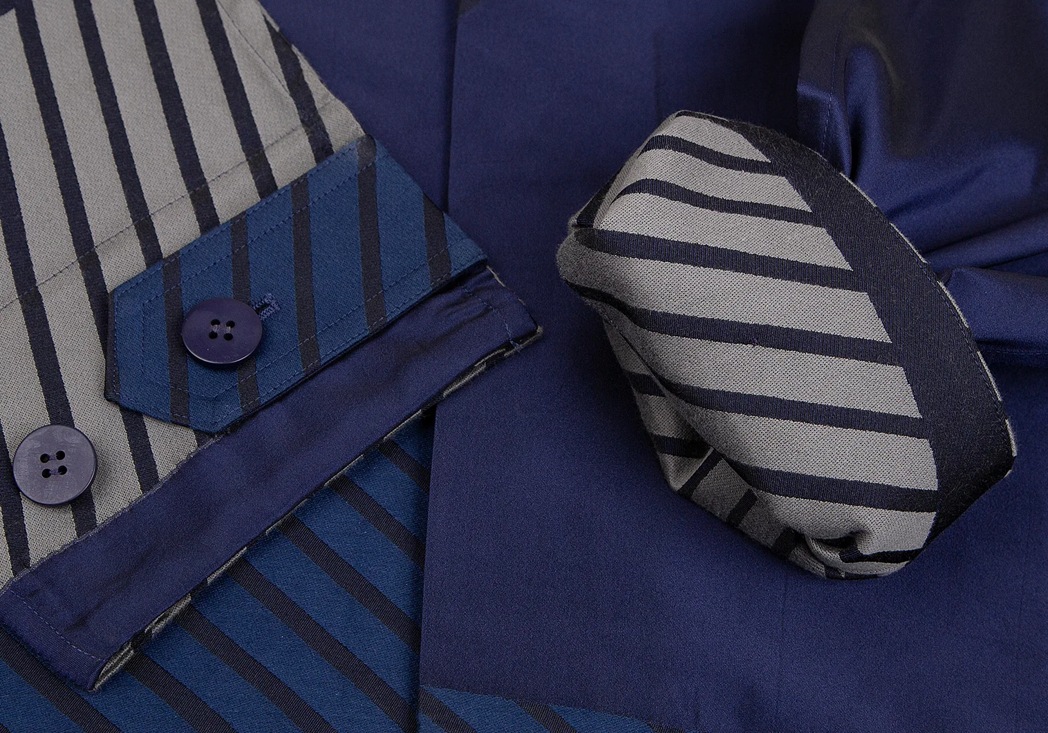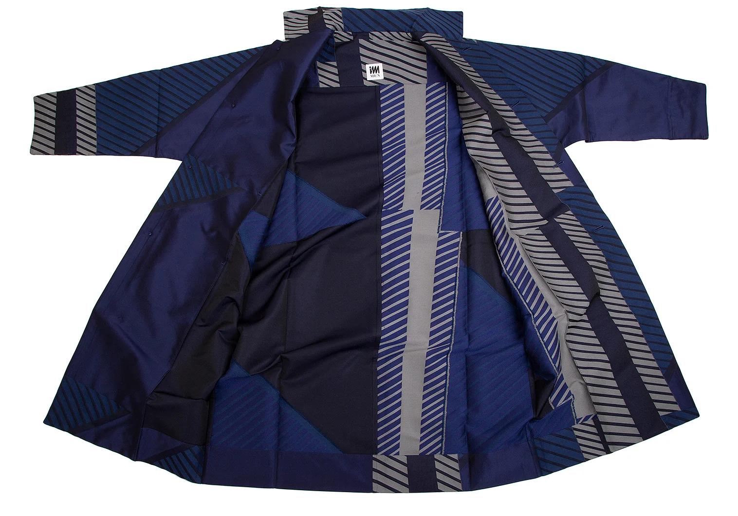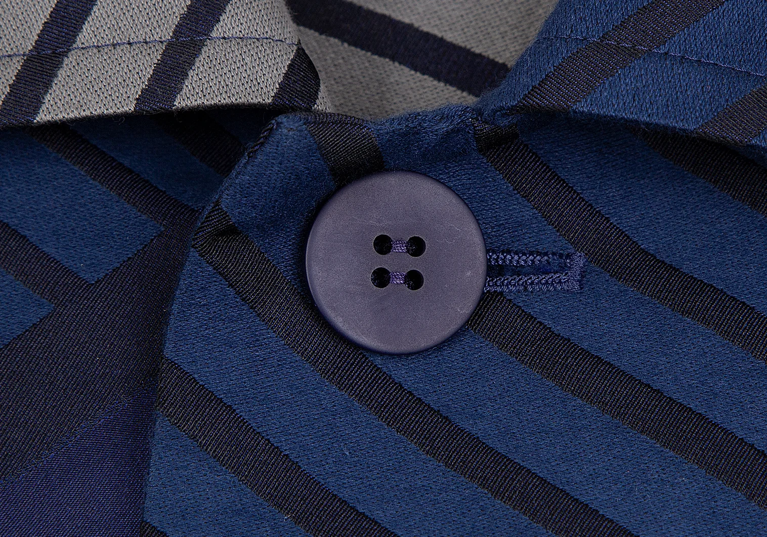 イッセイミヤケ アイム メンISSEY MIYAKE IM MEN STEP バイアスストライプカットジャガードパッカブルコート 青M位