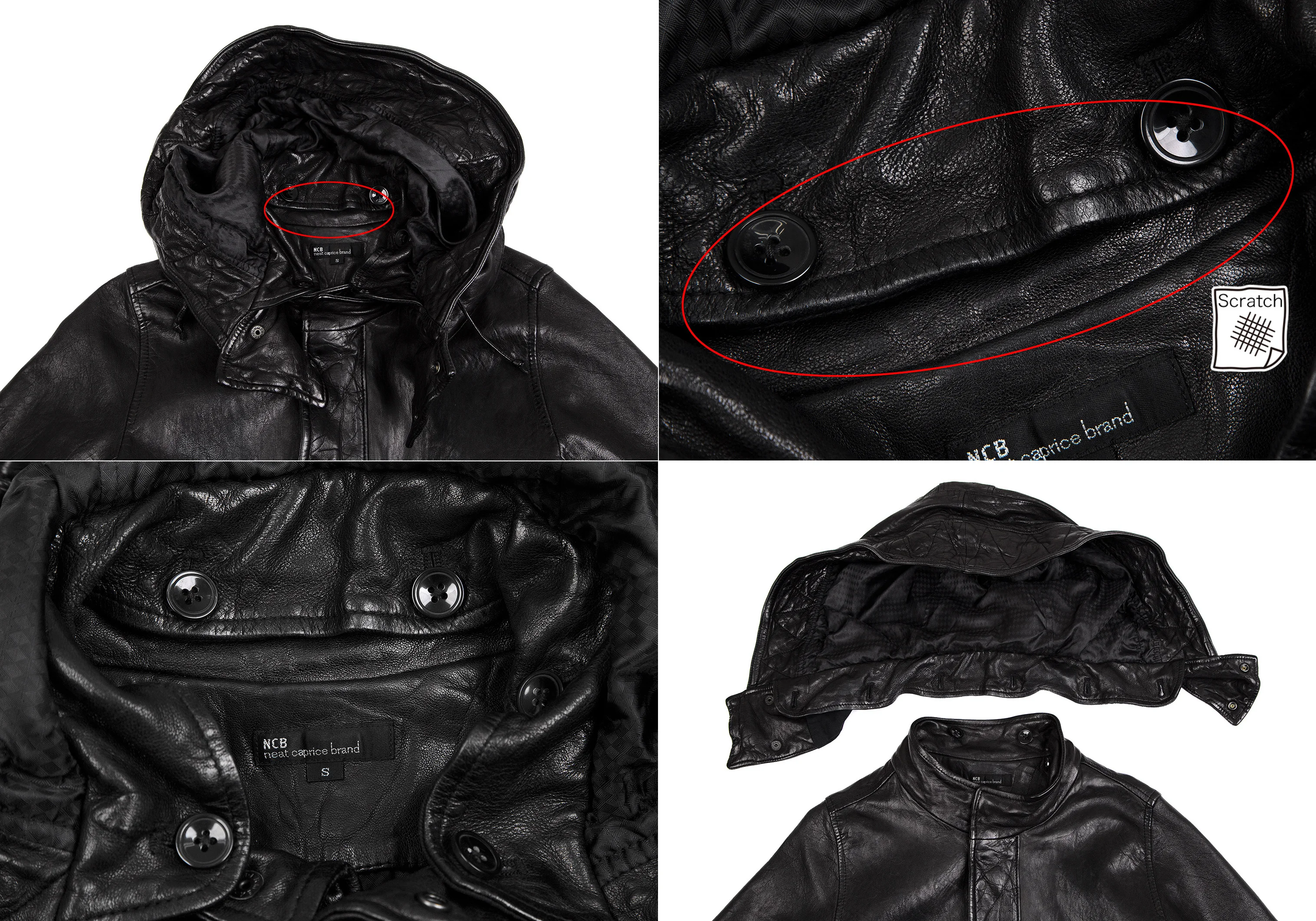 エヌシービーニートカプリスブランドNCB neat caprice brand フード着脱レザージャケット 黒S