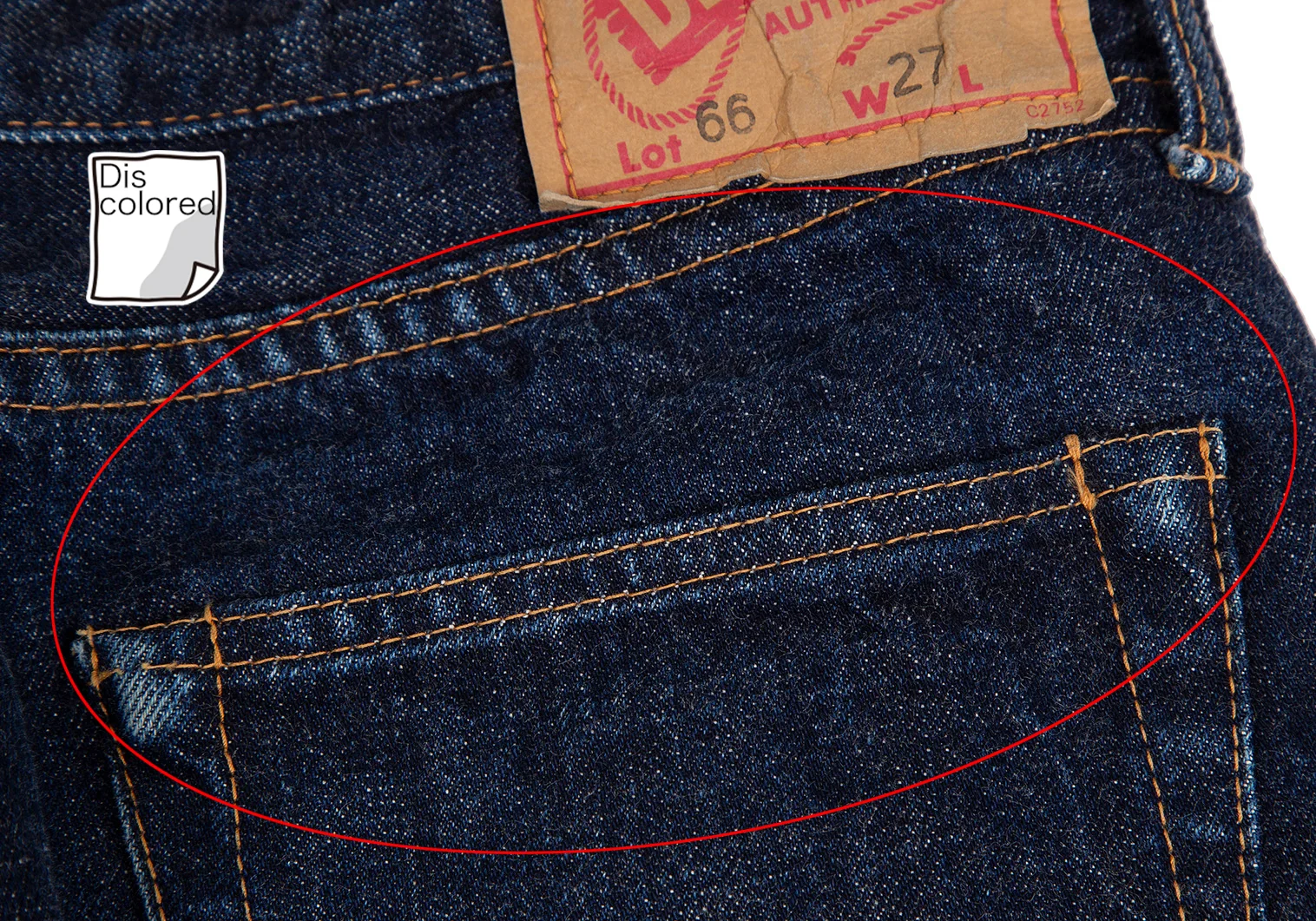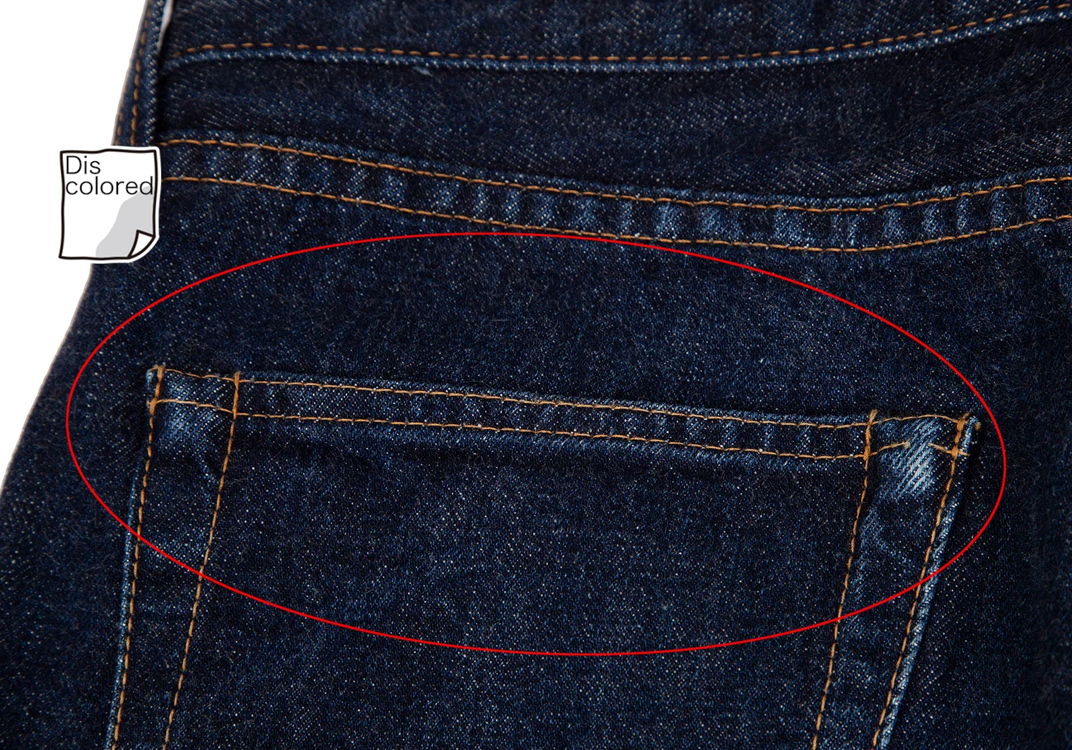 ポケット裏に色移り、ウエスト・ヒップなどにデニム特有のアタリ、裾にロールアップ跡があります(写真参照)その他目立ったシミ、汚れ、ほつれ等なくいい状態です。クリーニング済み