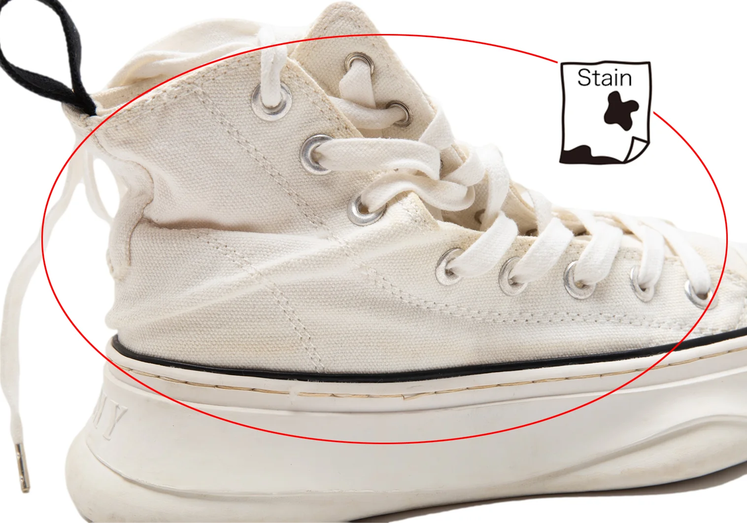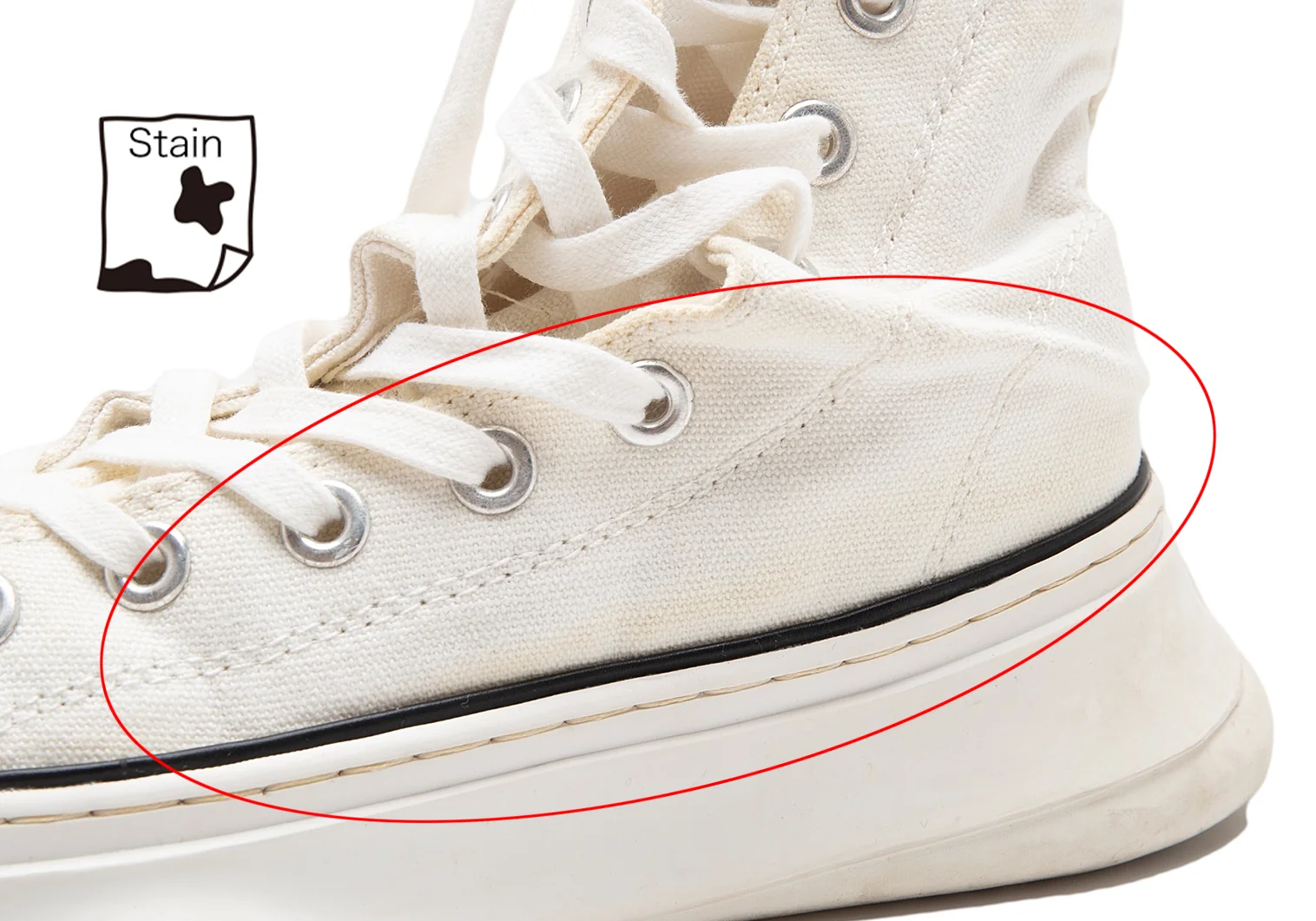 全体的に汚れ・変色、かかとに減りがあります(写真参照)。まだまだお使いいただけるお品です。