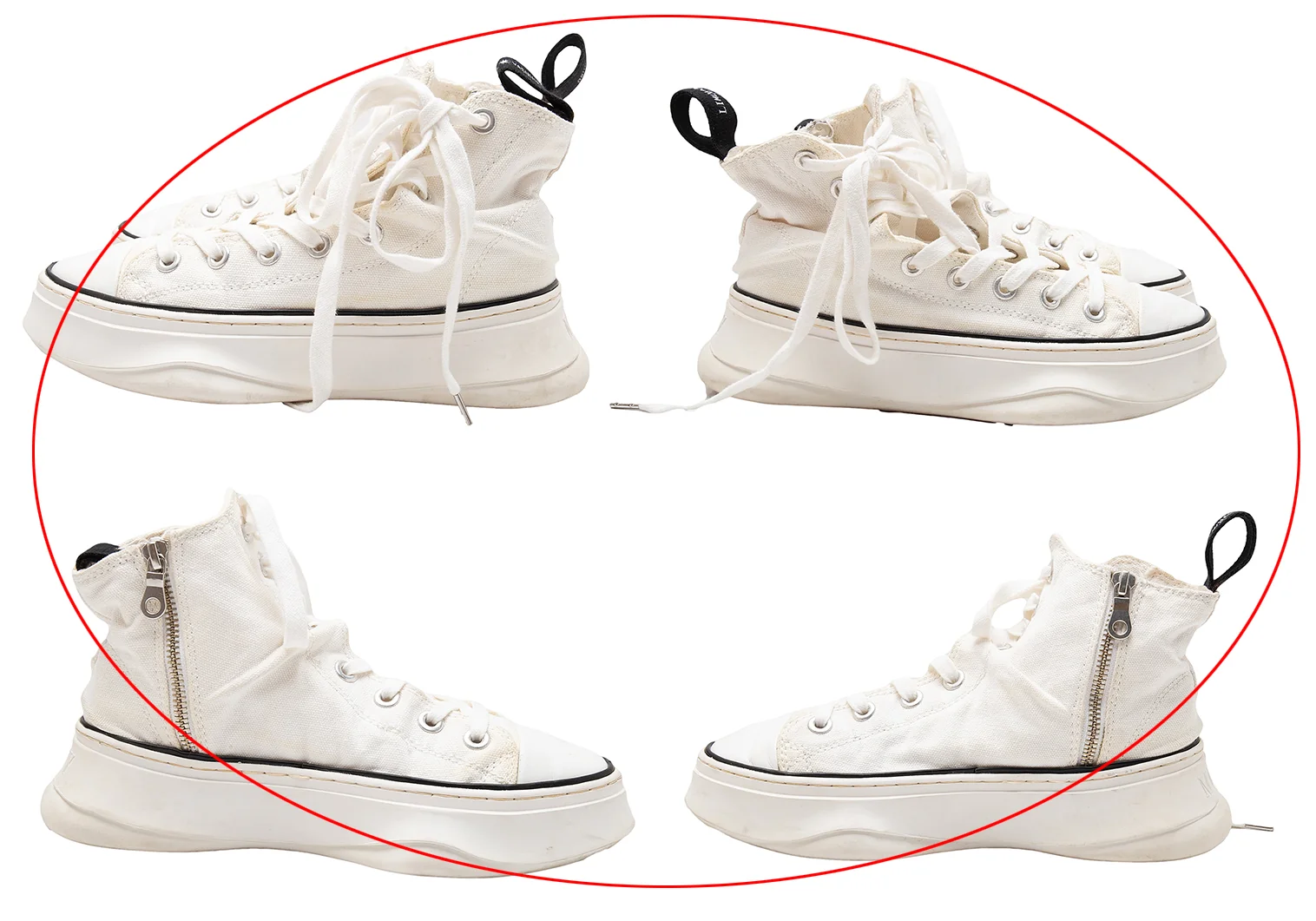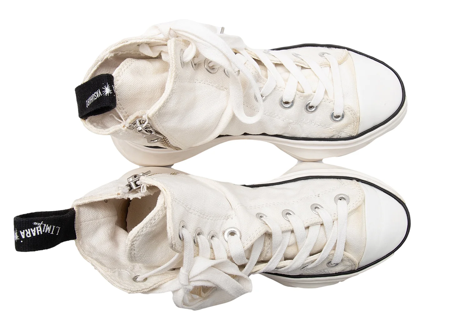 リミフゥ×ミハラヤスヒロLIMI feu×MIHARA YASUHIRO ねじれキャンバスハイカットスニーカー 白37(23.5)