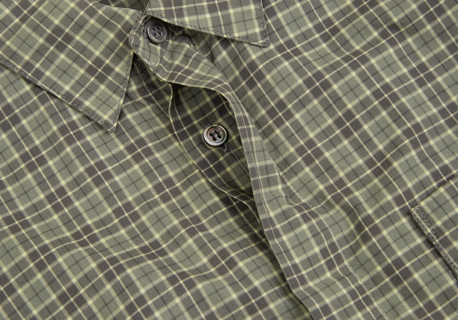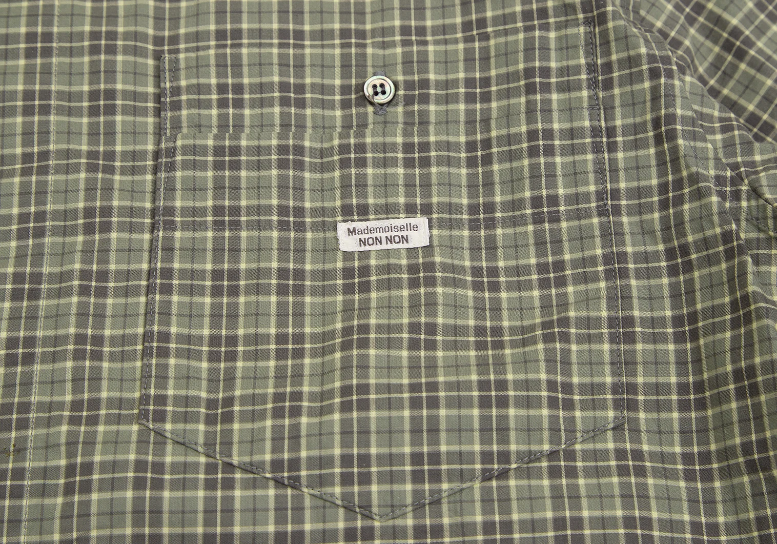 マドモアゼルノンノンMademoiselle NON NON コットンチェックダブルポケットシャツ 緑L位