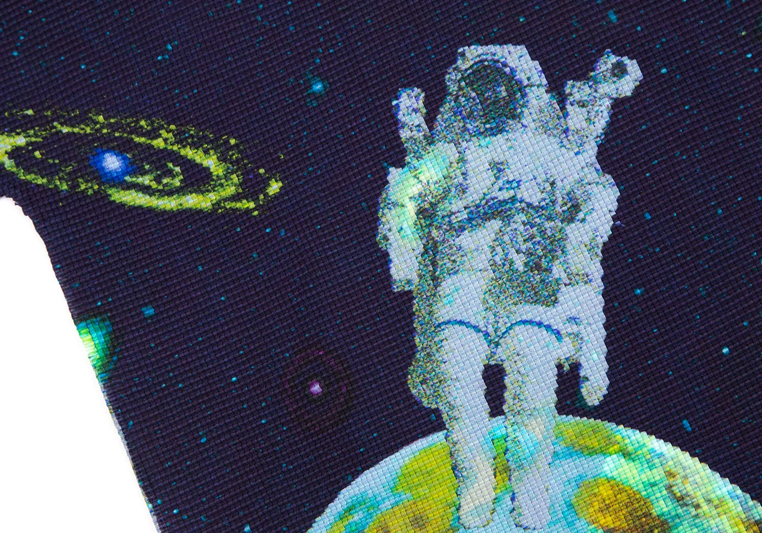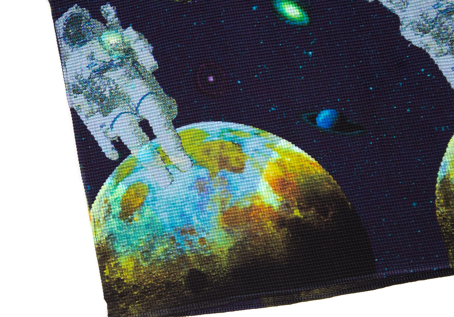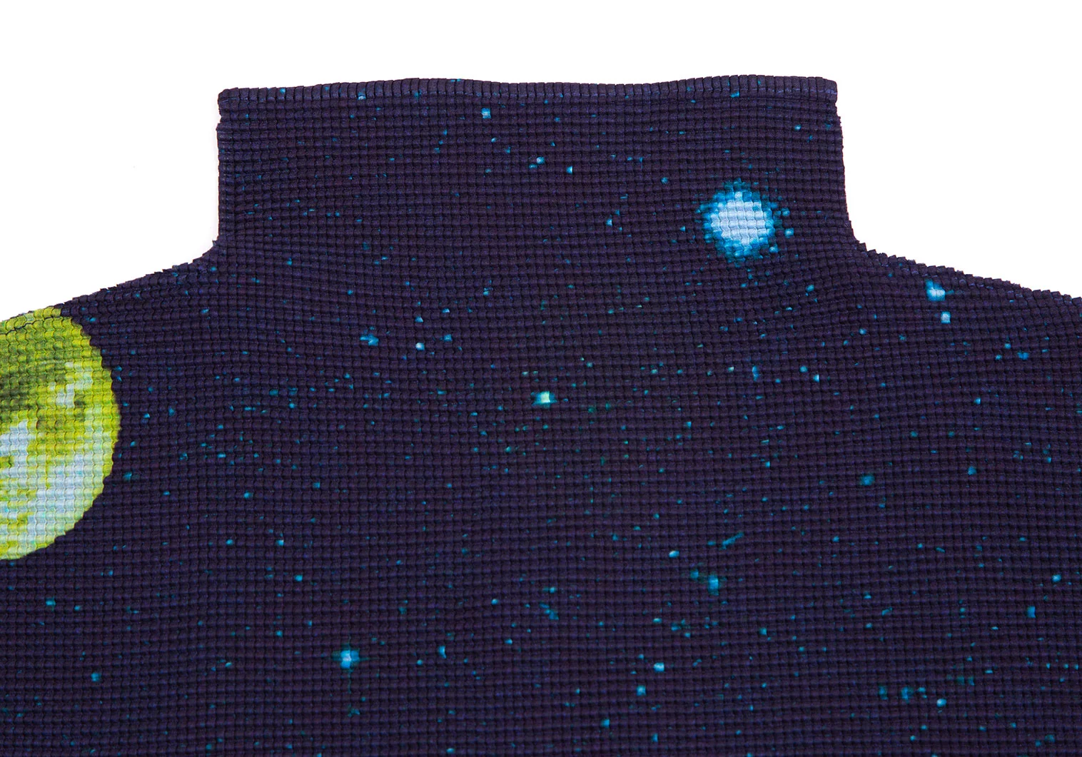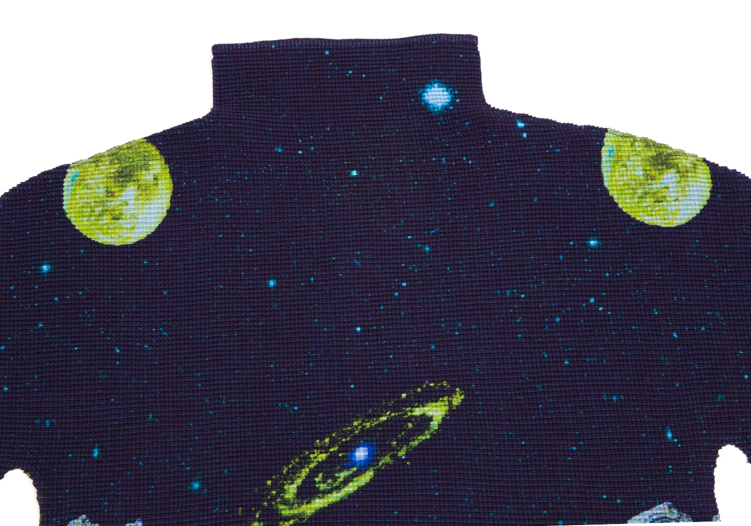 イッセイミヤケ ミーISSEY MIYAKE me 宇宙飛行士プラネットプリントストレッチプリーツハイネックTシャツ 紺F