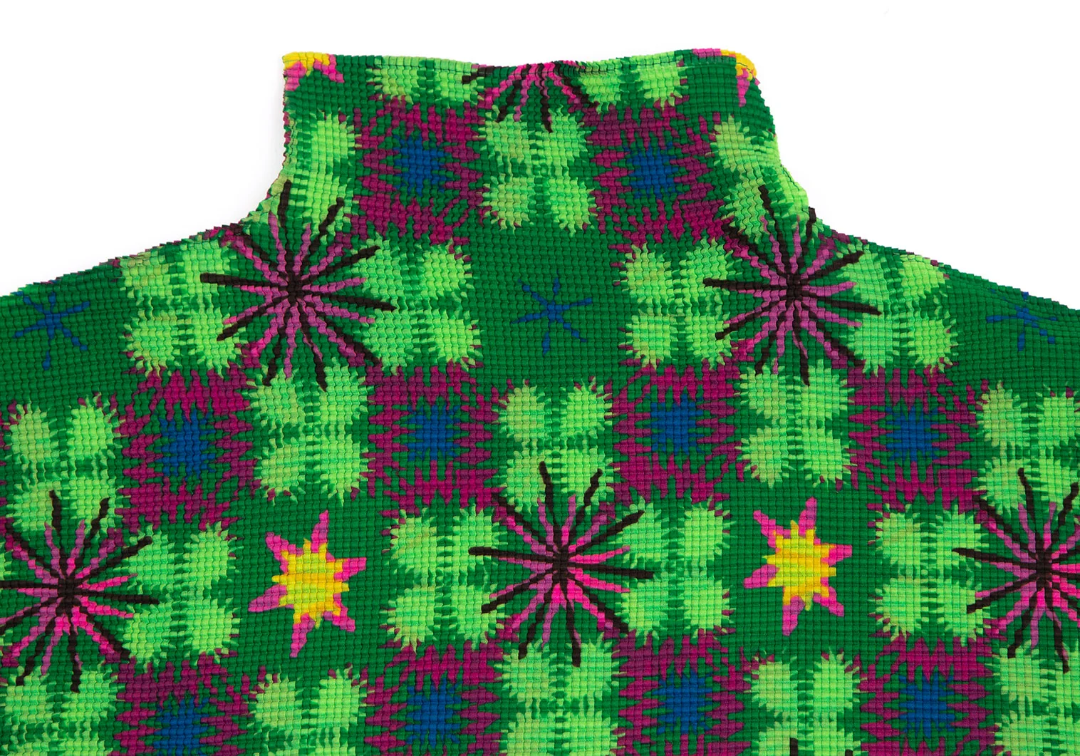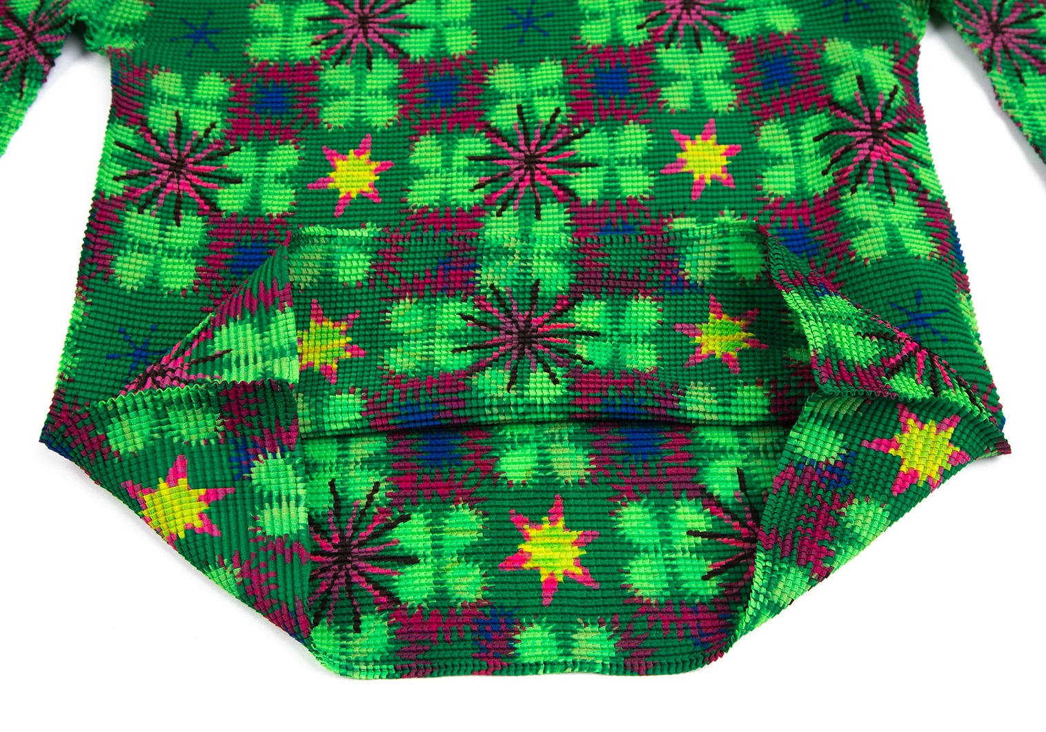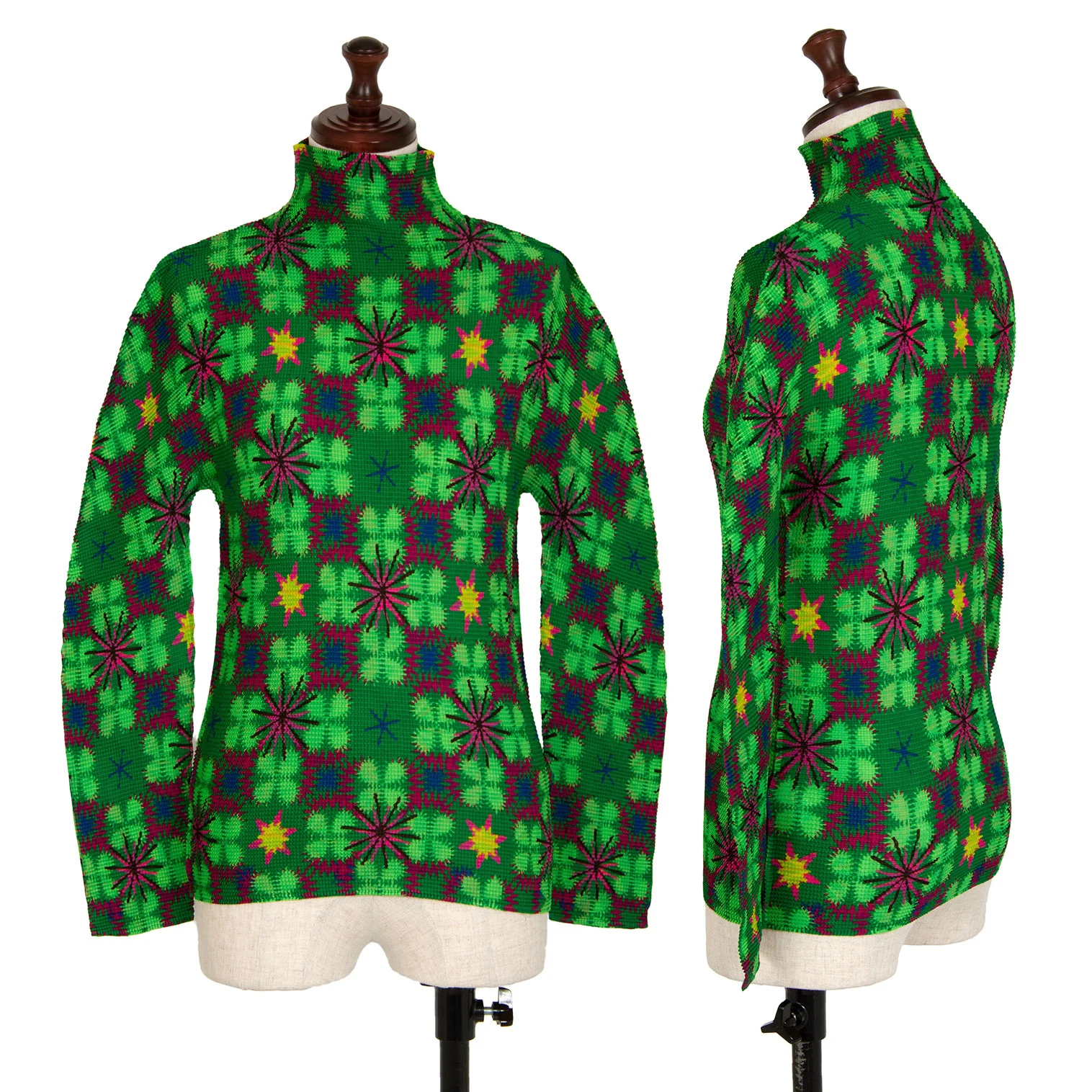 イッセイミヤケ ミーISSEY MIYAKE me クローバープリントストレッチプリーツハイネックカットソー 緑紫F