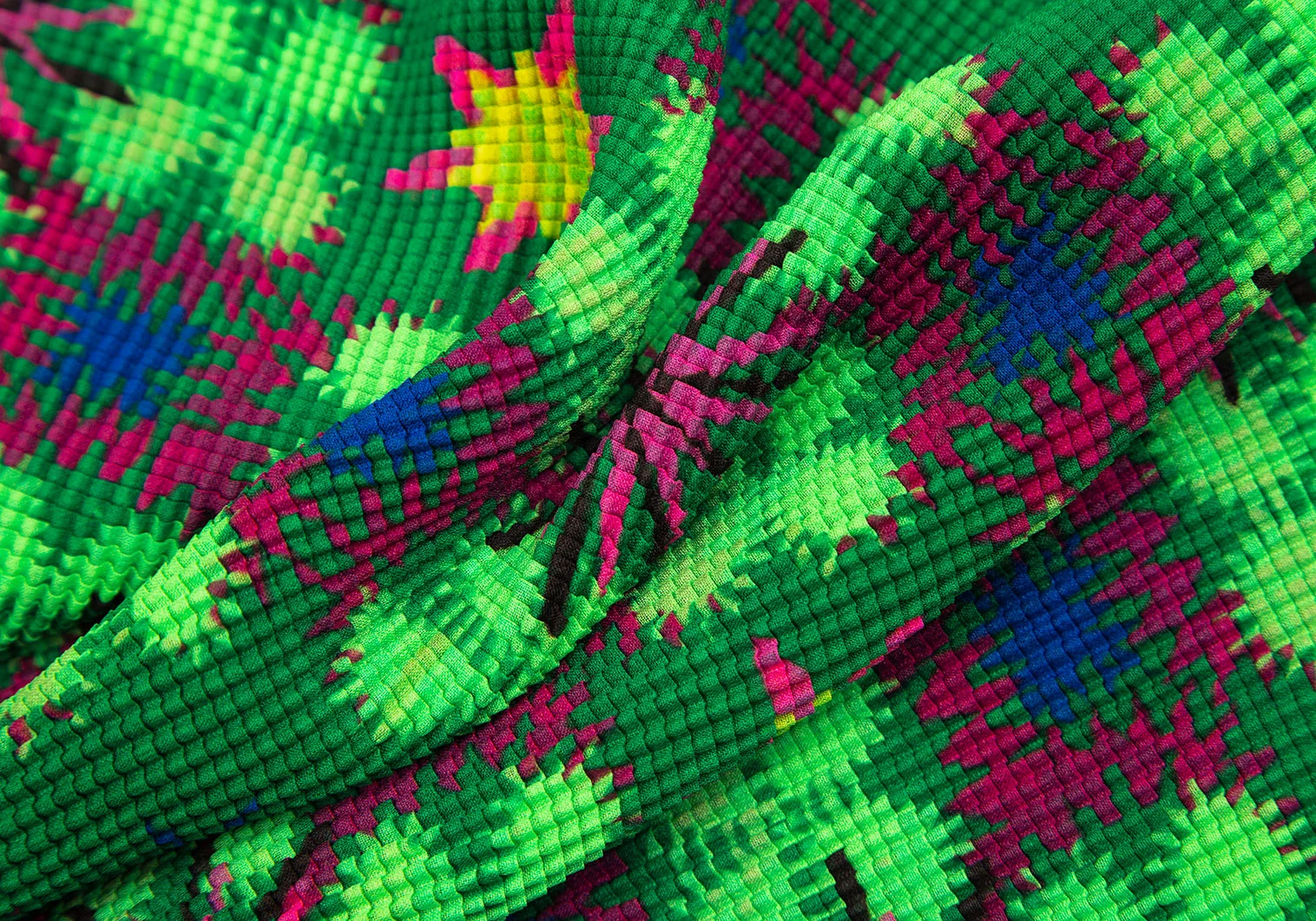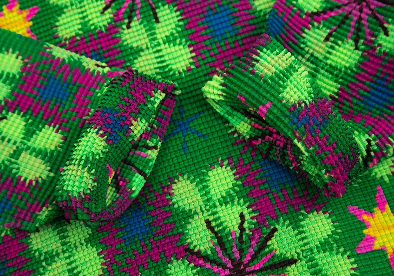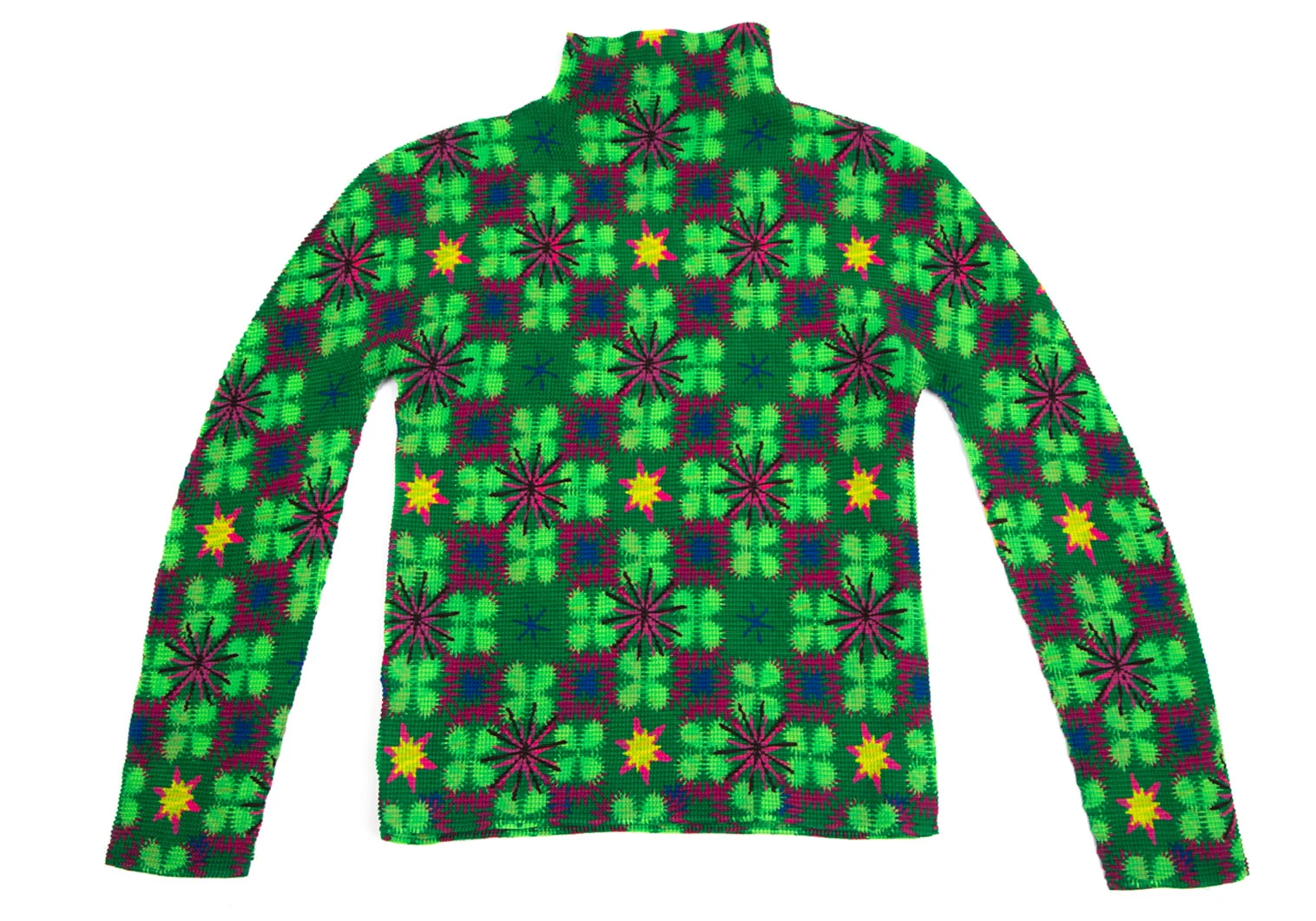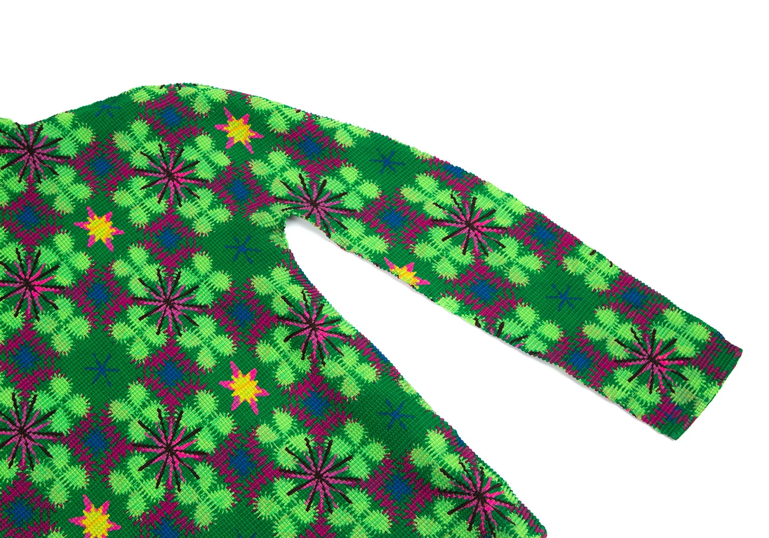 イッセイミヤケ ミーISSEY MIYAKE me クローバープリントストレッチプリーツハイネックカットソー 緑紫F