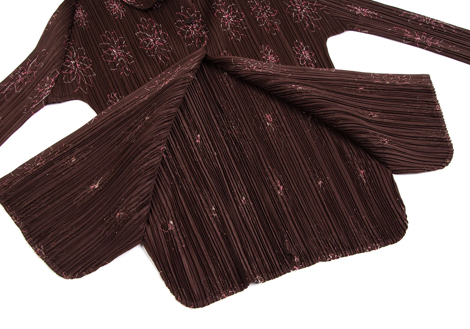 プリーツプリーズPLEATS PLEASE フラワー刺繍セットアップ 赤茶3/2