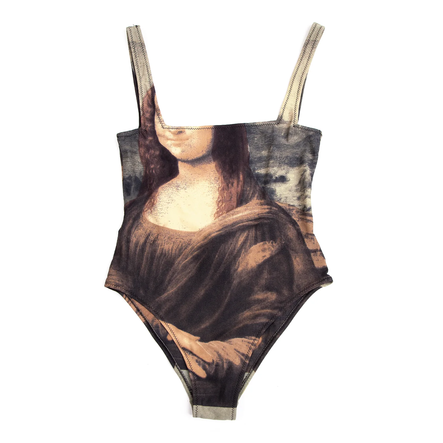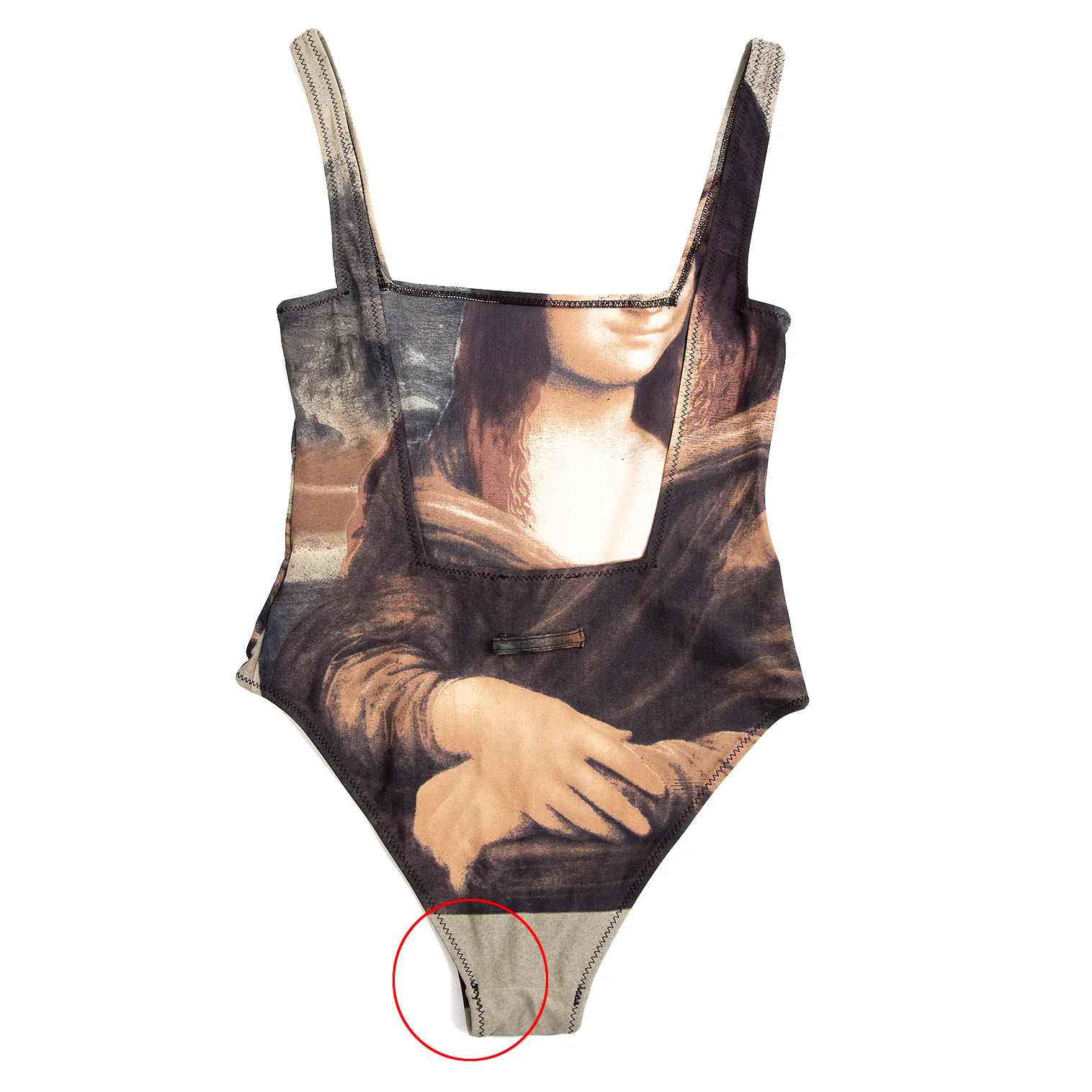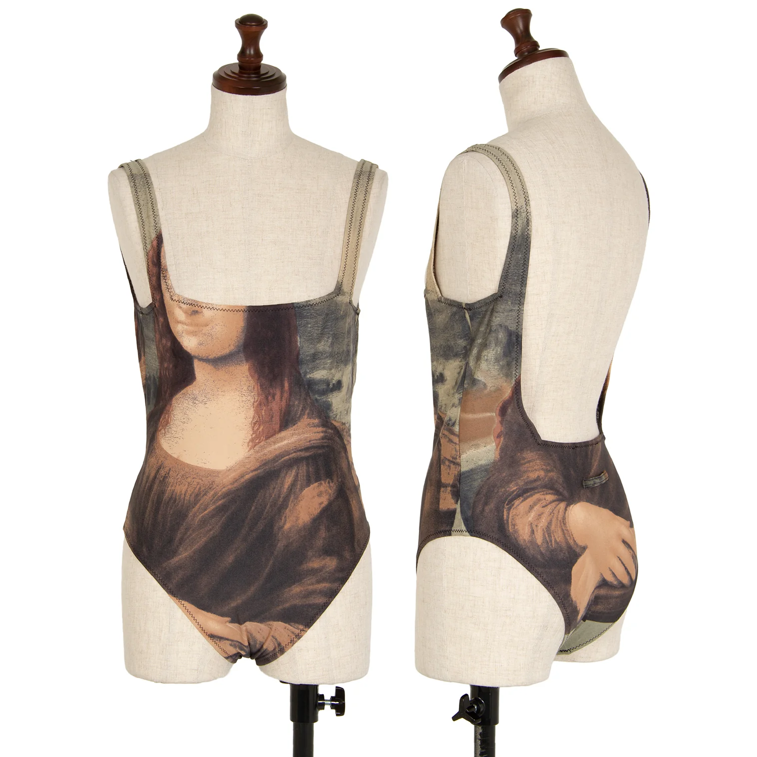 ジャンポールゴルチエ マイユJean Paul GAULTIER MAILLE モナリザプリントストレッチレオタードスイムウェア ベージュグレーS