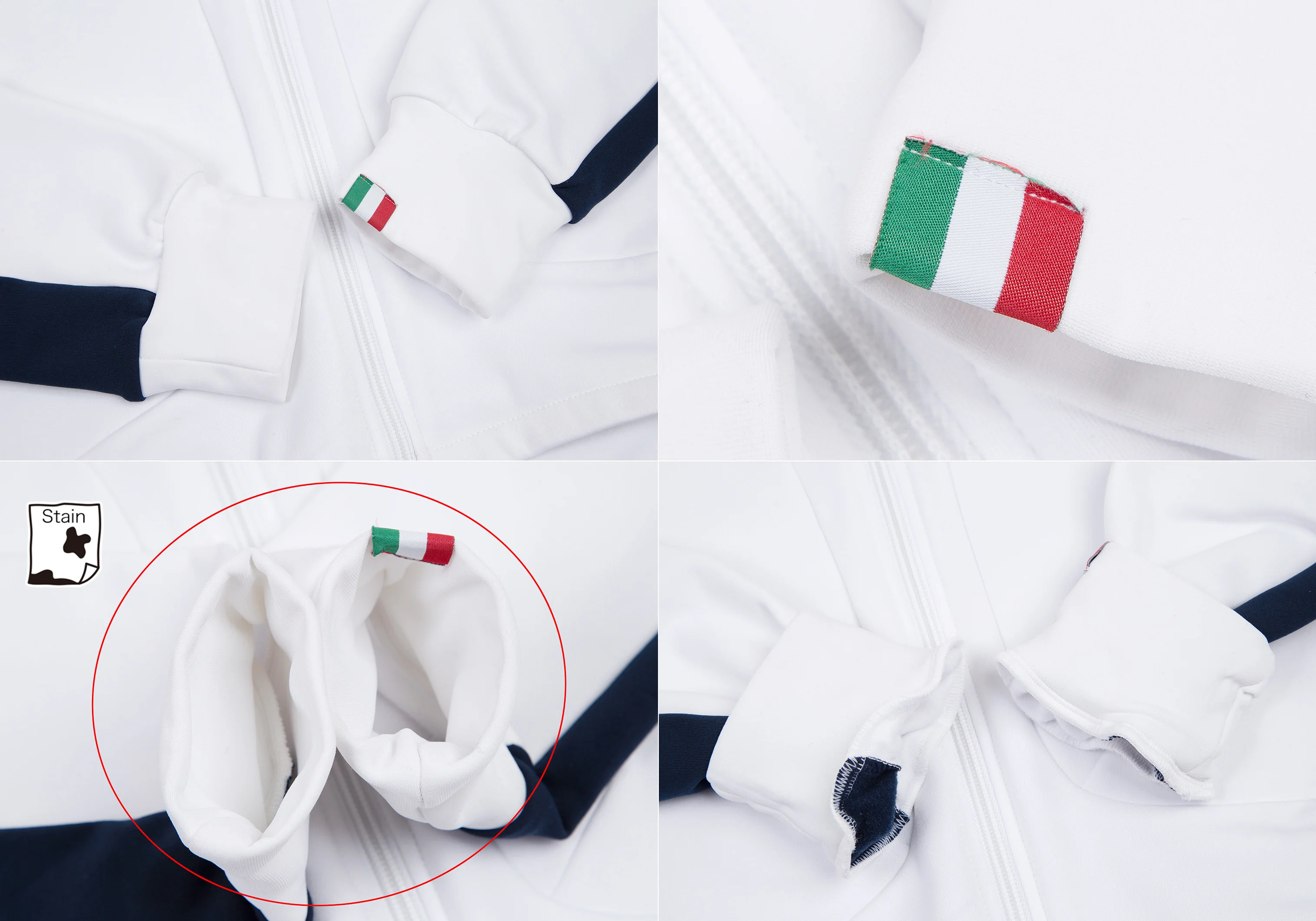 前身頃・両肩・袖口に薄シミがあります(写真参照)。その他目立ったシミ、汚れ、ほつれ等なくいい状態です。クリーニング済み