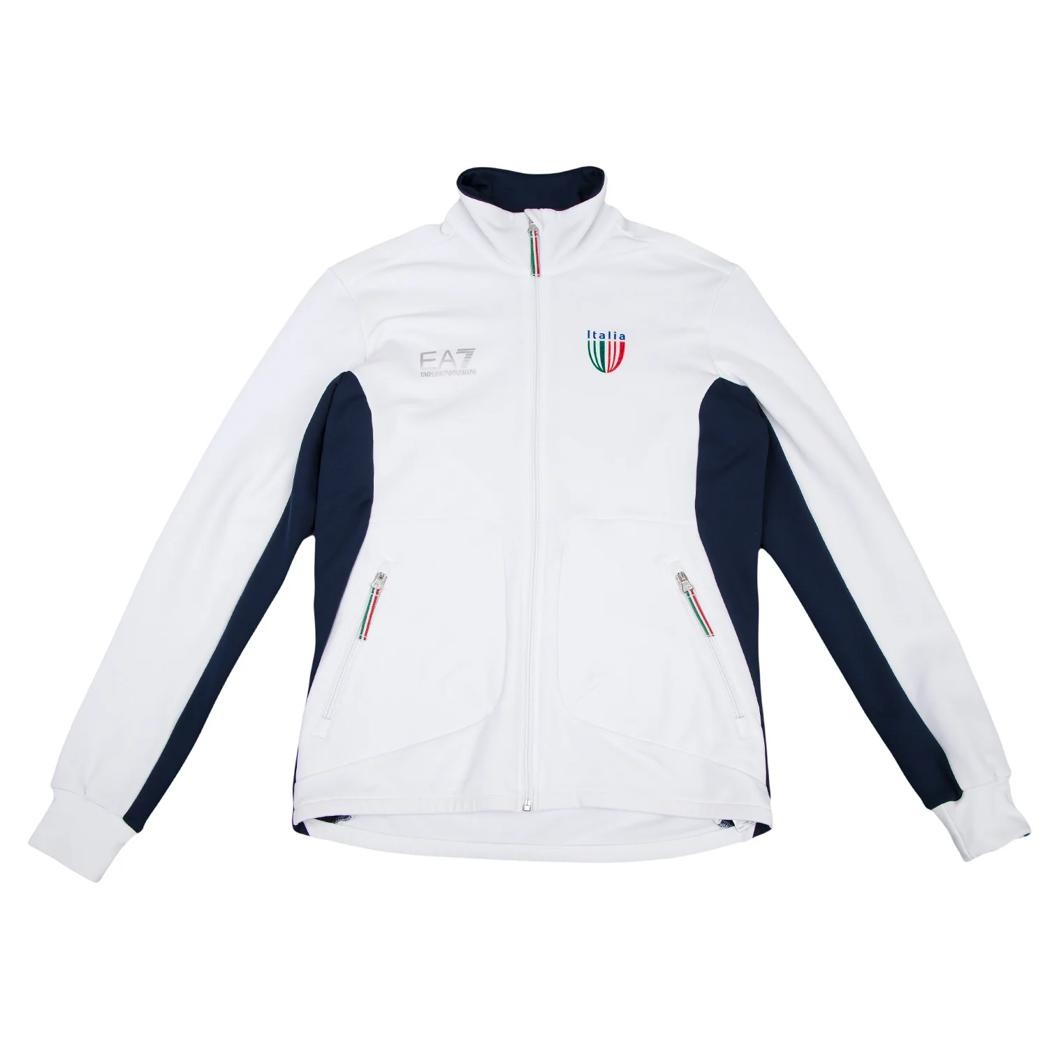 エンポリオ アルマーニ エアセッテEMPORIO ARMANI EA7 プリントトラックジャケット 白紺M