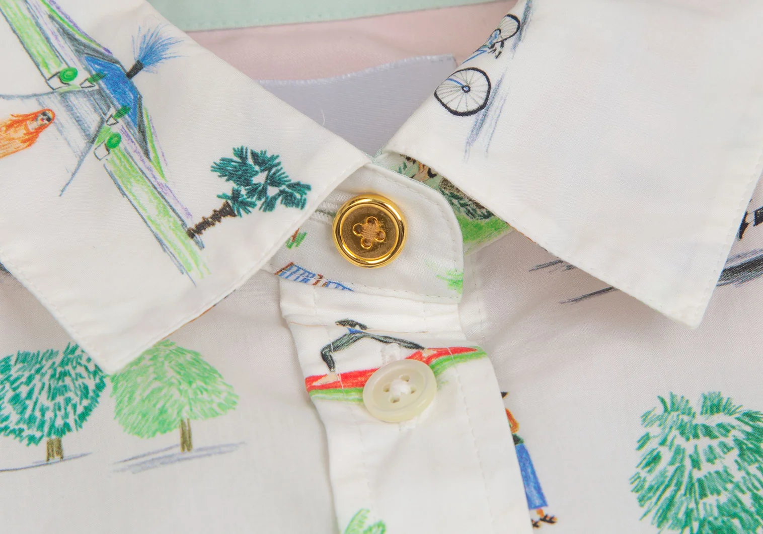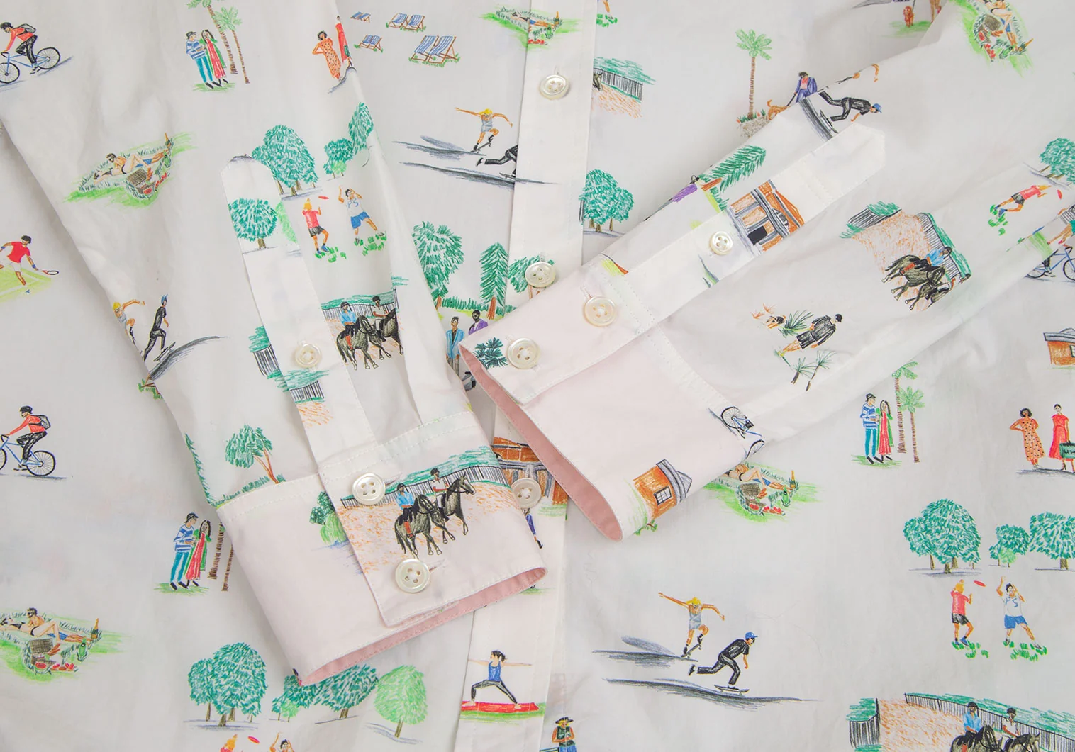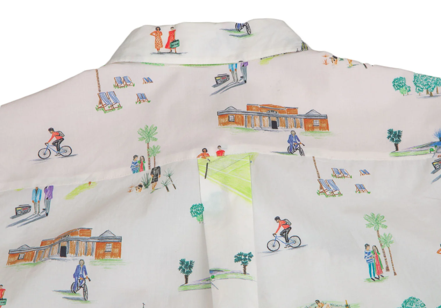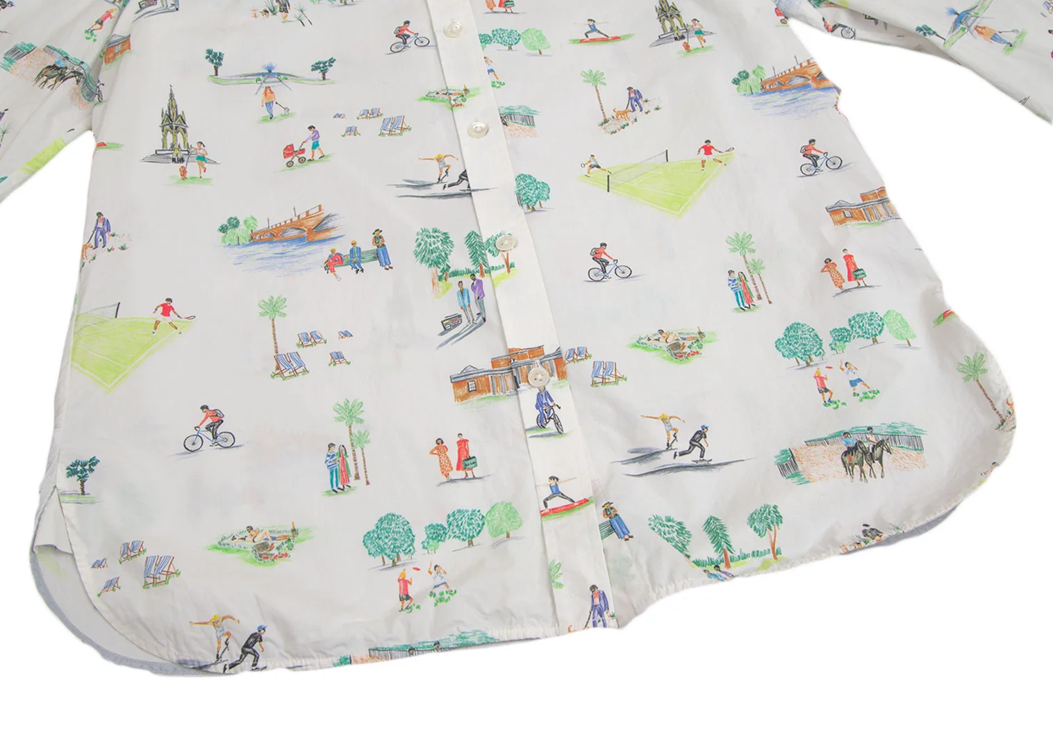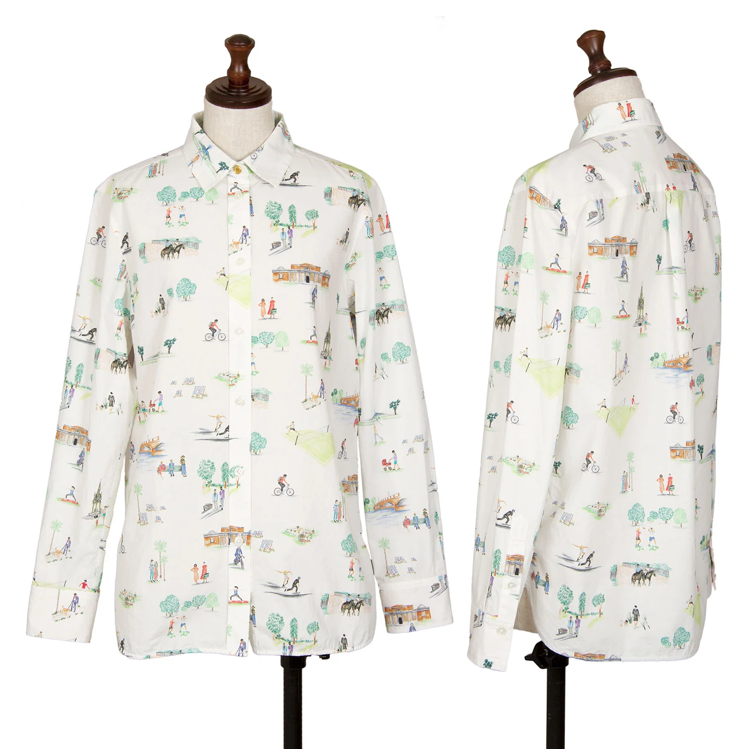 ポールスミスPaul Smith コットンアクティビティ総柄プリントシャツ 白他42