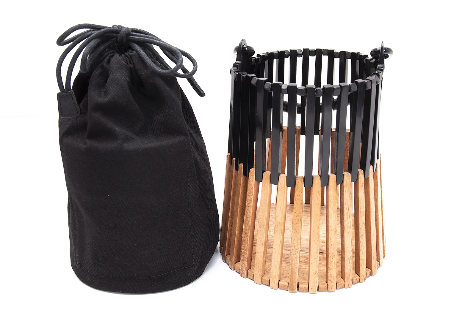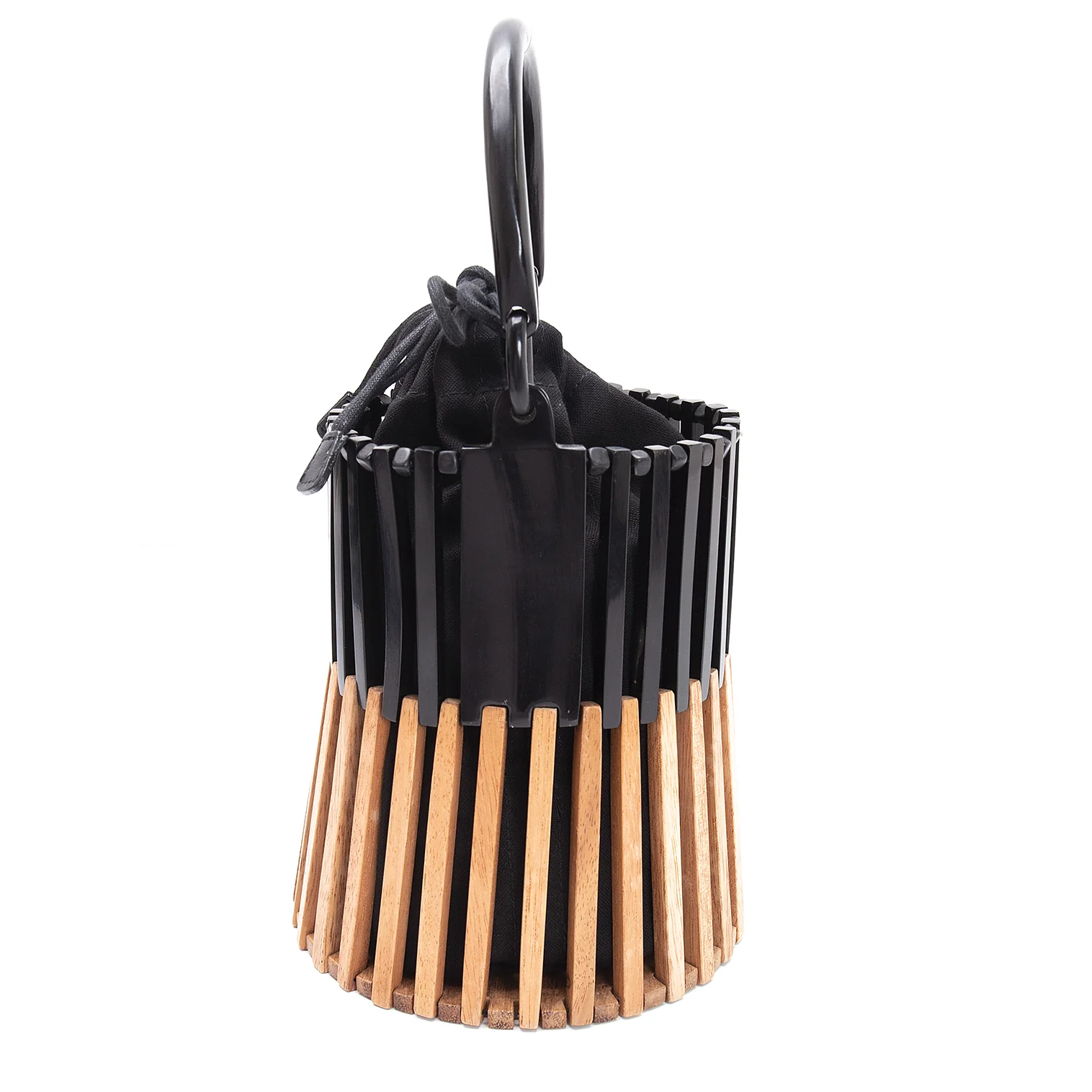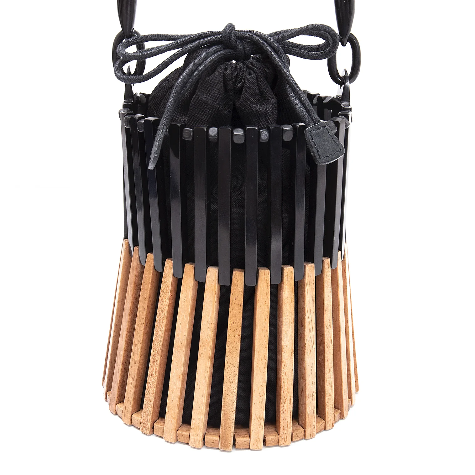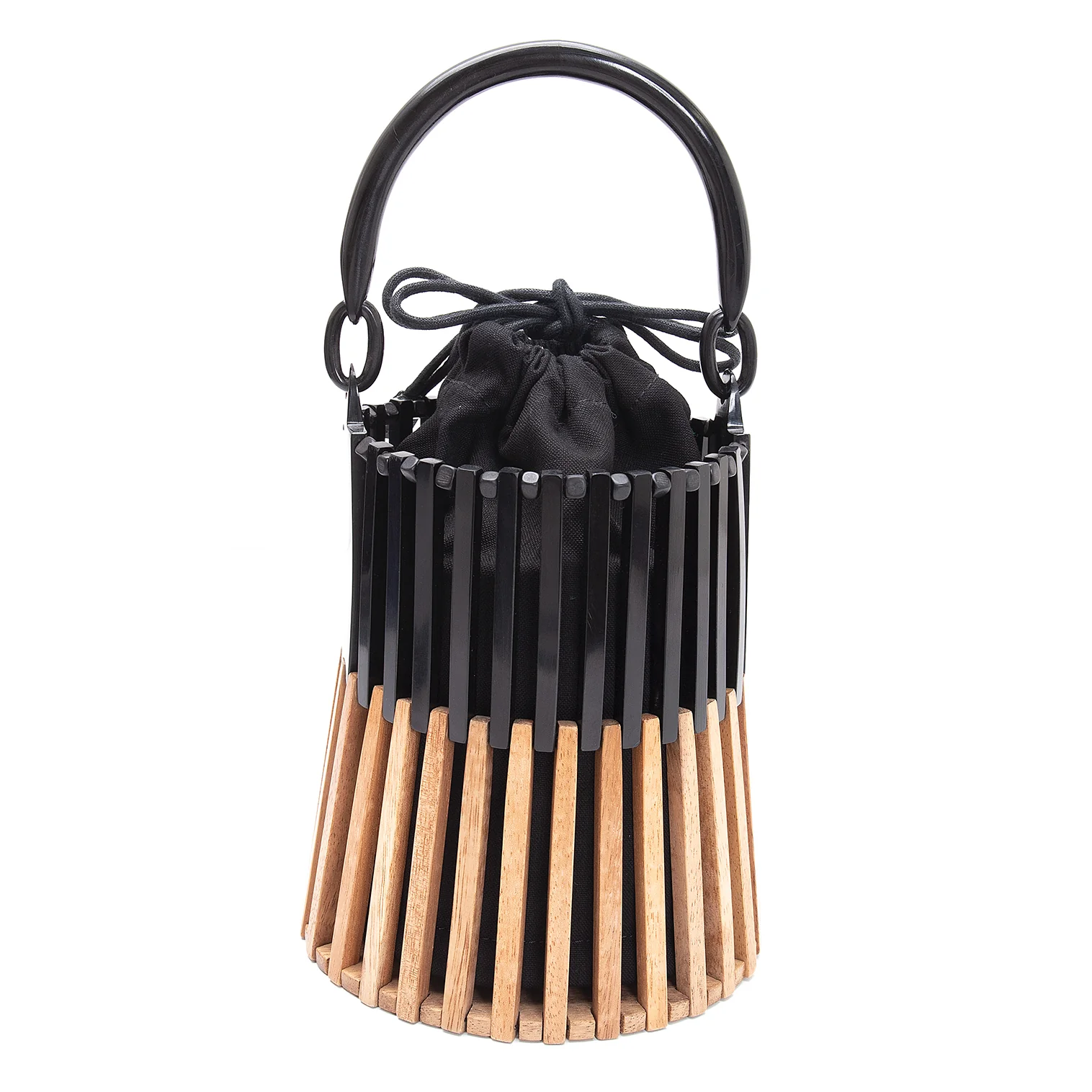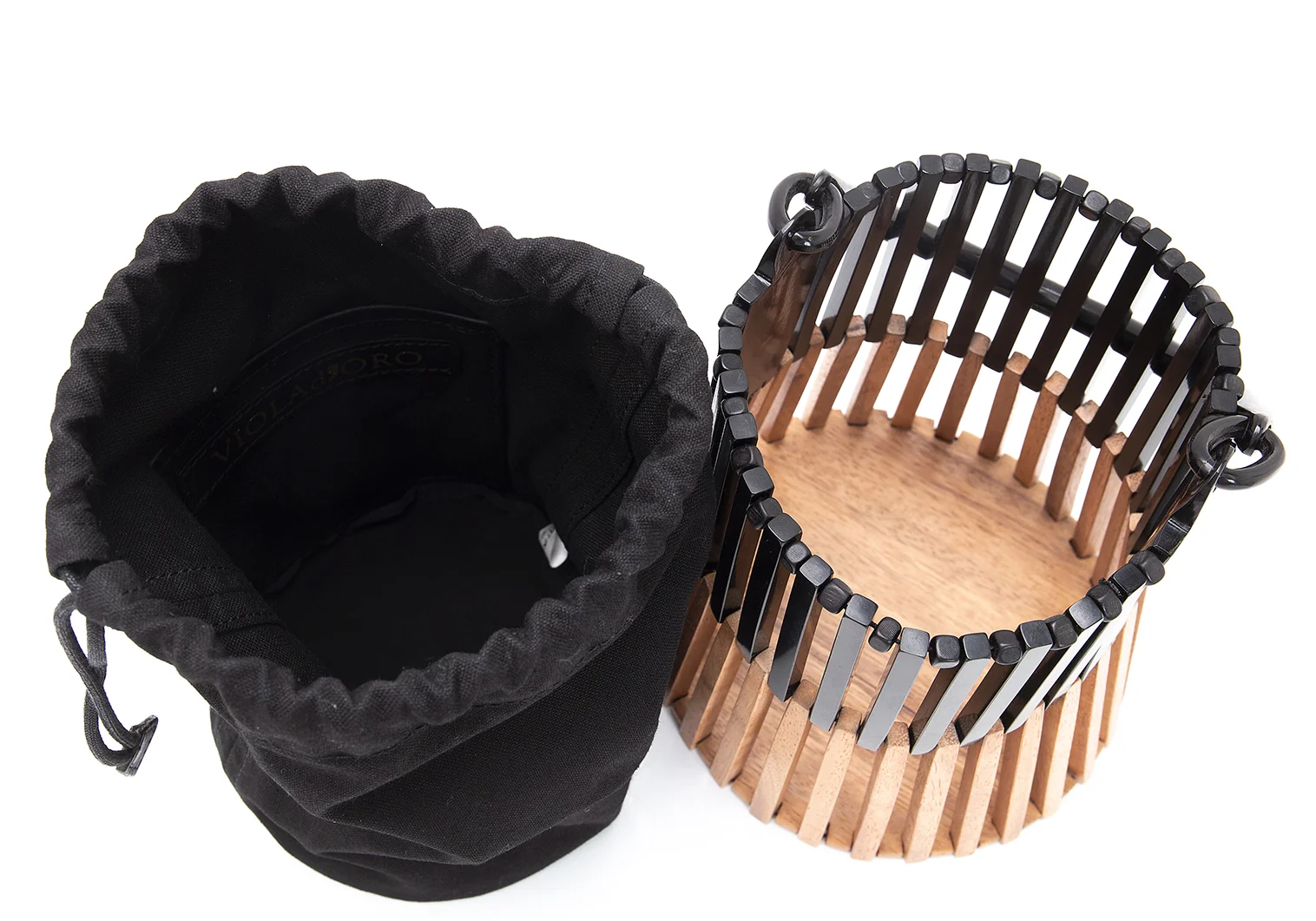 ヴィオラドーロVIOLAd'ORO バッファローホーンウッドコンビハンドバッグ 黒ナチュラル
