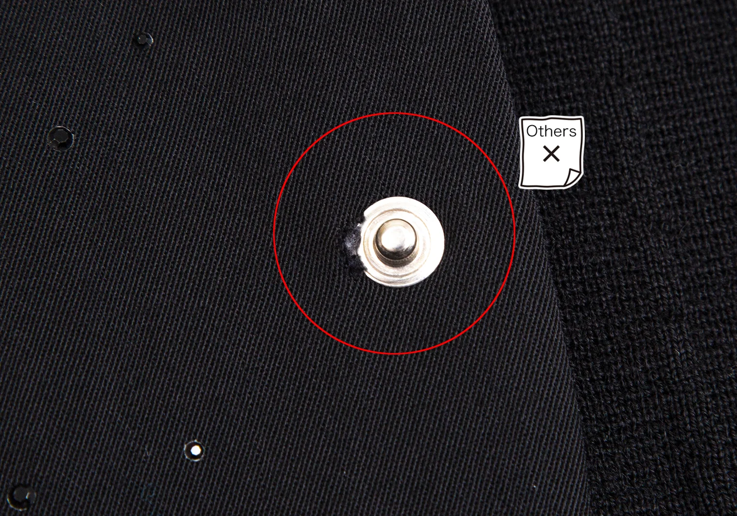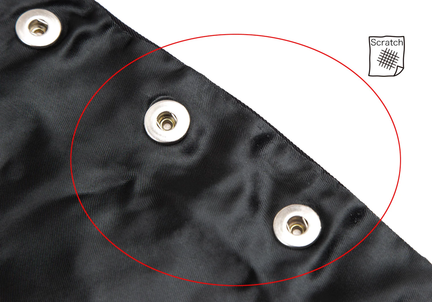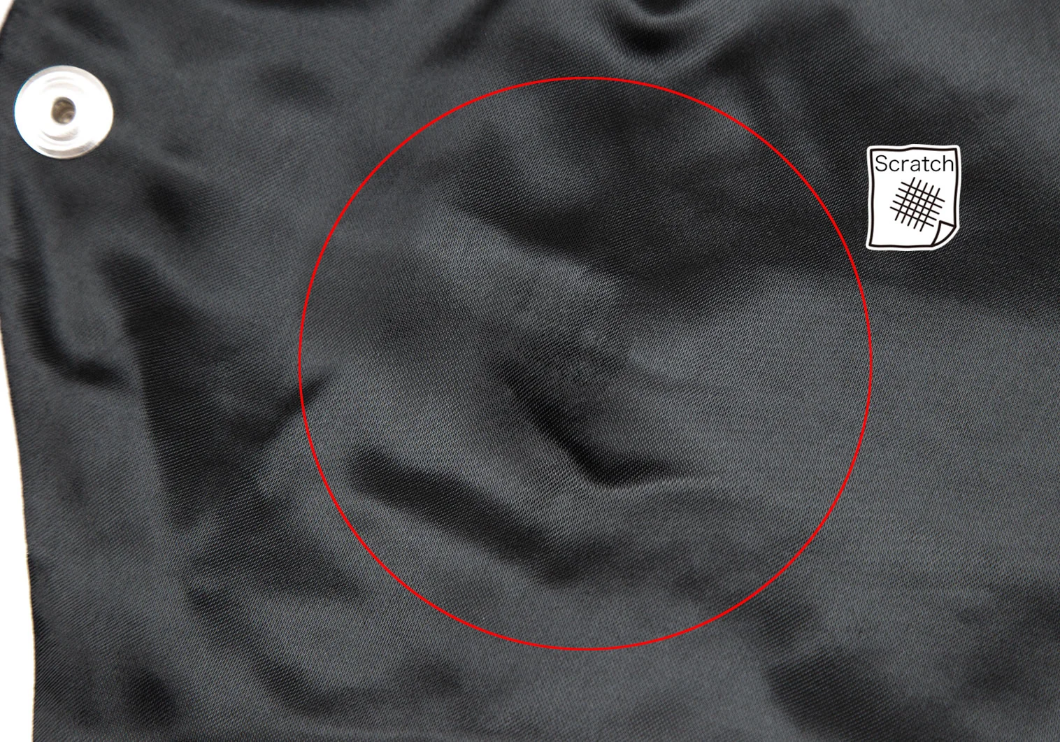 スナップボタン根元にダメージ、裏地に擦れ・糸引きがあります(写真参照)。その他に目立ったシミ、汚れ、ほつれ等はありません。クリーニング済み