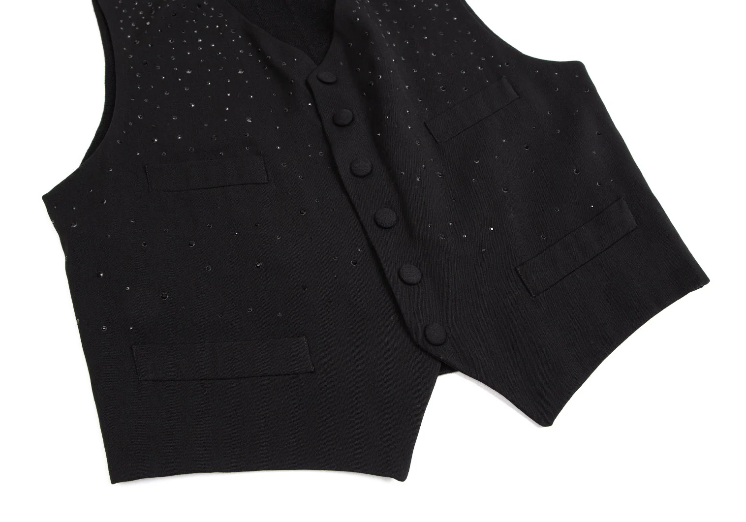 ジャンポールゴルチエ オムJean Paul GAULTIER HOMME ビジュー装飾ニット切替ジレベスト 黒50