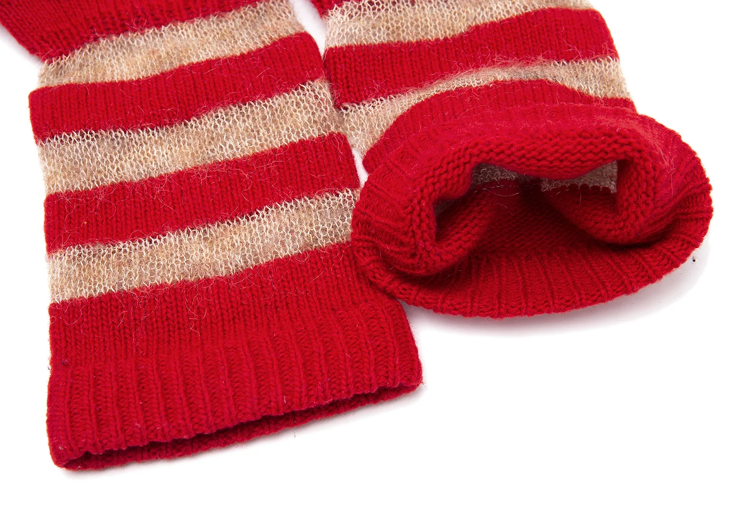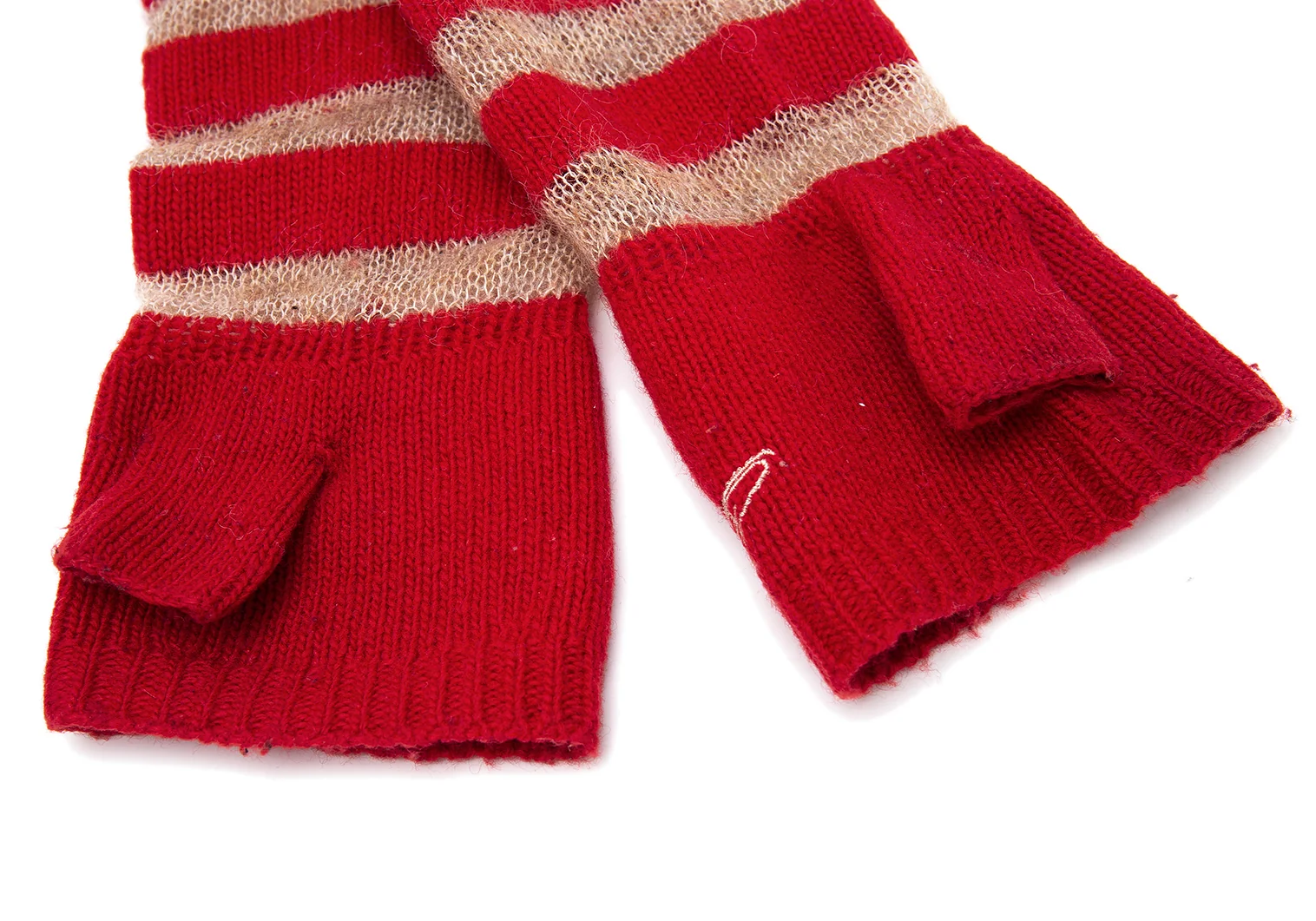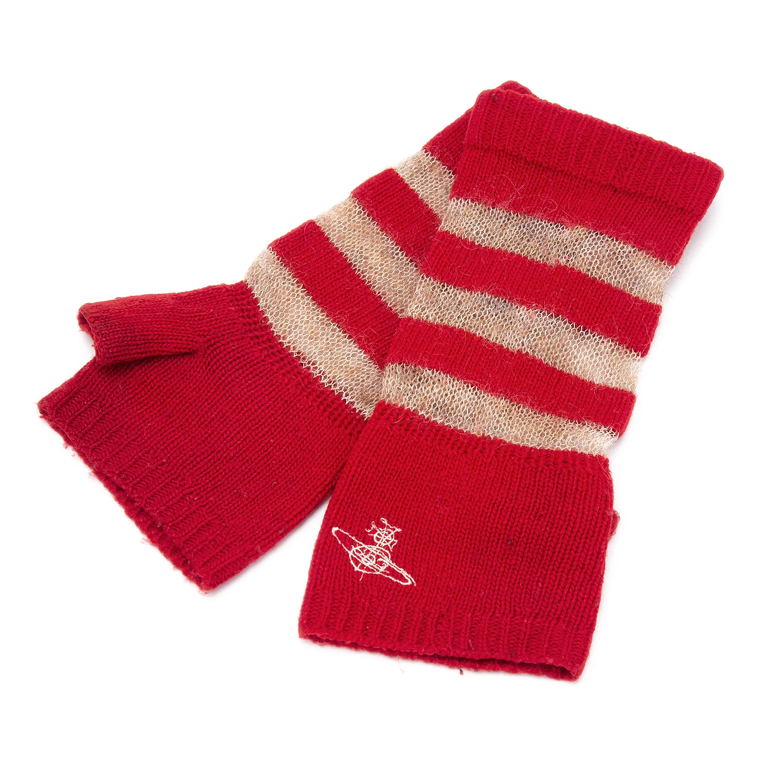 ヴィヴィアンウエストウッドVivienne Westwood ボーダーローゲージニットハンドウォーマー 赤ベージュ