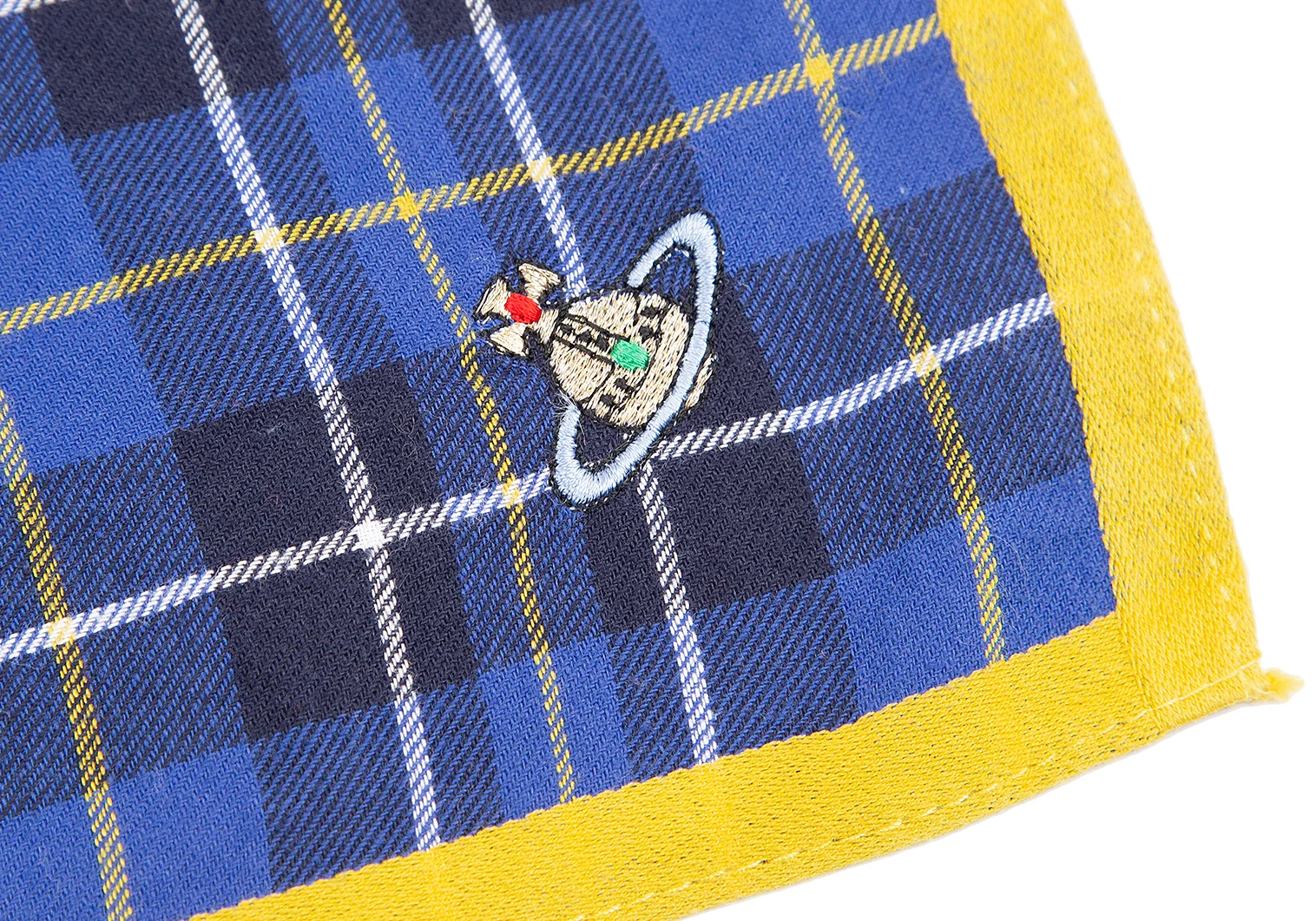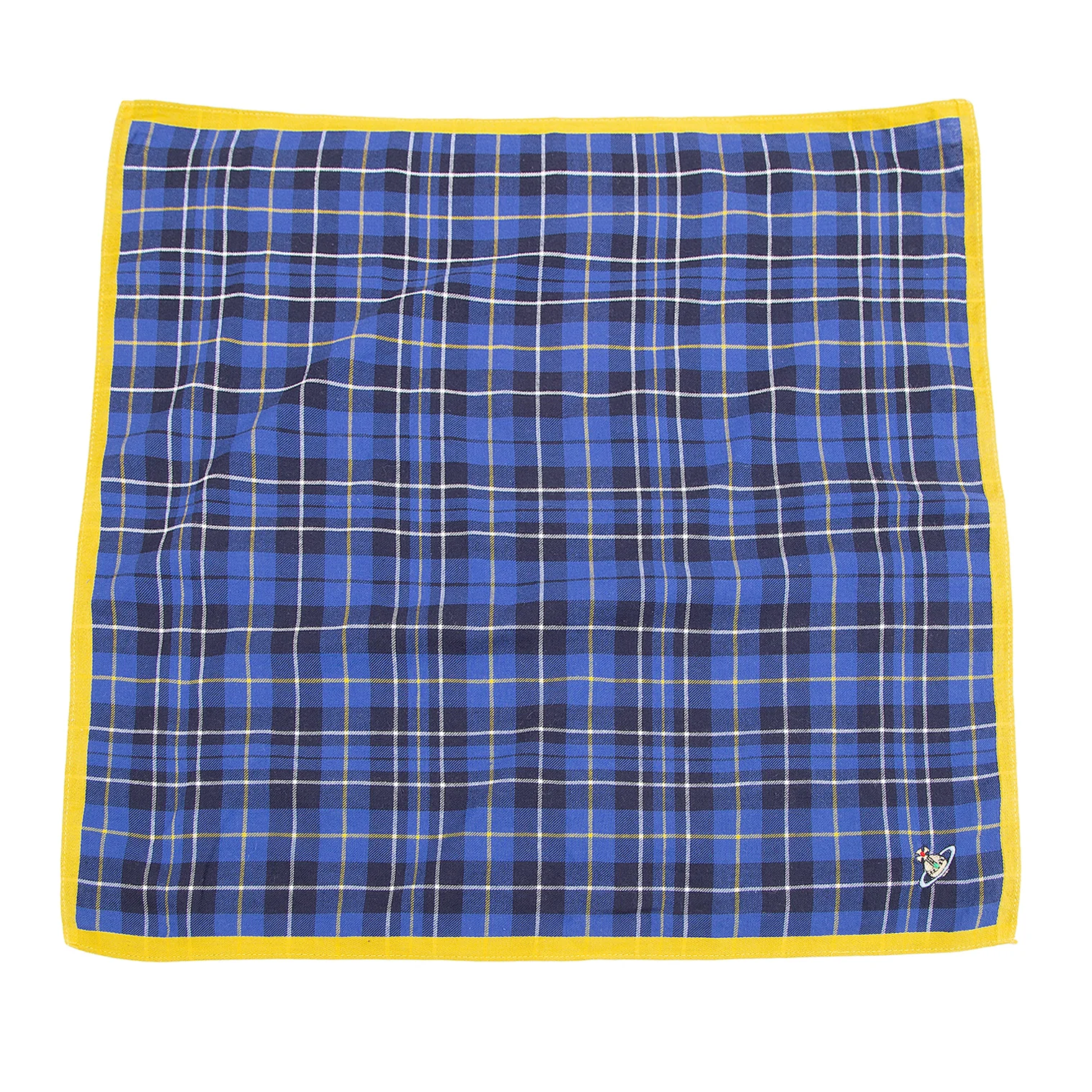 ヴィヴィアンウエストウッドVivienne Westwood オーブ刺繍タータンチェックハンカチ 青黄白