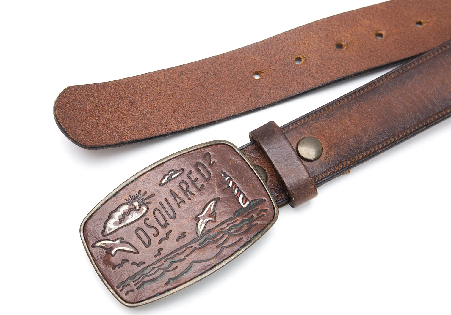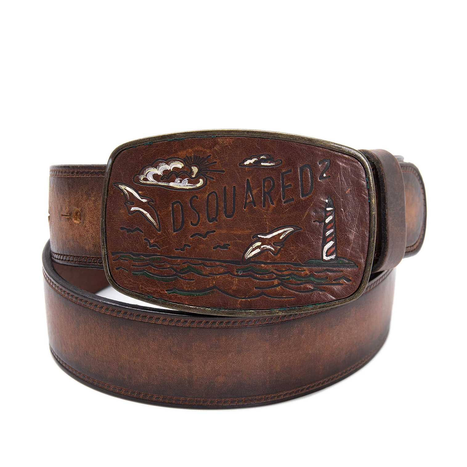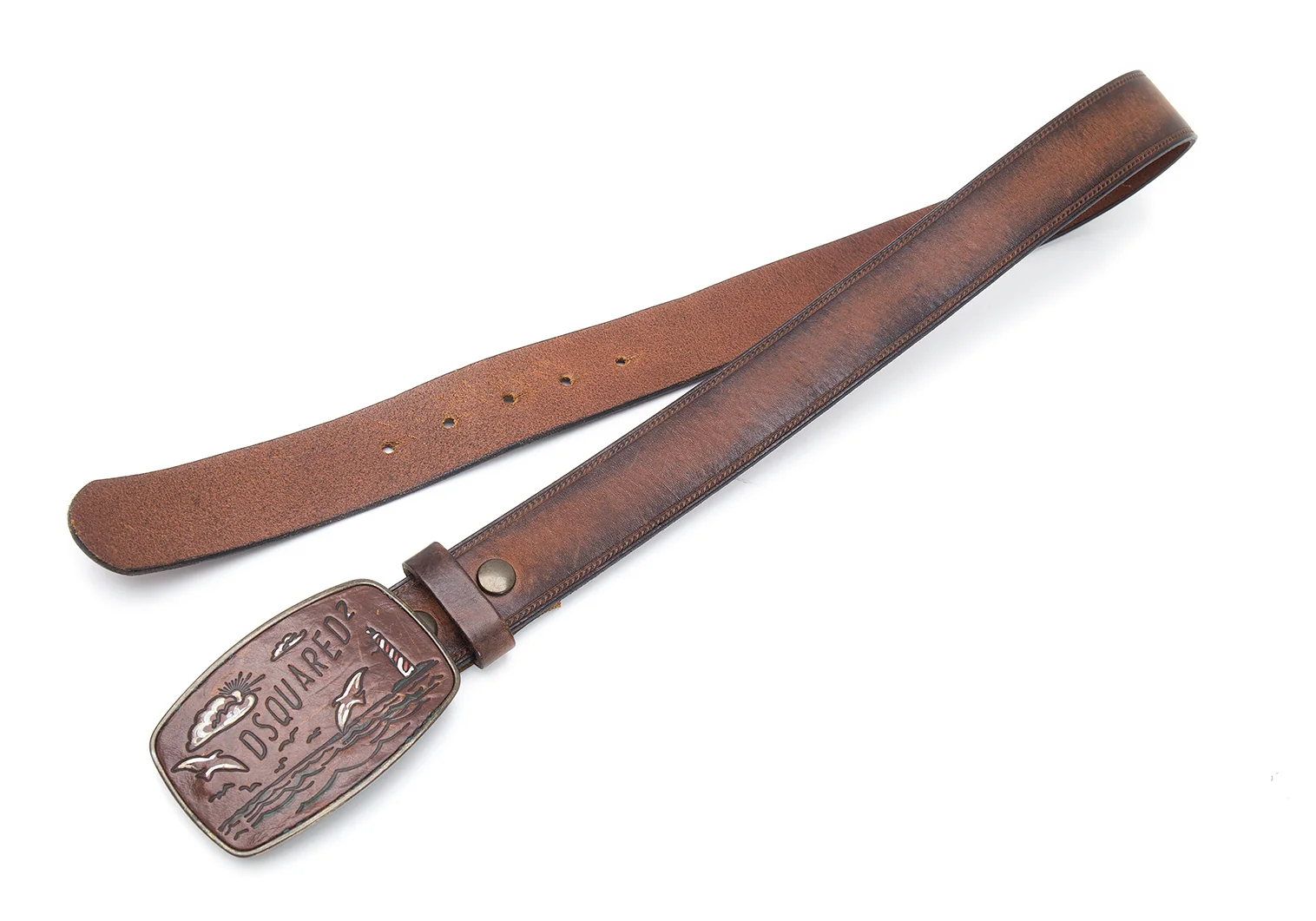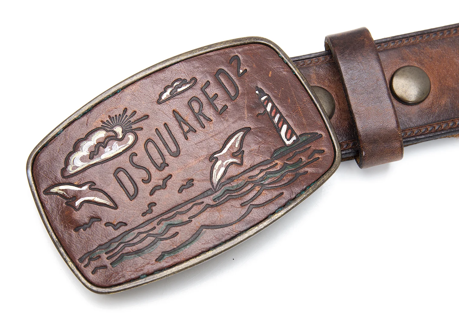 ディースクエアードDSQUARED2 マリンバックルレザーベルト 茶