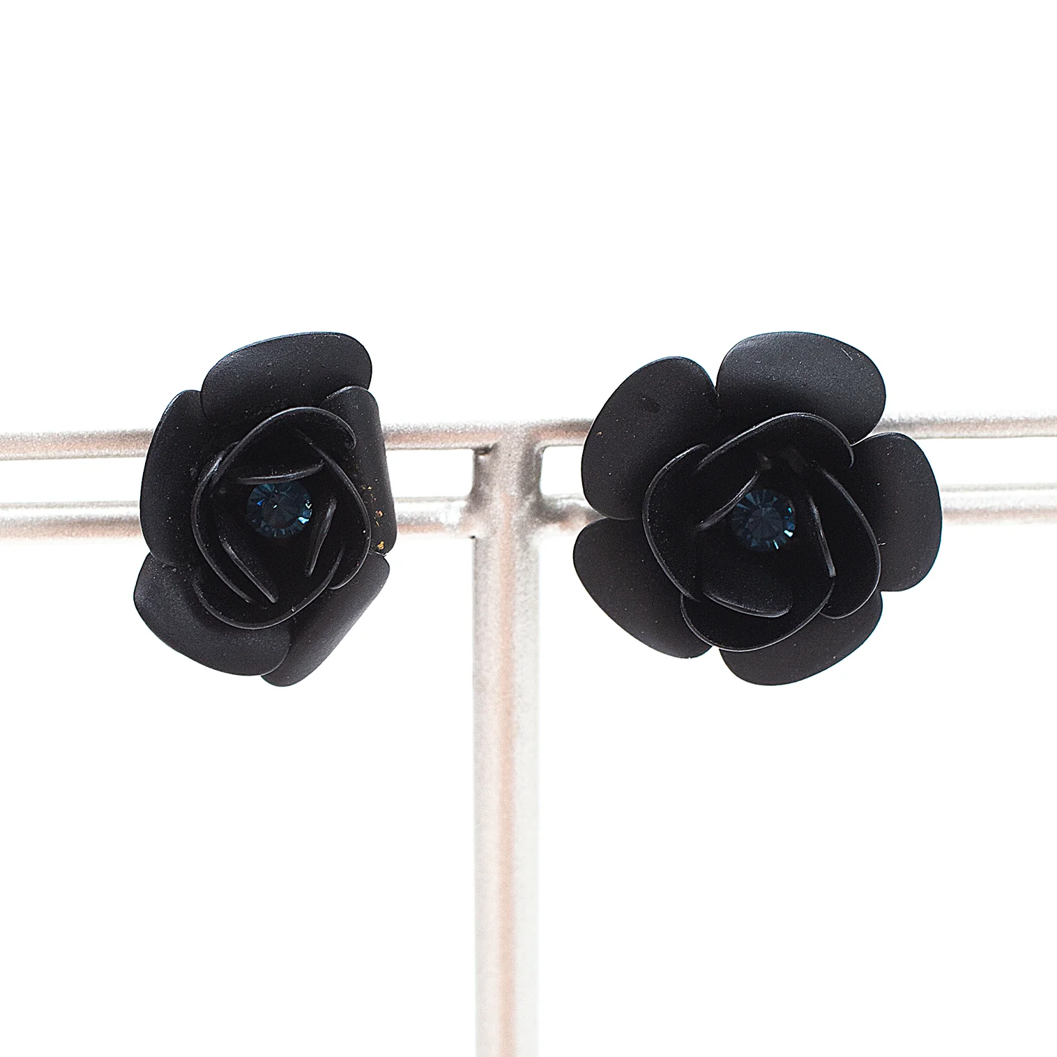 ジャンポールゴルチエJean Paul GAULTIER ビジュー装飾フラワーピアス 黒