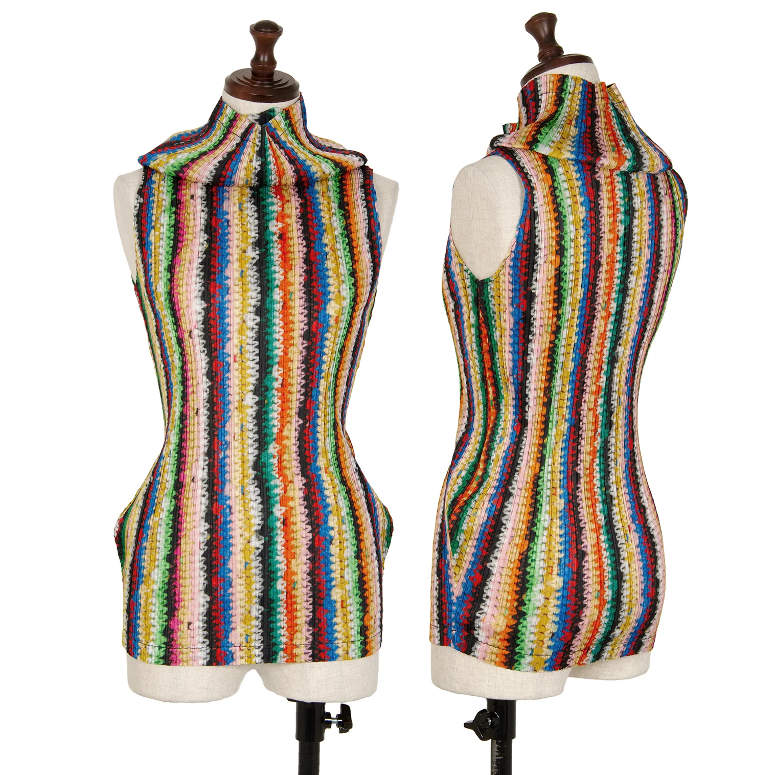プリーツプリーズPLEATS PLEASE カラフルニット転写プリントタートルネックノースリーブカットソー マルチ5