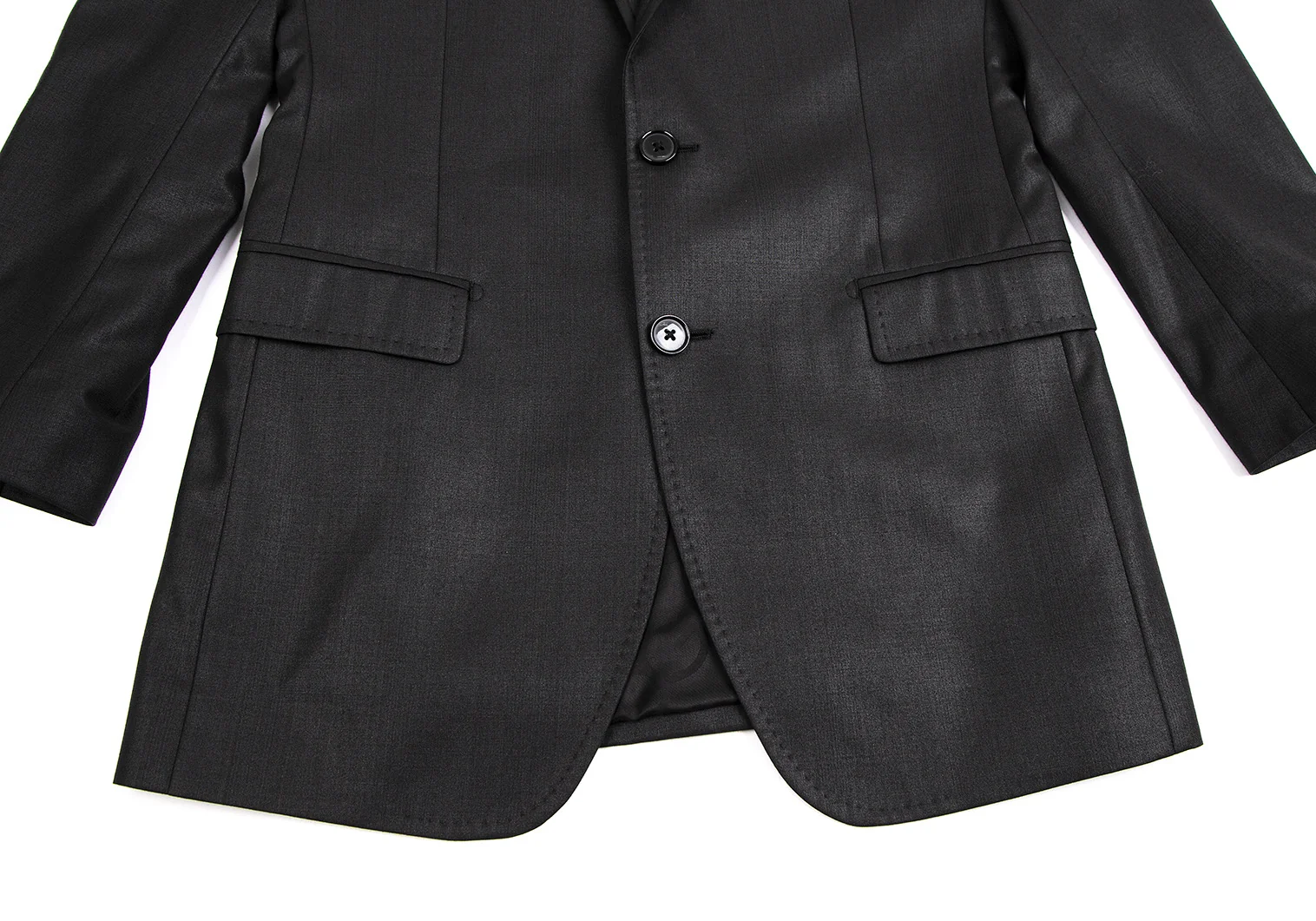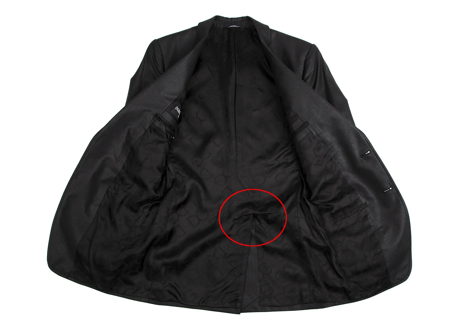 肩パッドがあります。襟裏に薄汚れ、左袖裏にピン穴、裏地にスレがあります(写真参照)。その他目立ったシミ、汚れ、ほつれ等なくいい状態です。クリーニング済み