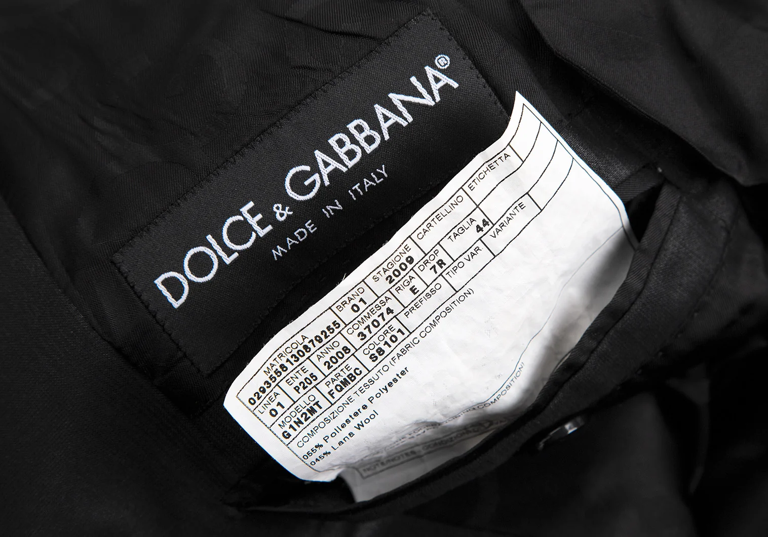 ポリエステル55% ウール45% 裏地 レーヨン100%