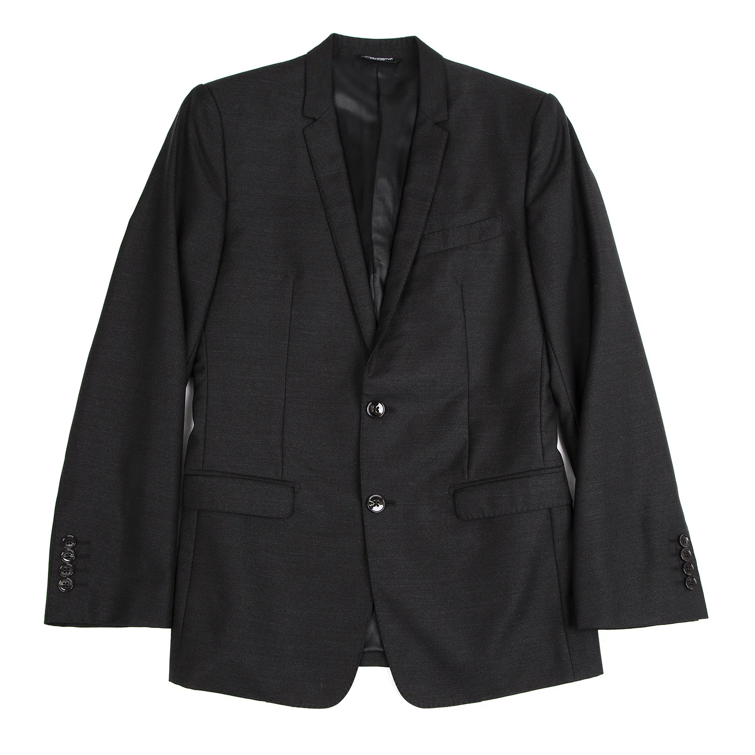 ドルチェ&ガッバーナDOLCE&GABBANA GOLD ウールシルクノッチドナローラペルセットアップスーツ 黒44