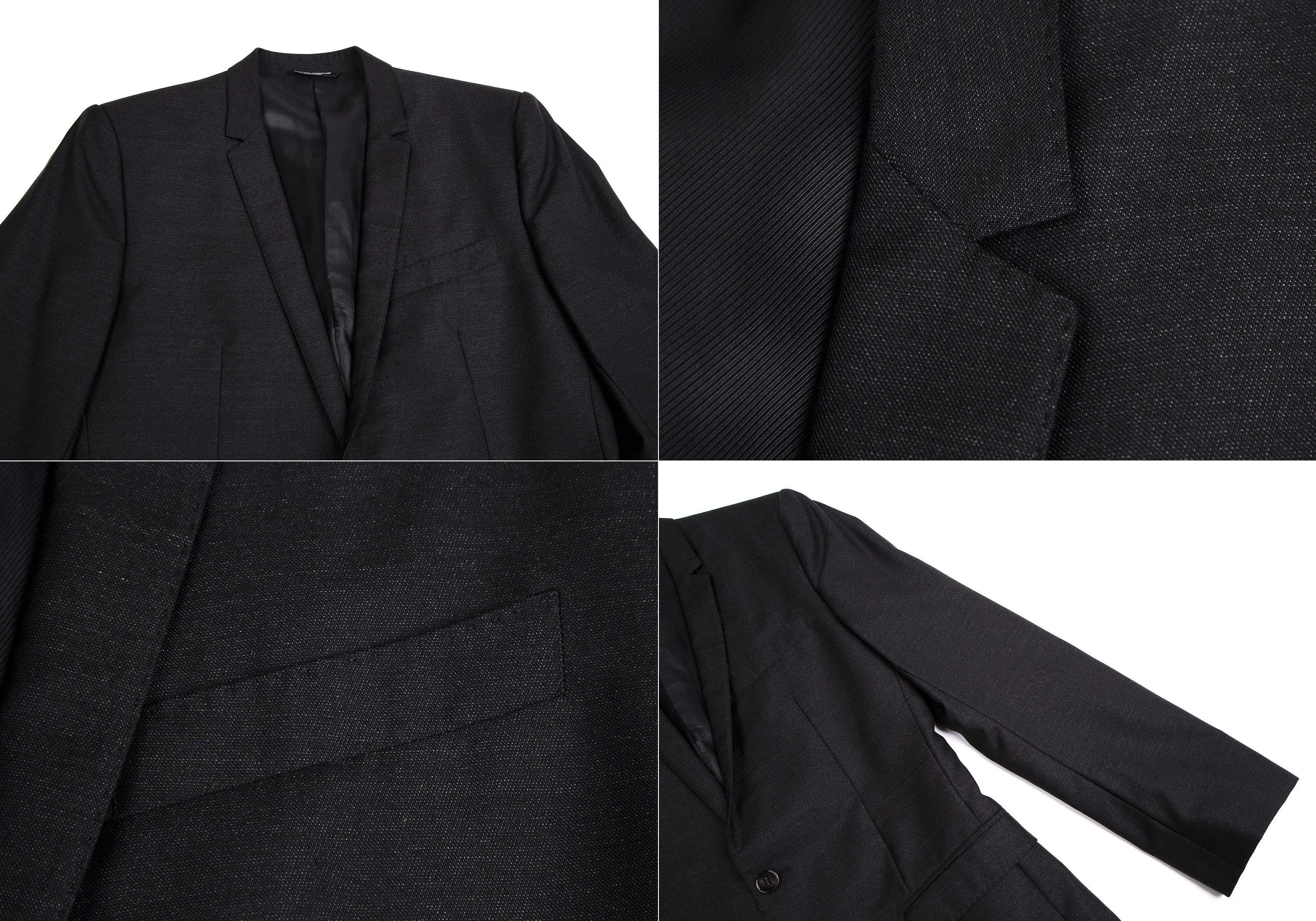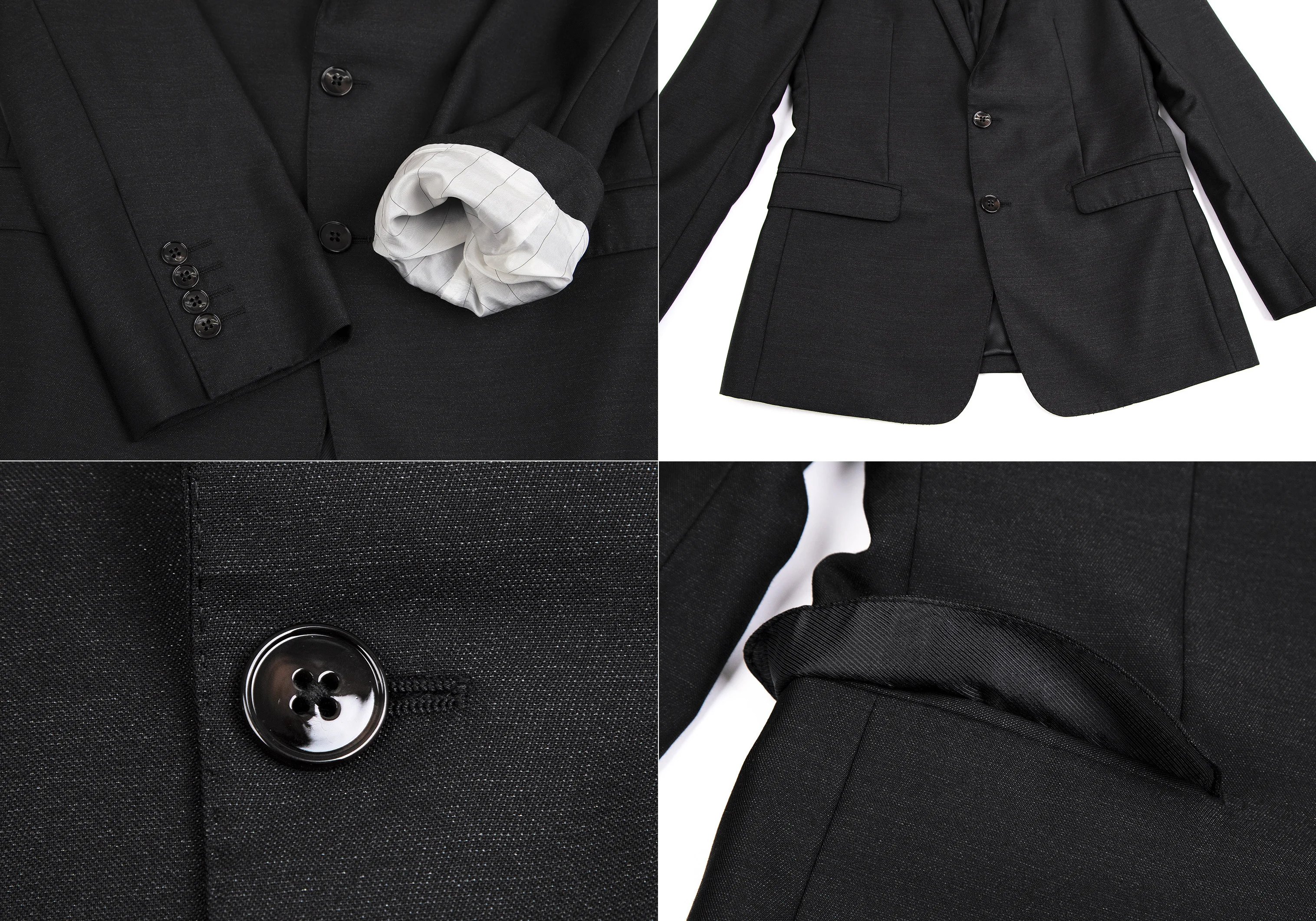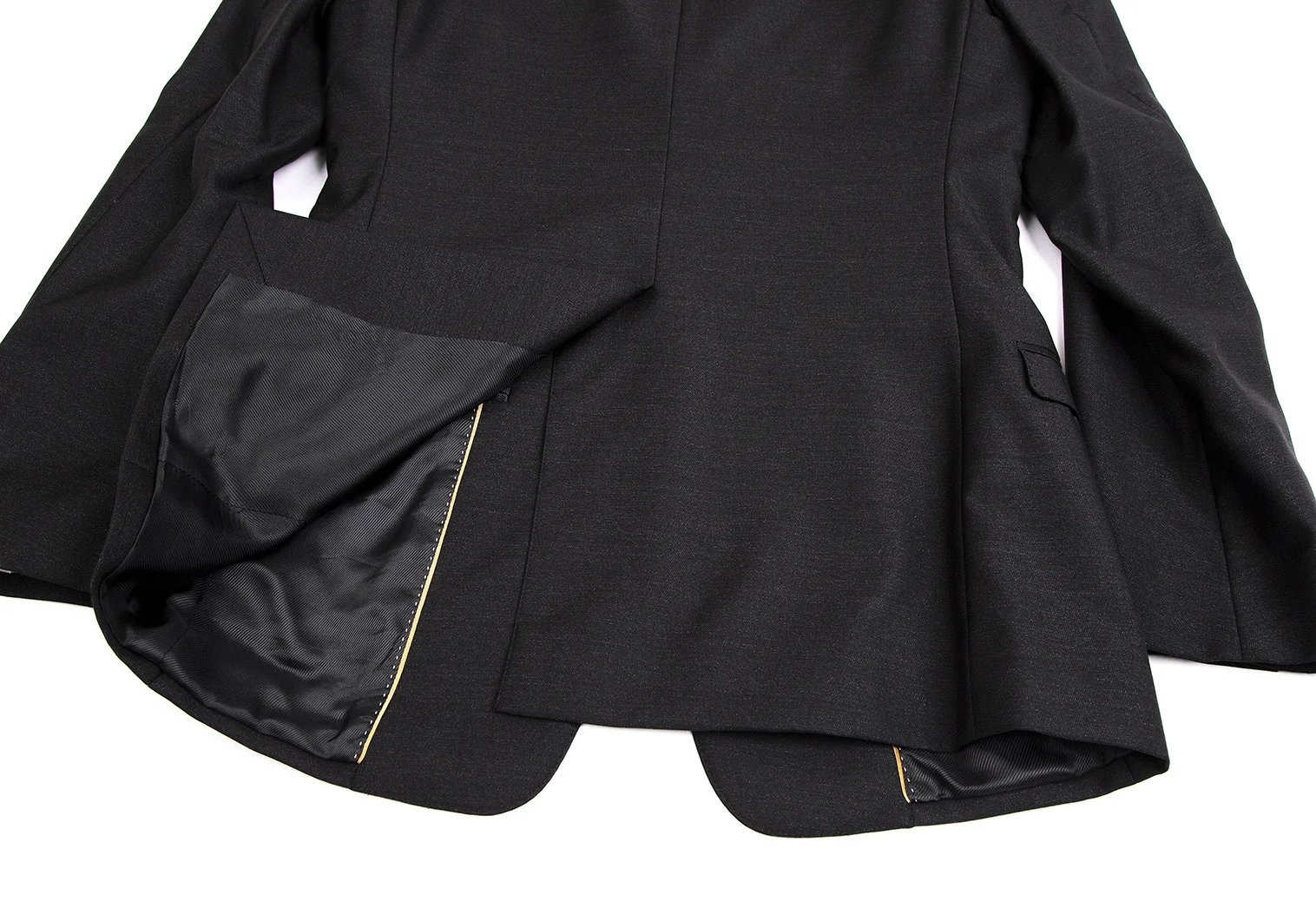 ジャケット:肩パッドがあります。裏地ポケットふちにダメージがあります。パンツ:ウエスト裏に色褪せ、後ろ裾裏にスレがあります(写真参照)。その他目立ったシミ、汚れ、ほつれ等なくいい状態です。クリーニング済み