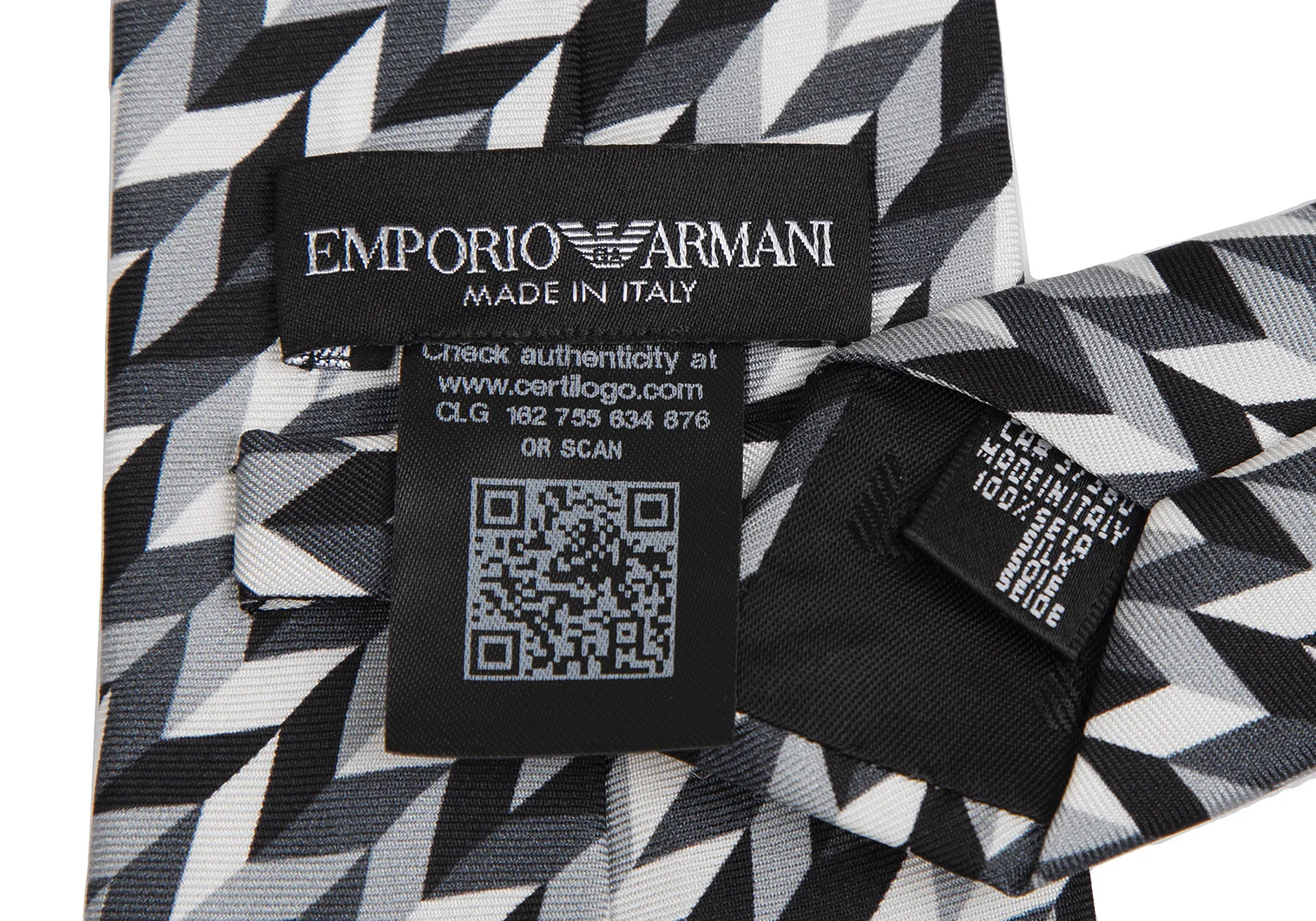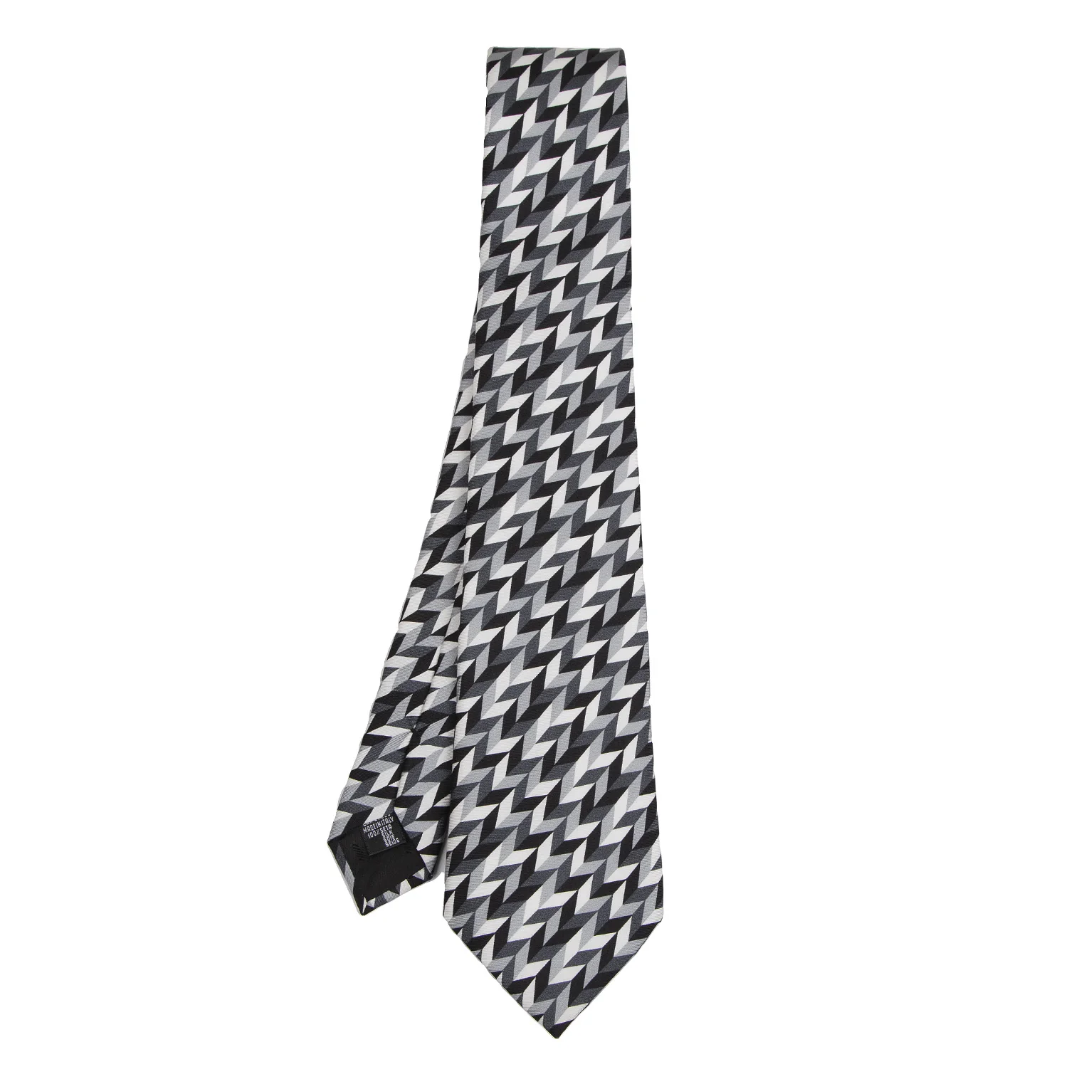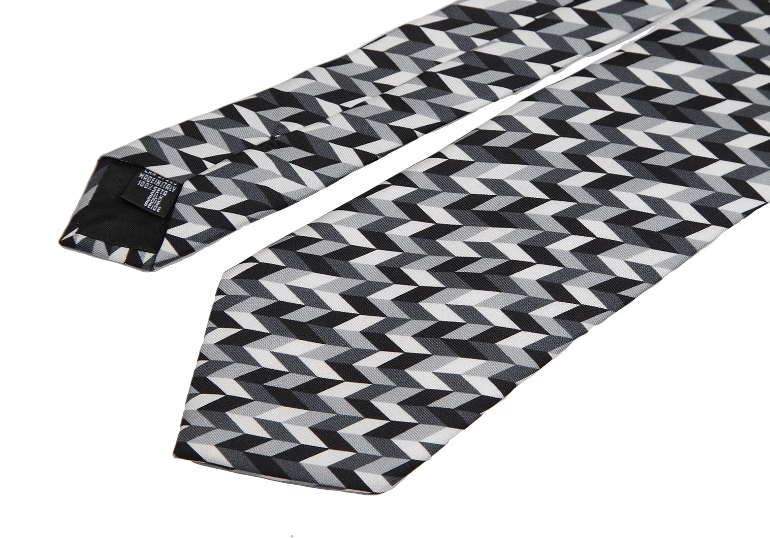エンポリオアルマーニEMPORIO ARMANI シルクヘリンボーンレジメンタルネクタイ 白黒グレー