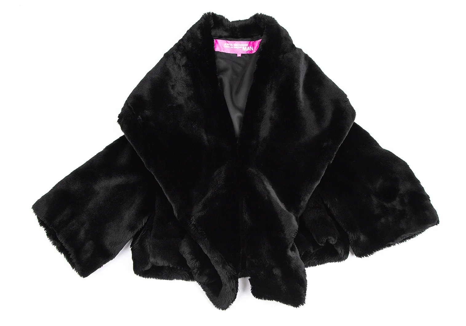 ジュンヤワタナベマンピンク コムデギャルソンJUNYA WATANABE MAN PINK COMME des GARCONSフェイクファーショールジャケット 黒M