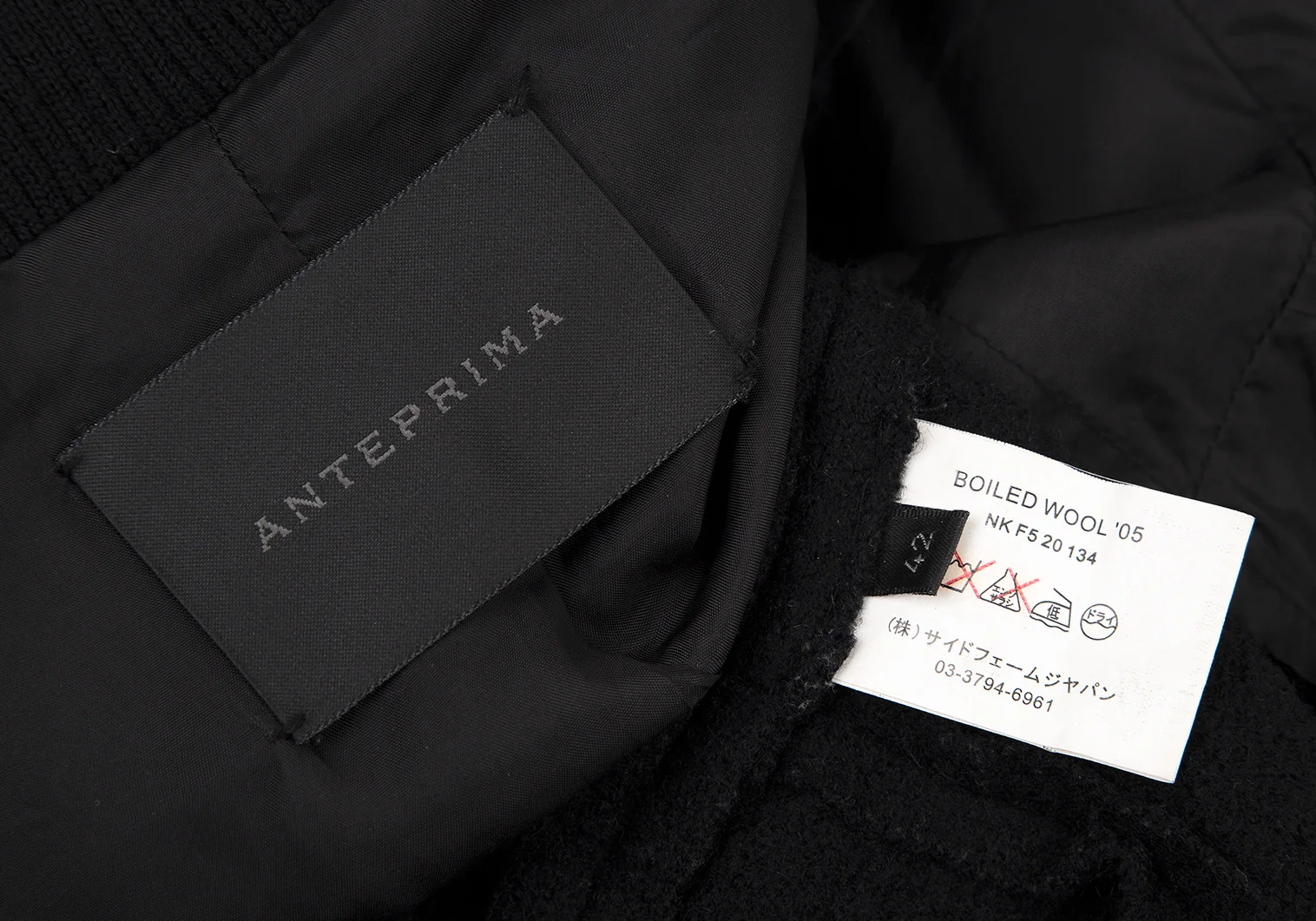 アンテプリマANTEPRIMA グログラントリミングウールノーカラージャケット 黒42
