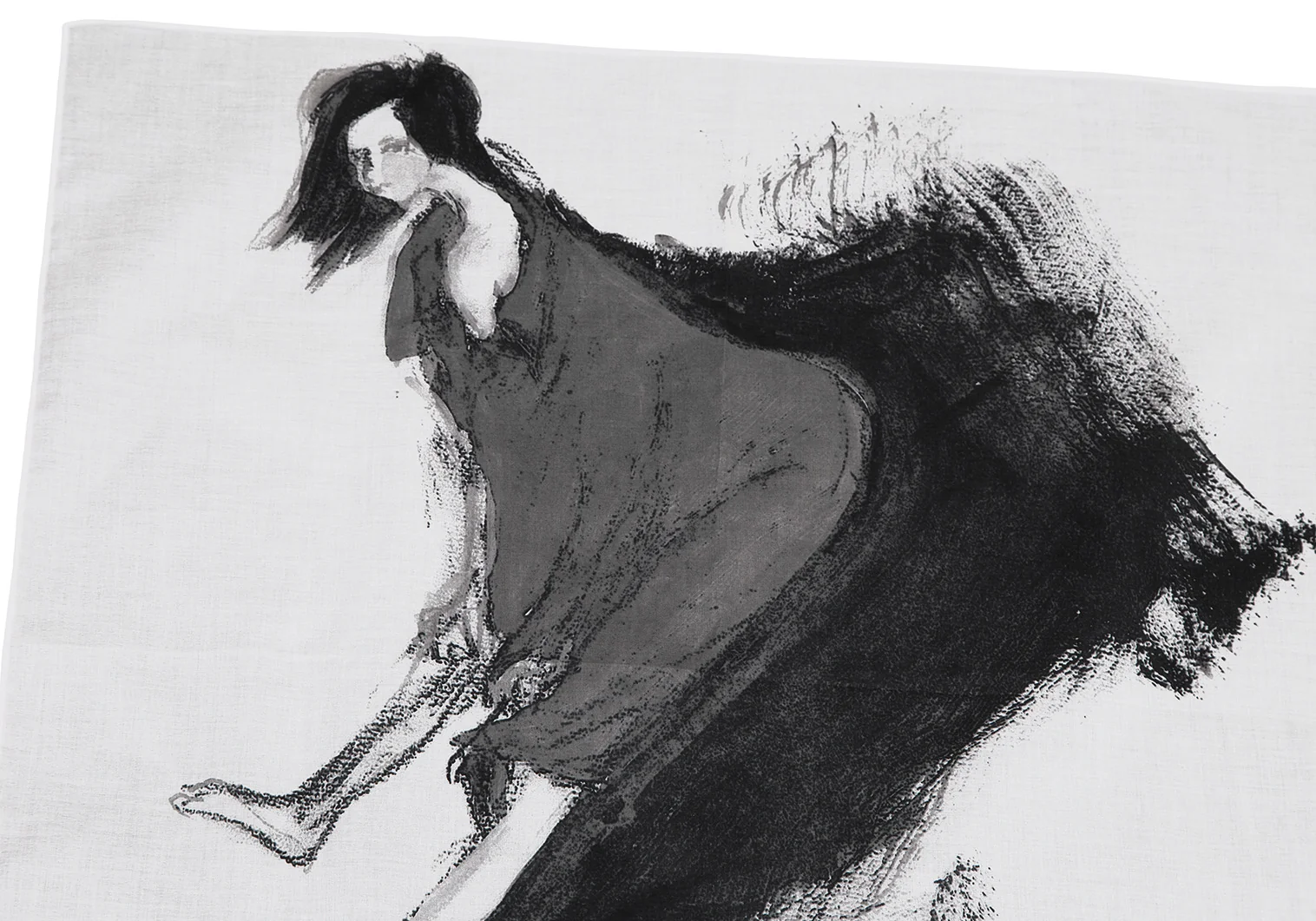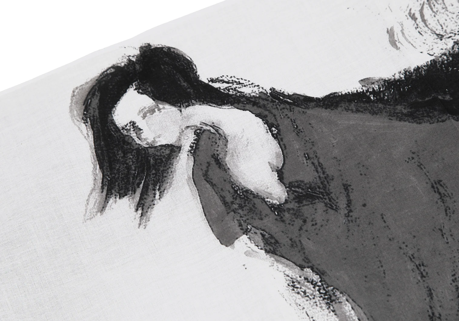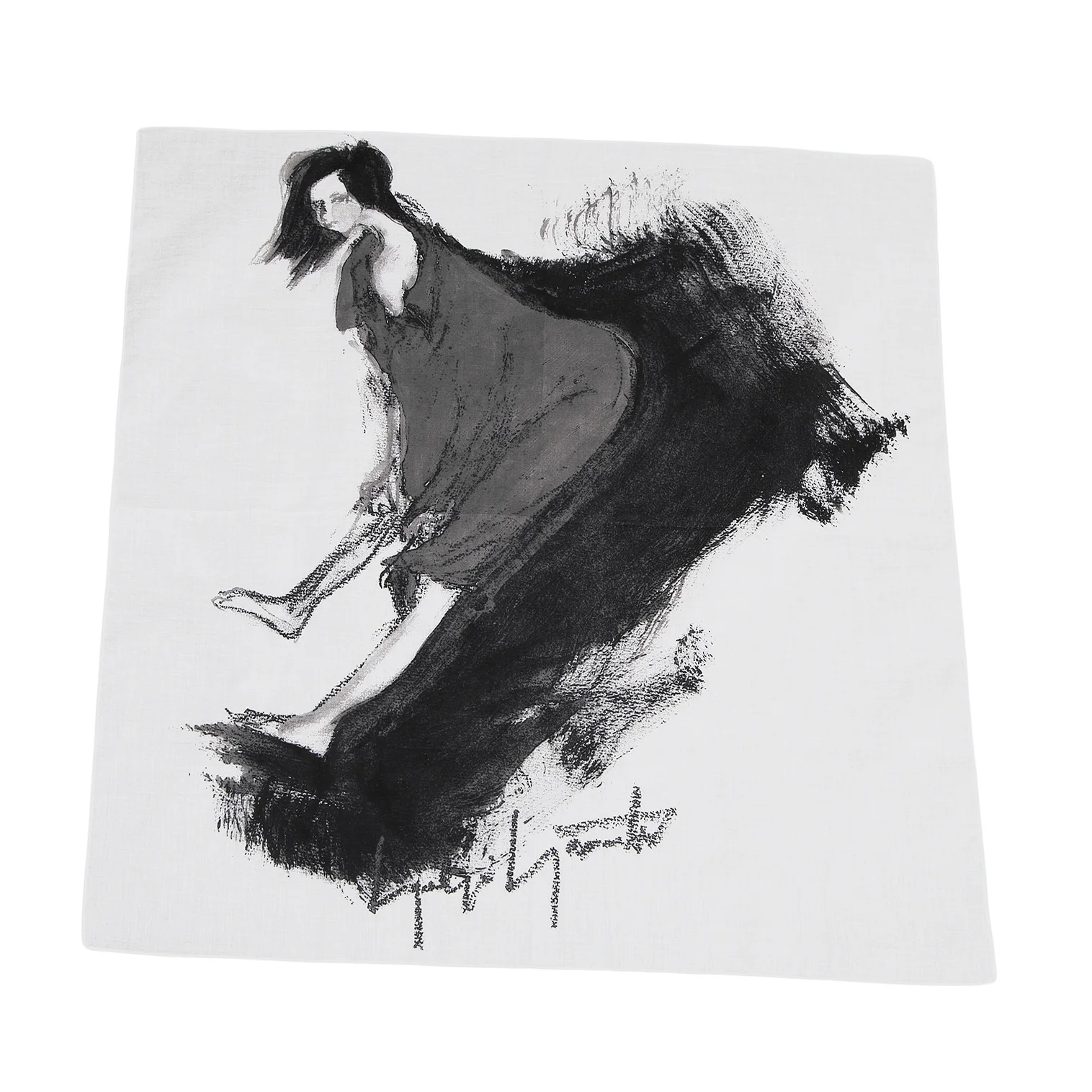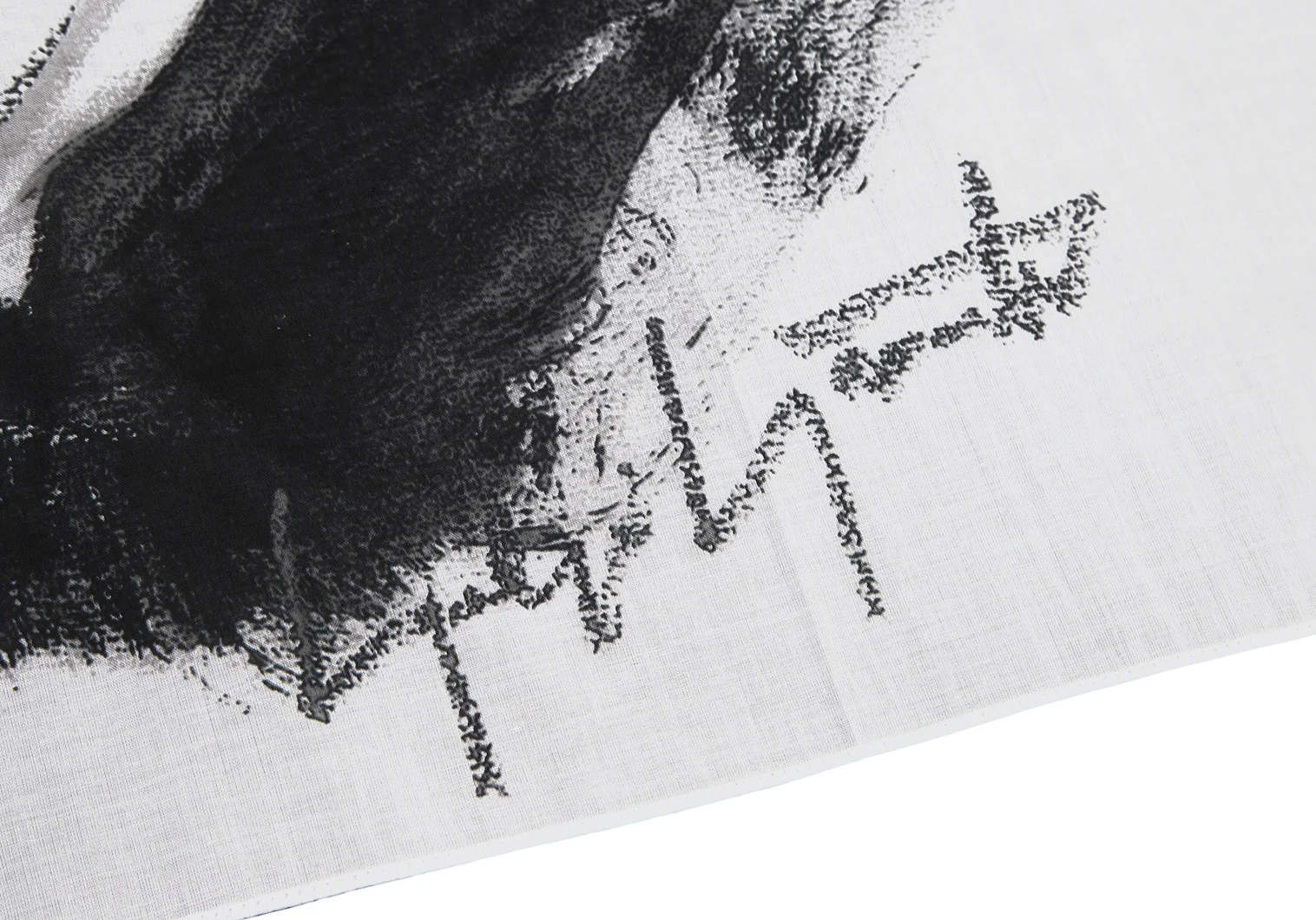 ヨウジヤマモト ファムYohji Yamamoto FEMME 手書きデッサンプリントハンカチ 白黒