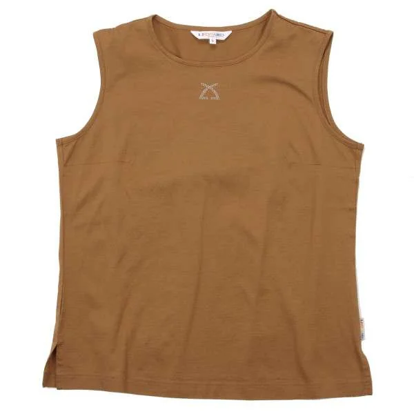 レオナールLEONARD SPORT ラインストーンノースリーブ 茶L