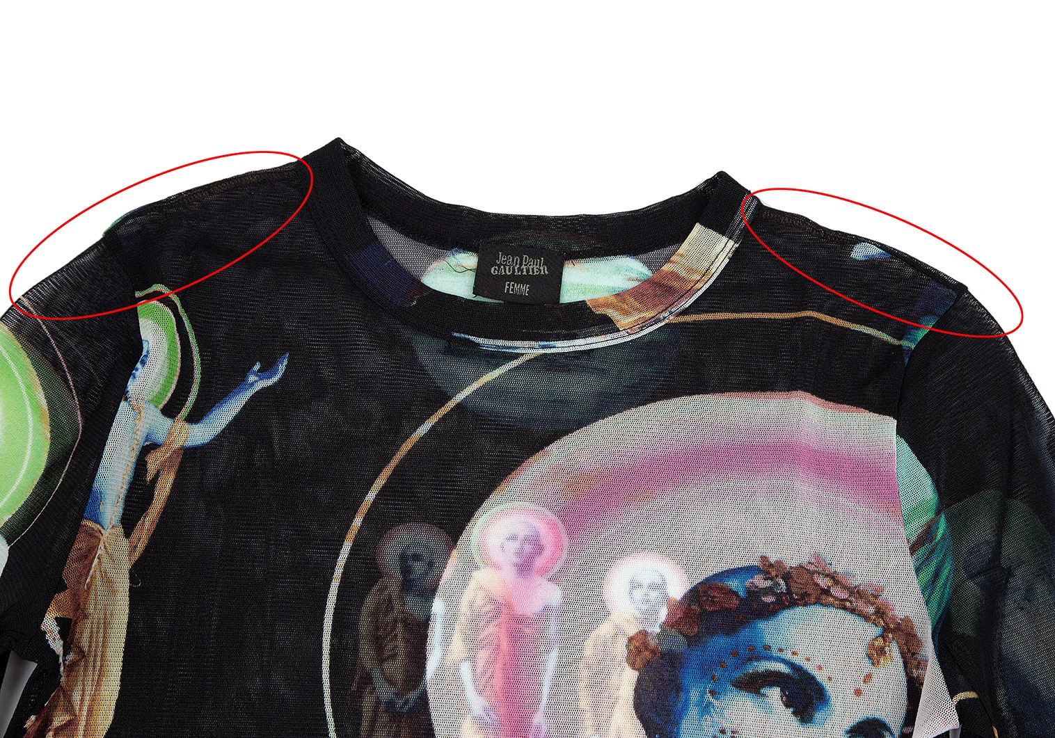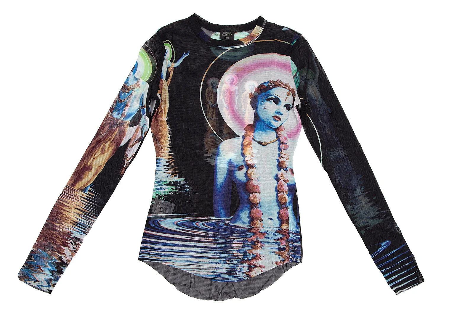 ジャンポールゴルチエ ファムJean Paul GAULTIER FEMME 宗教画プリントパワーネットカットソー 黒40
