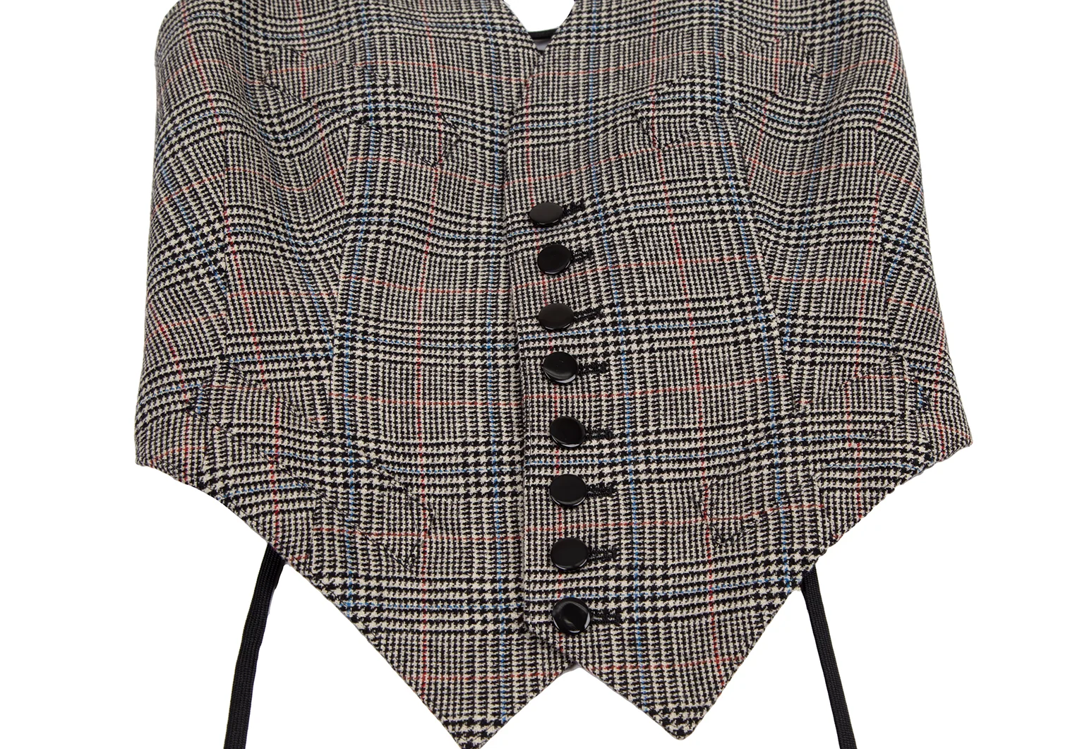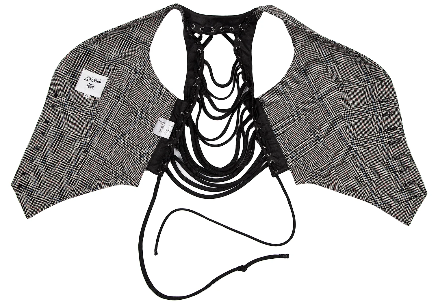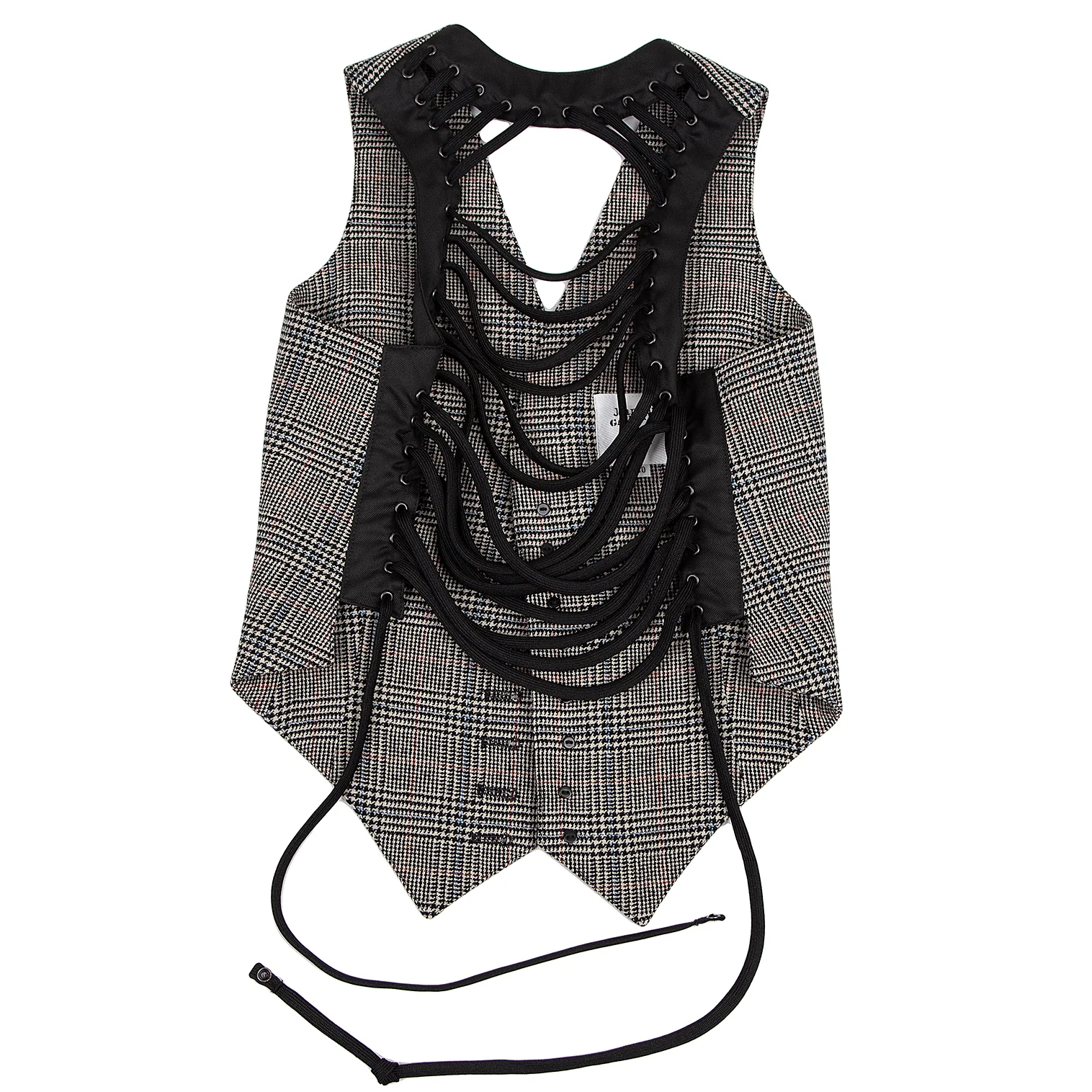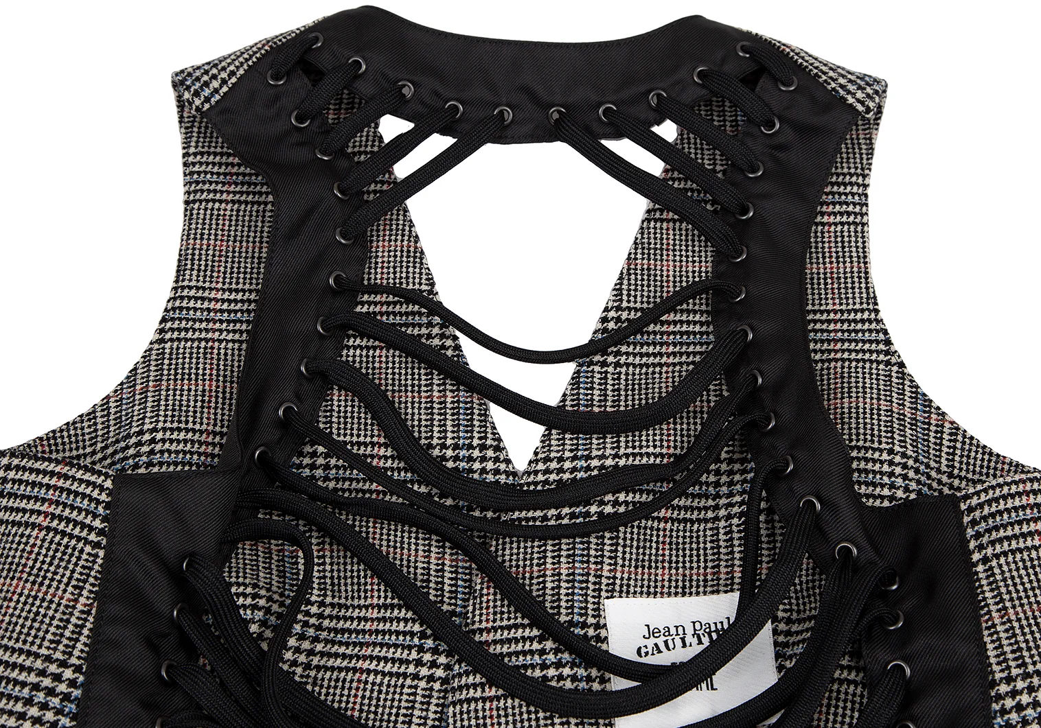 ジャンポールゴルチエ ファムJean Paul GAULTIER FEMME バックレースアップグレンチェックジレベスト 白黒40